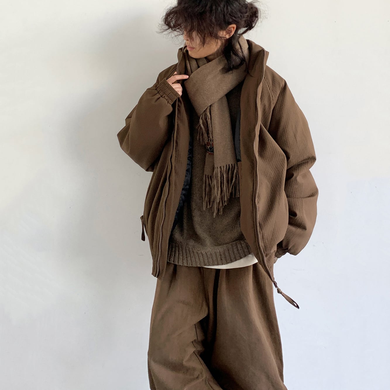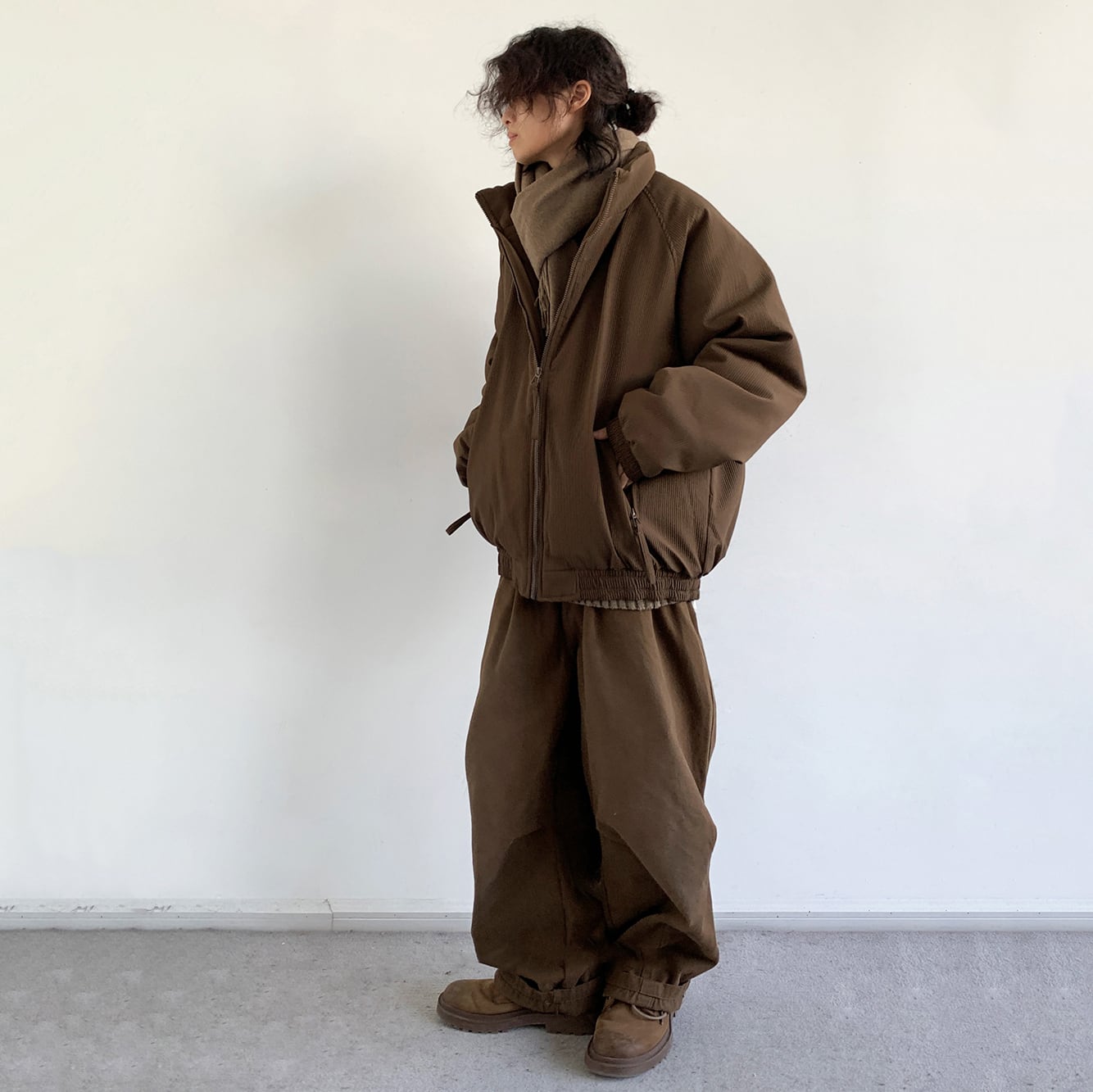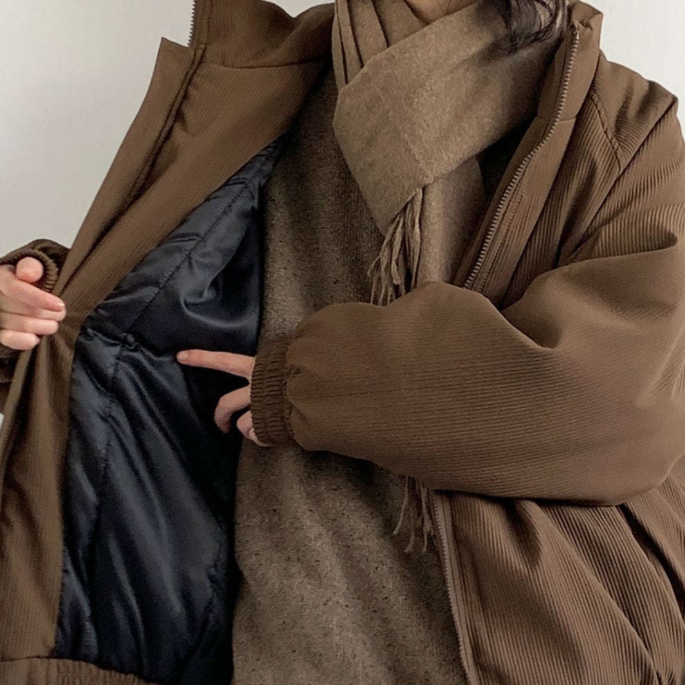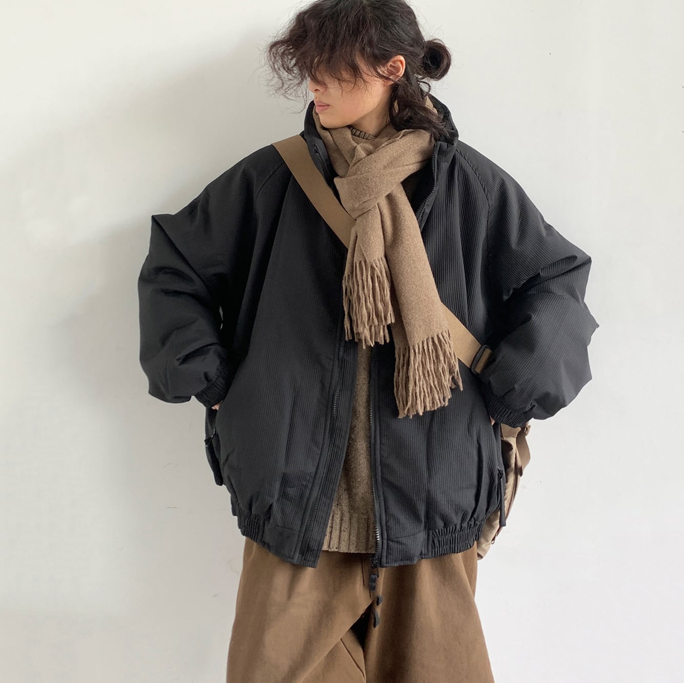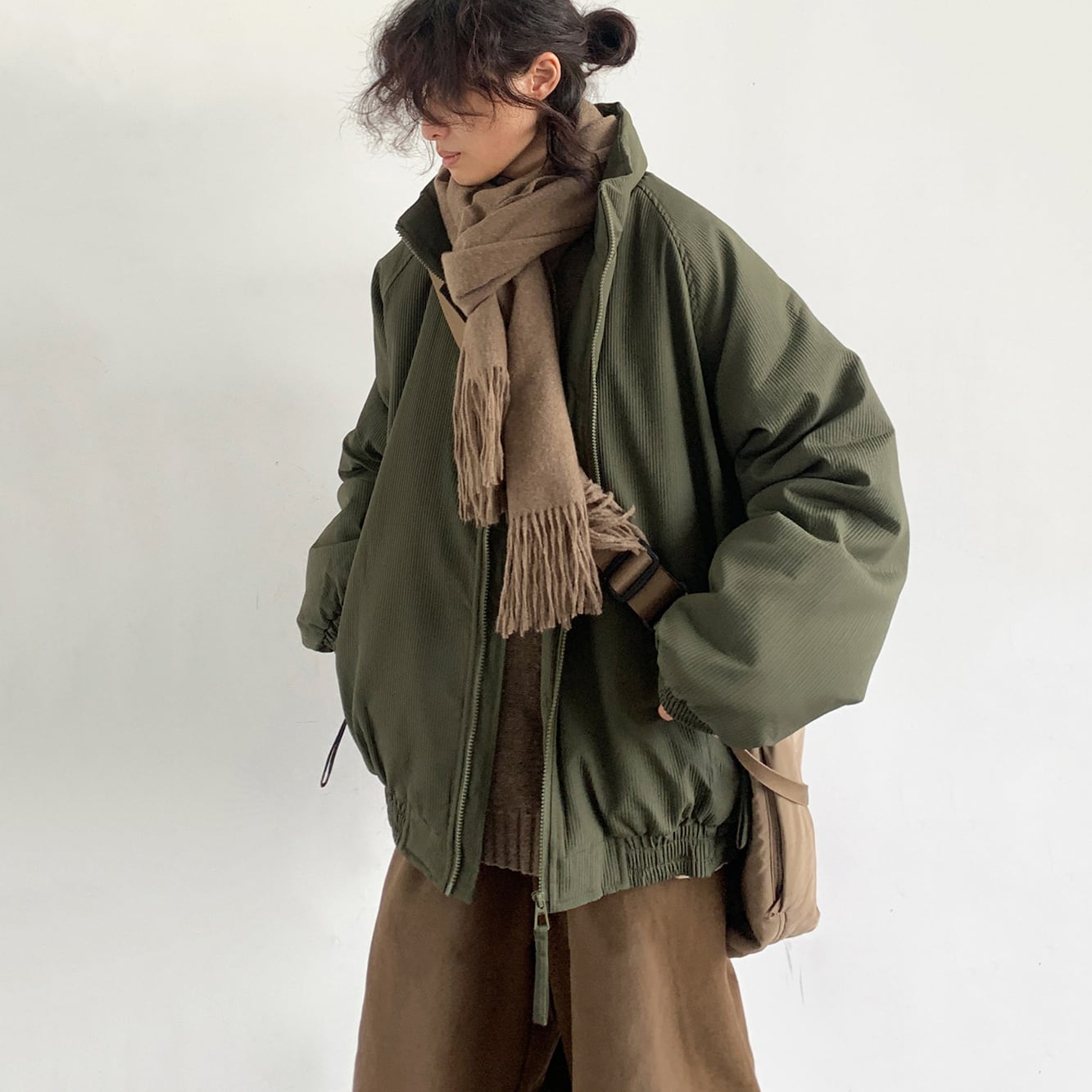 jiwuus全3色ストライプ柄ジップ中綿ジャケット