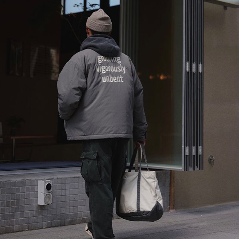 UNBENTバック英字刺しゅう入り中綿ダウンジャケット