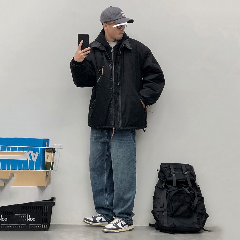 DustinHFM襟レザー切り替え中綿ジャケット