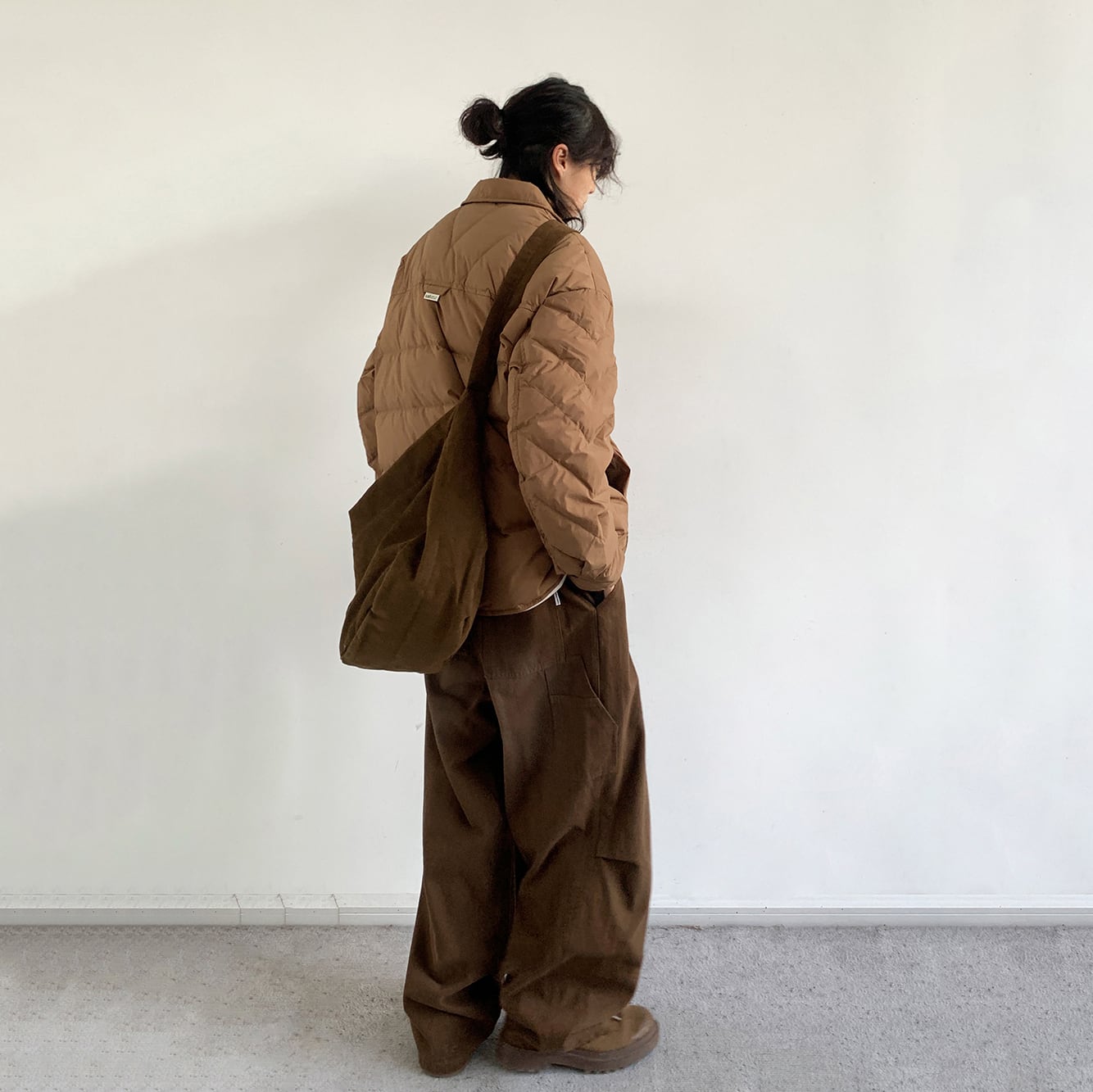 jiwuus茶褐色キャンバスショルダーバッグ