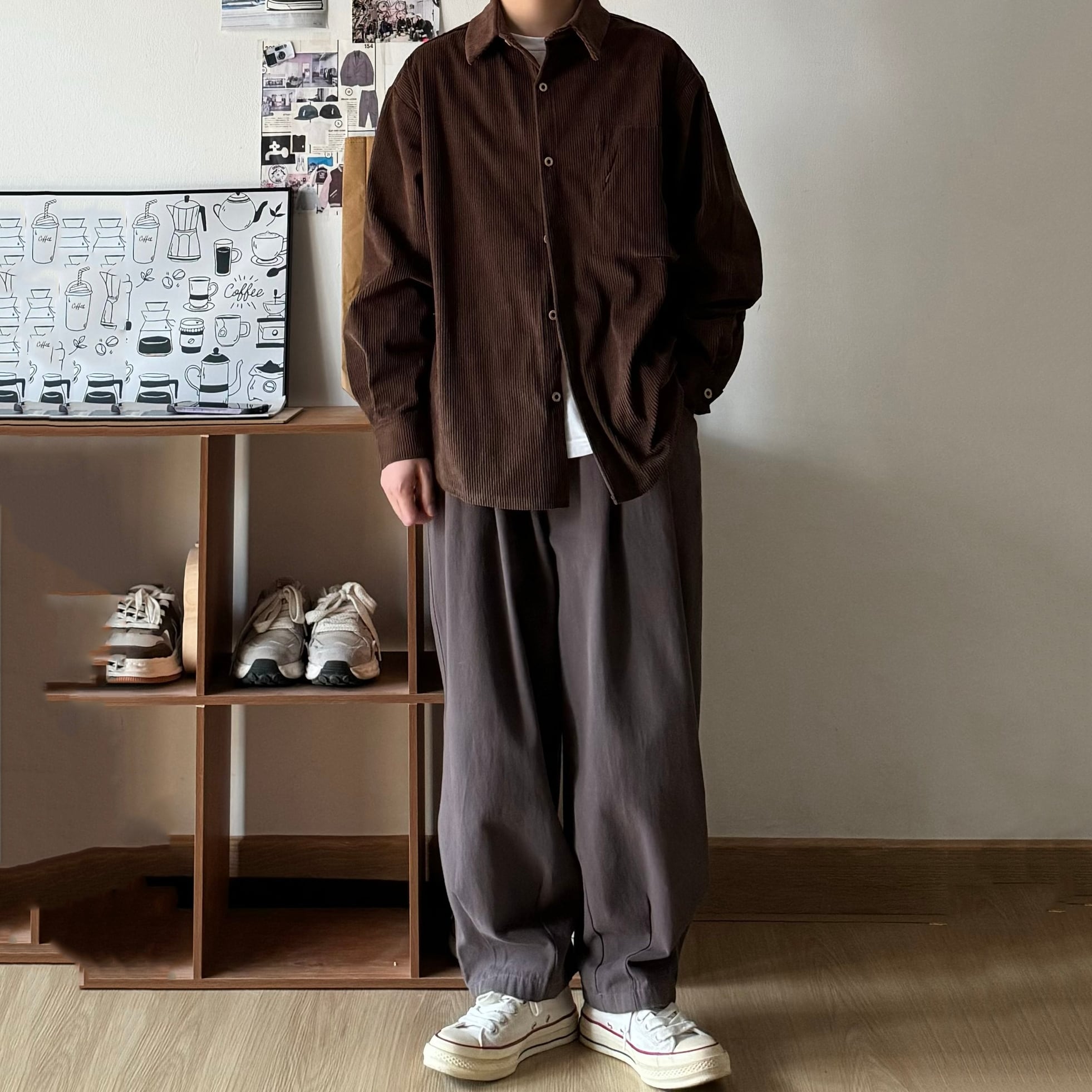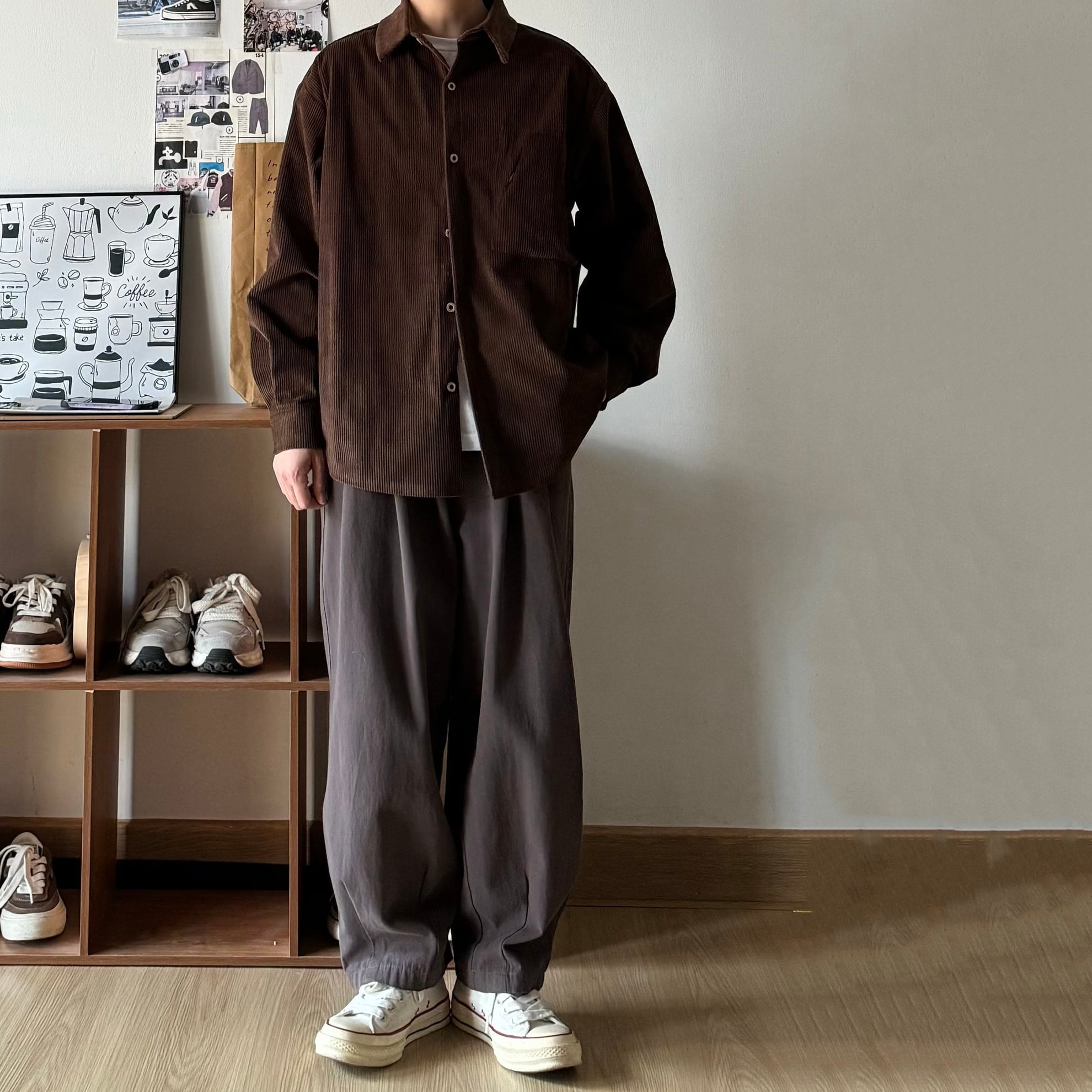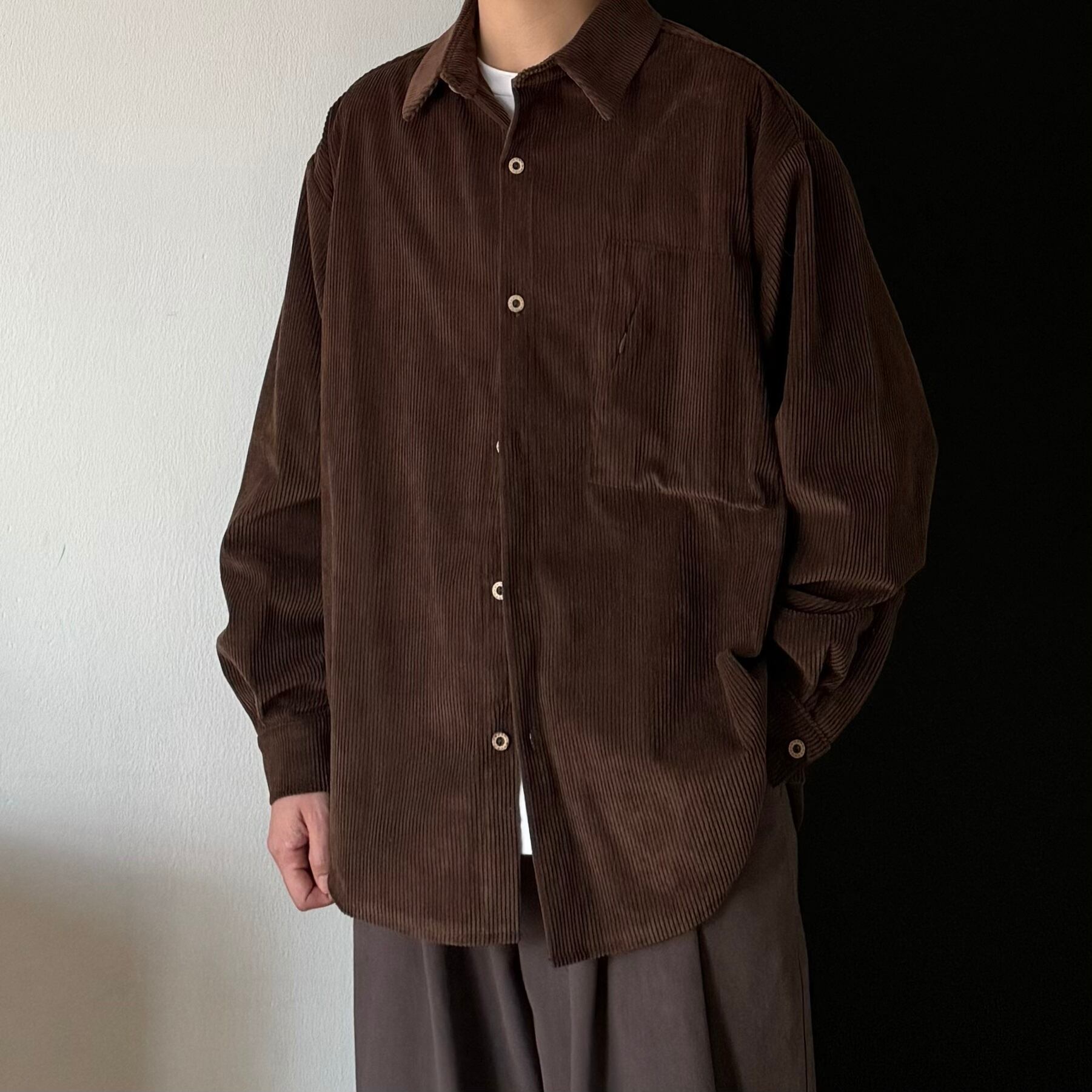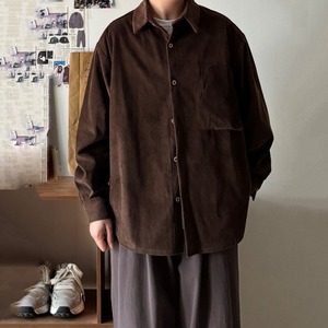 Bゆったりめ無地コーデュロイシャツ