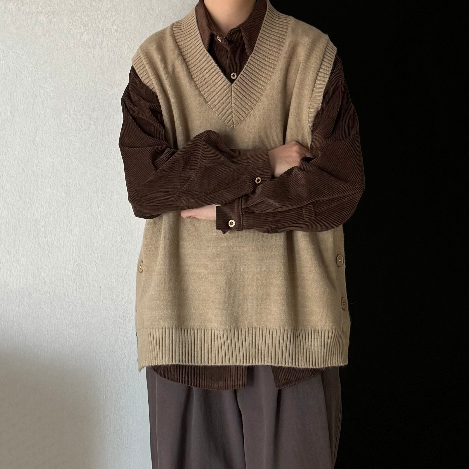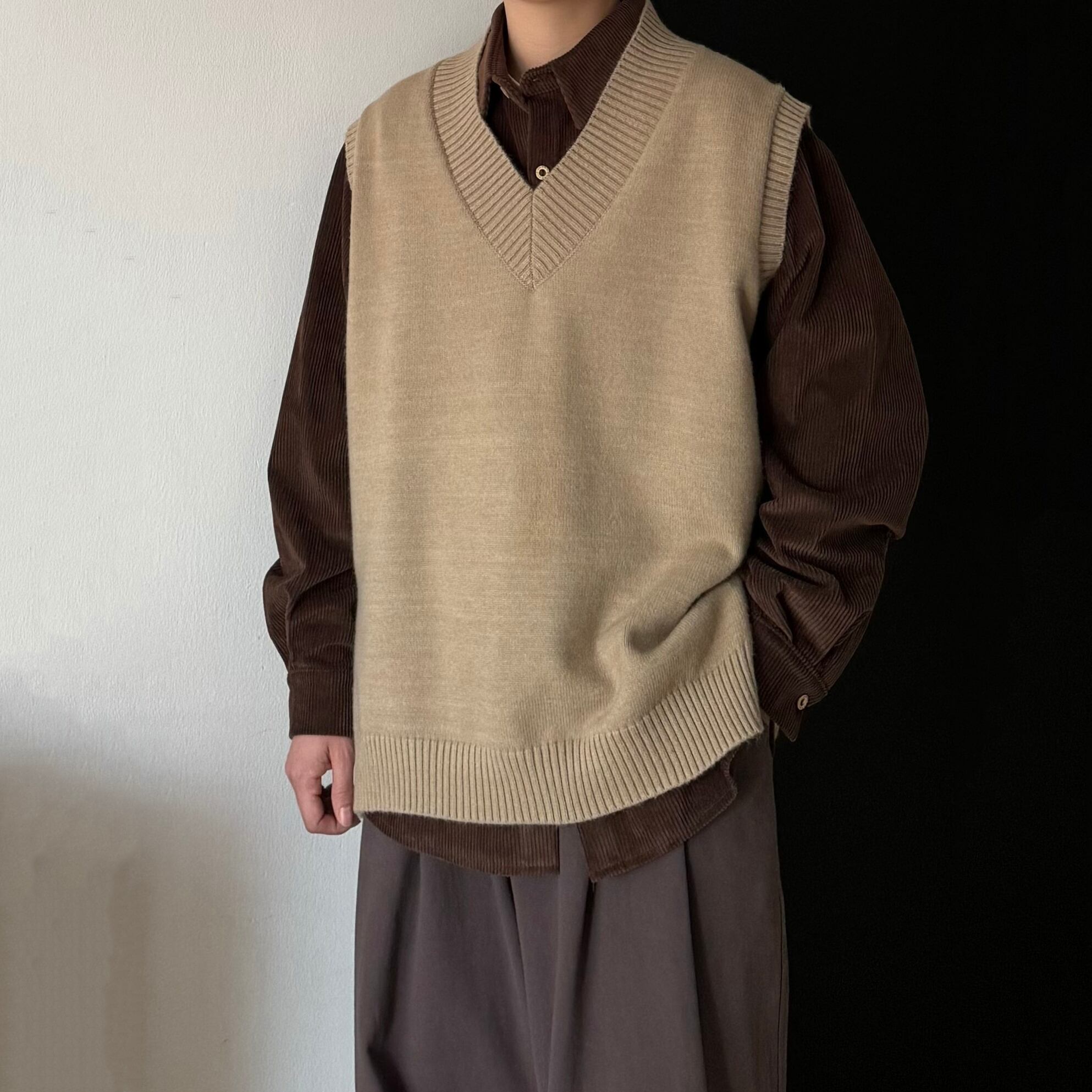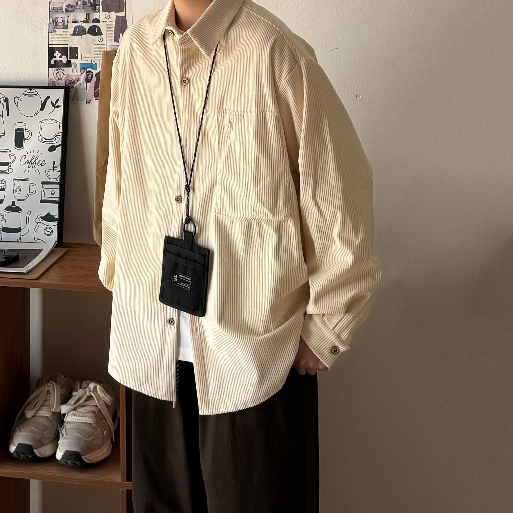 Bゆったりめ無地コーデュロイシャツ