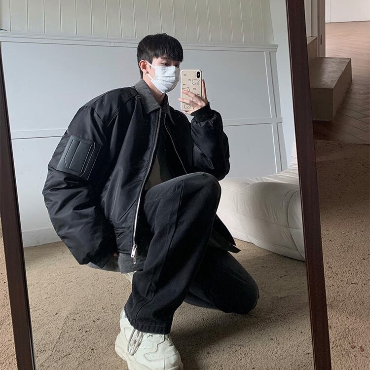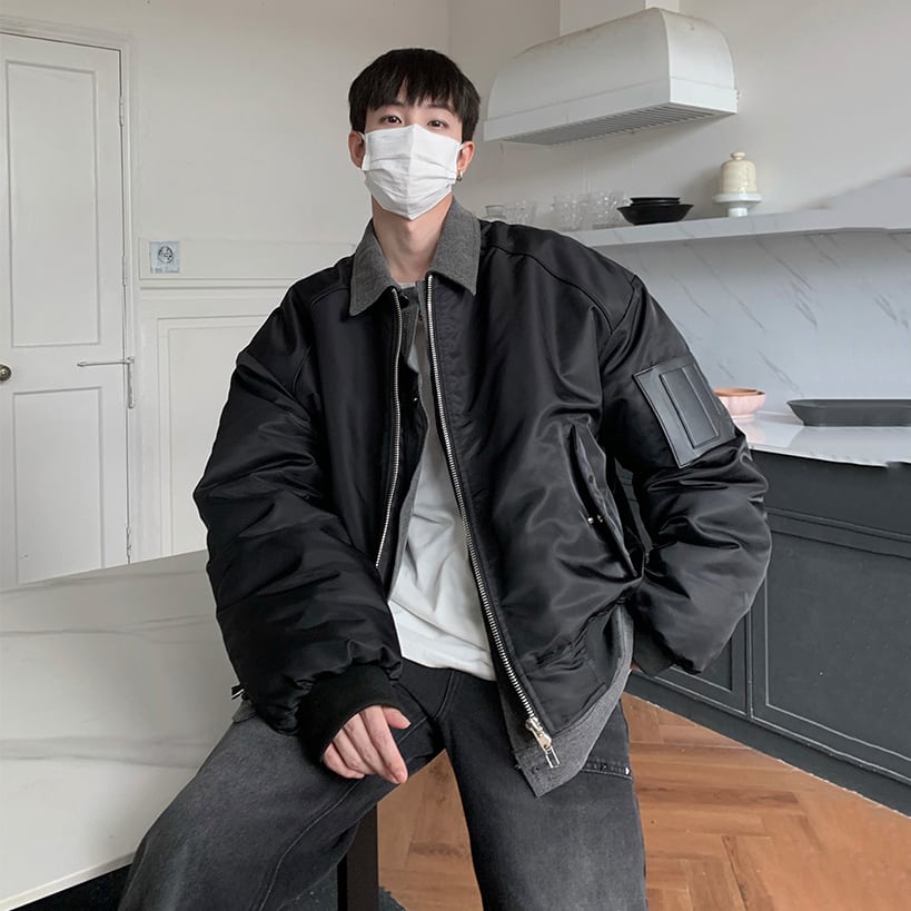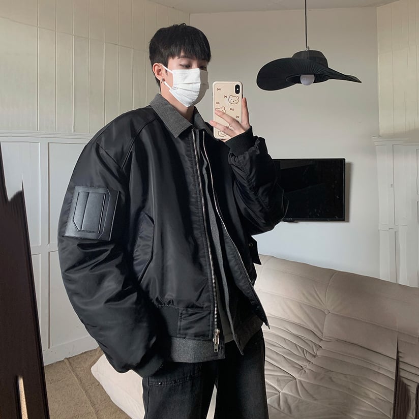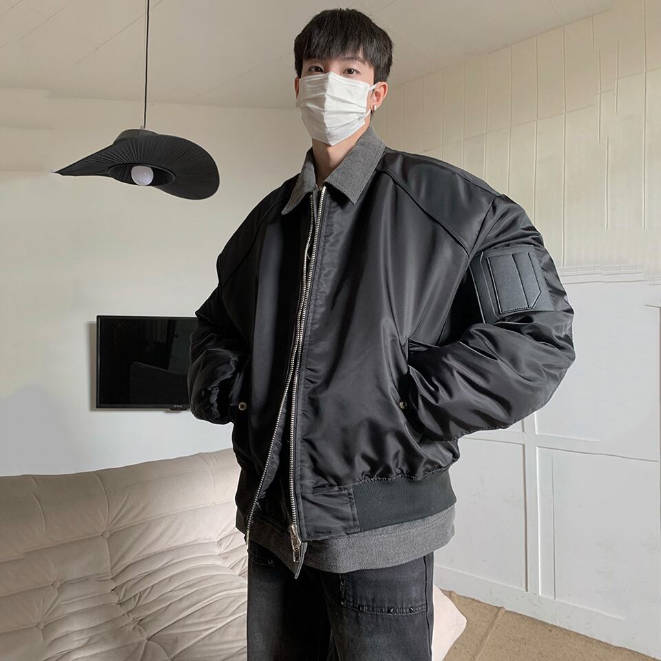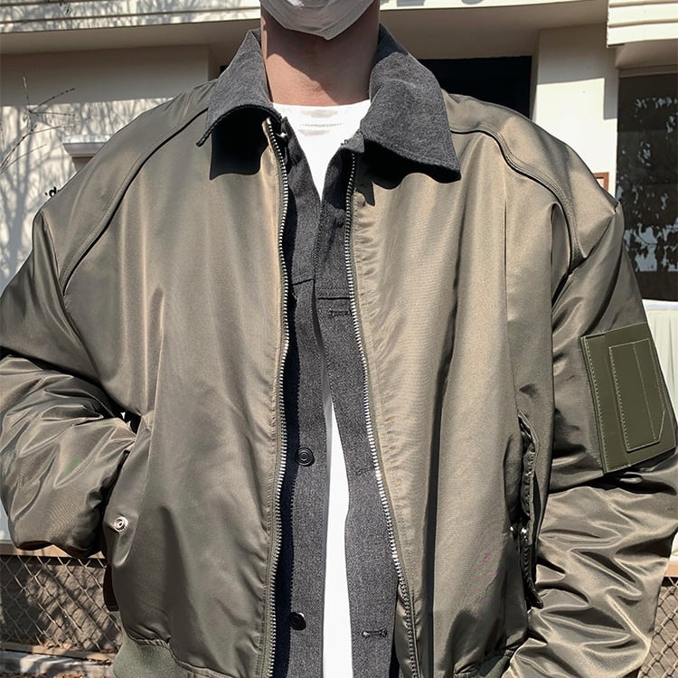 JKSPACEレイヤード風デニム切替フライトジャケット