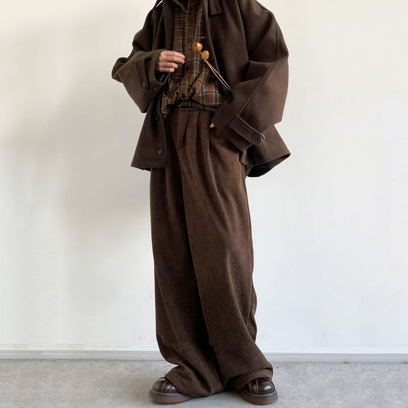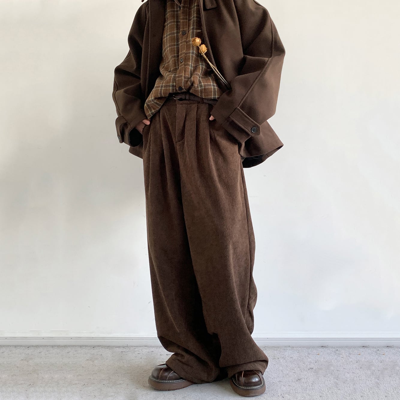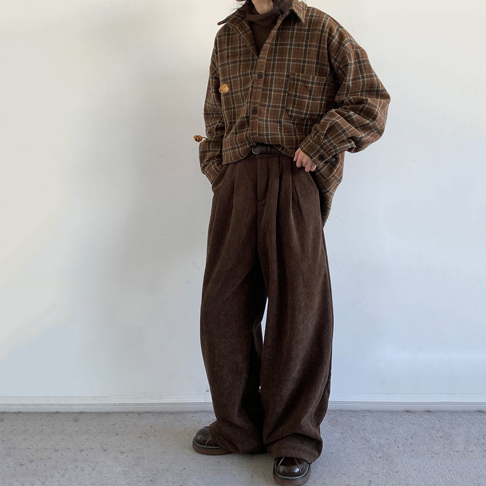 jiwuus裏起毛ウエストゴムコーデュロイパンツ