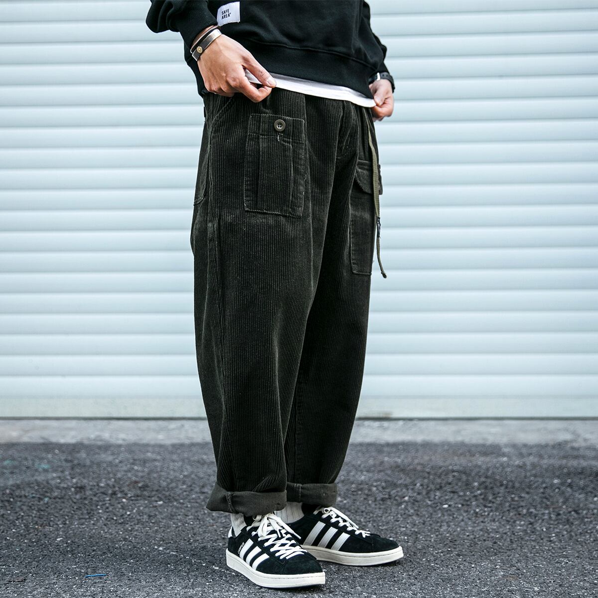 SKASEE STUDIO多ポケット付コーデュロイハーレムパンツ