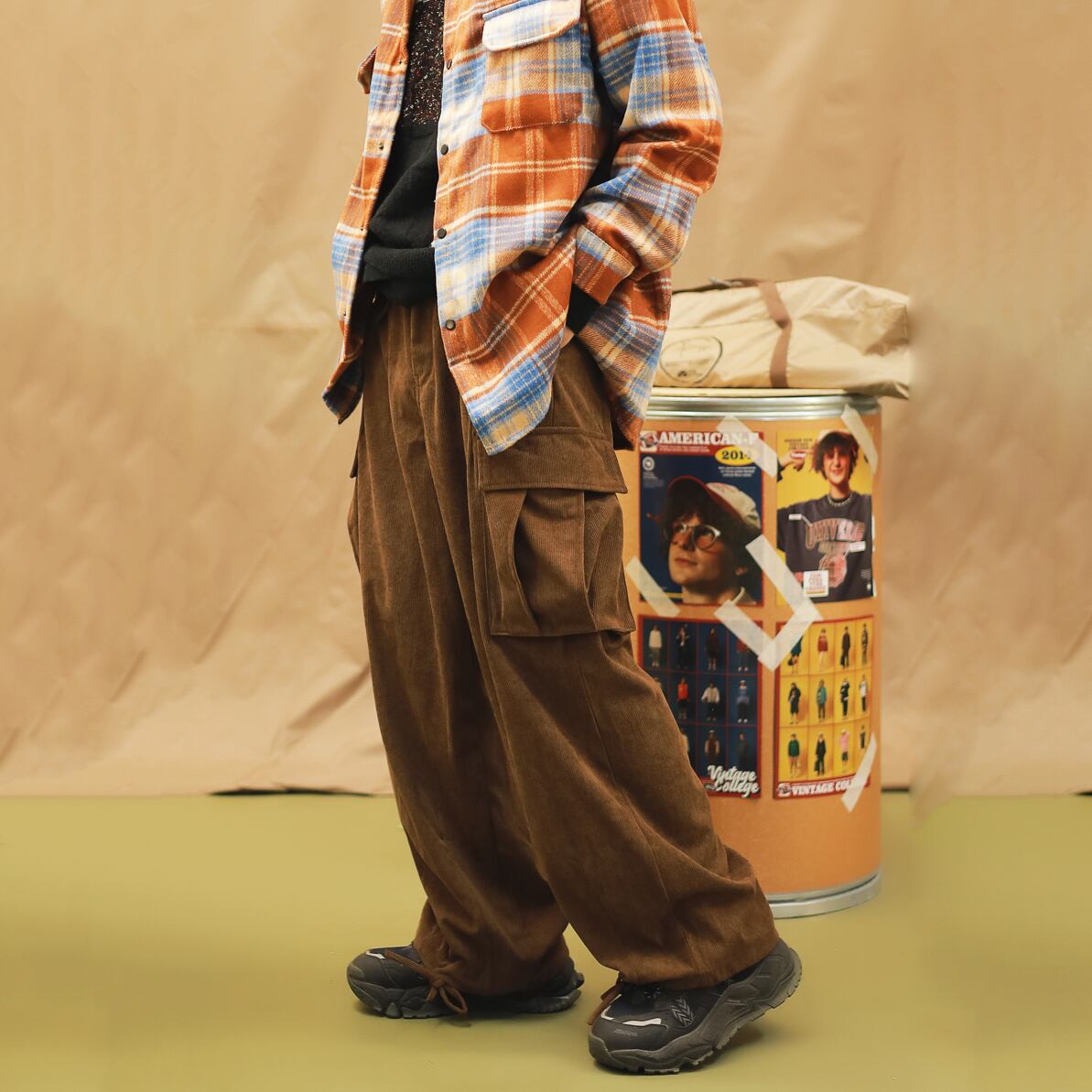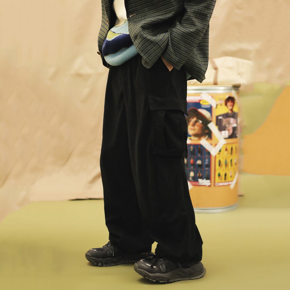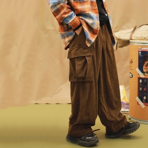 SZYIKU全3色ウエストゴムコーデュロイカーゴパンツ
