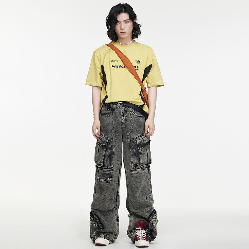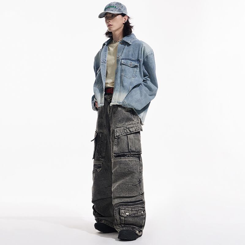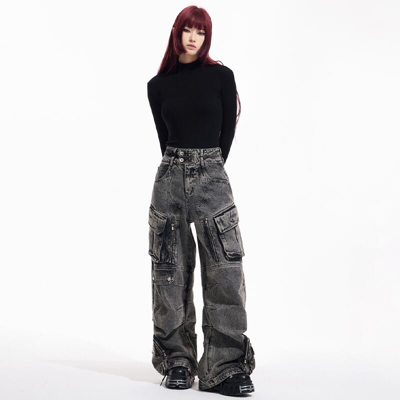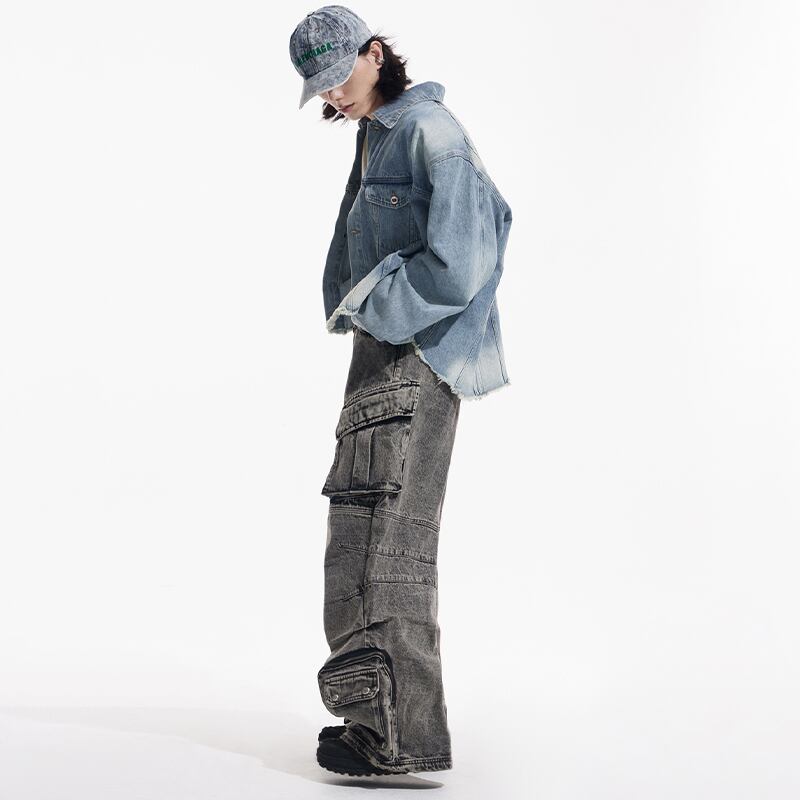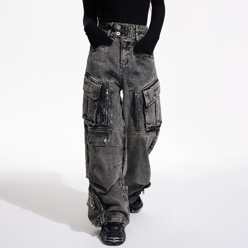 PEOPLESTYLEレトロ多ポケット付デニムパンツ