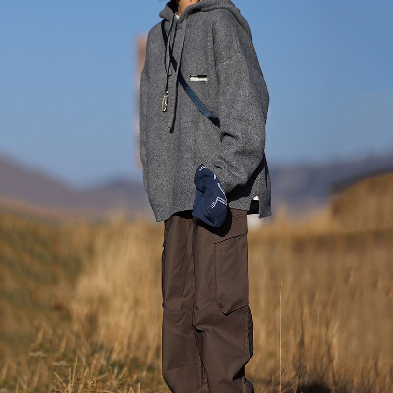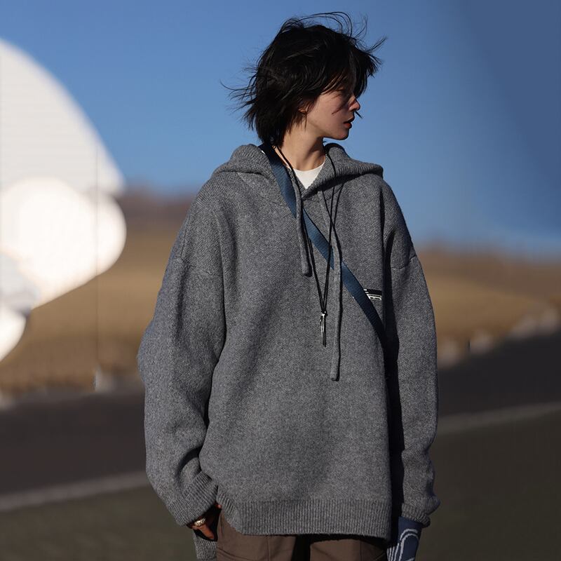 Nobodyknowsフード付きレイジースタイルニットセーター