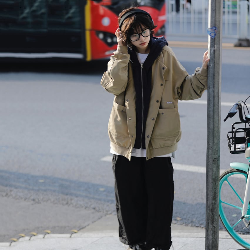 AFISHSTAYレイヤード風フード付きカーゴジャケット
