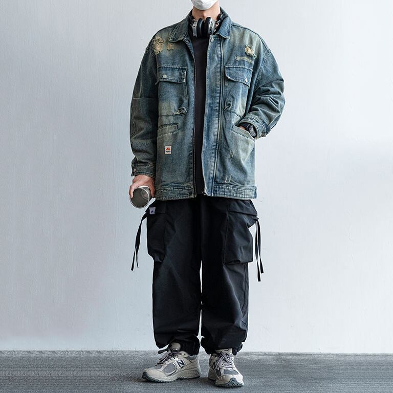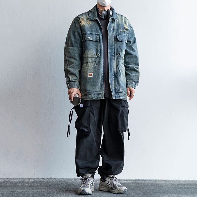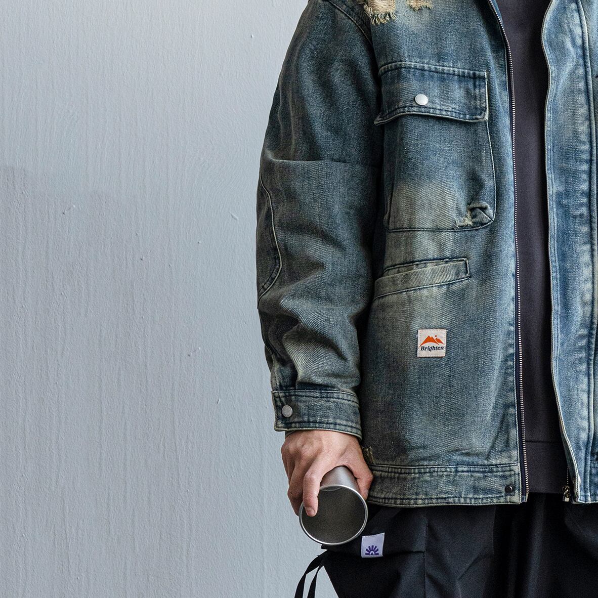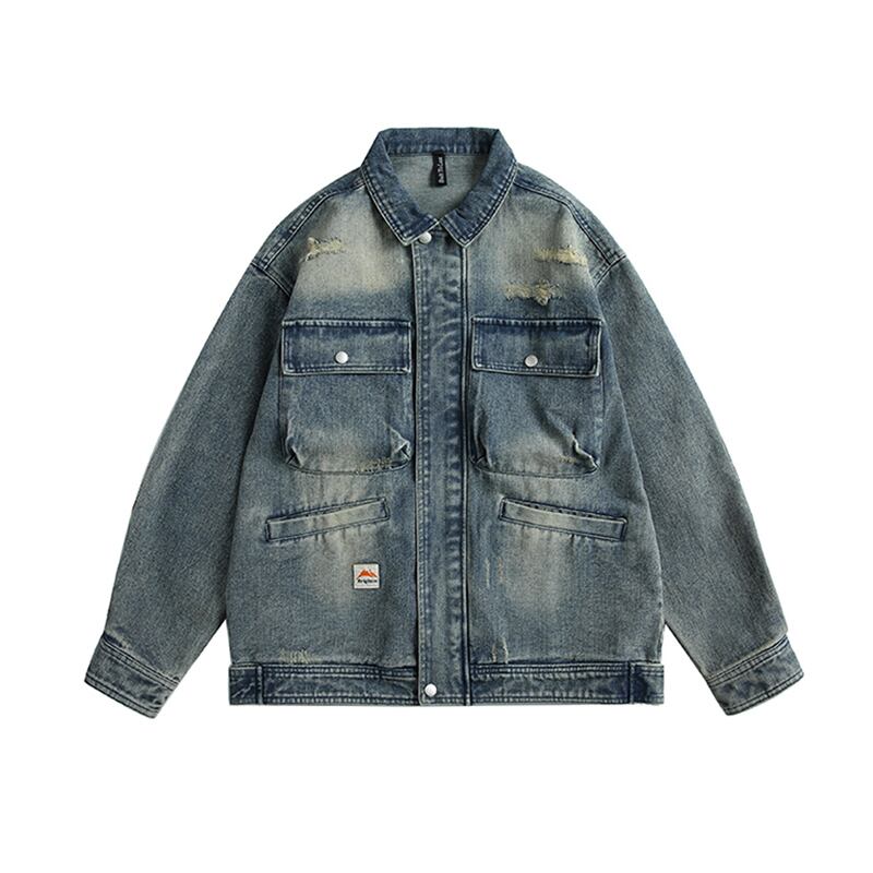 Flostore多ポケット付ダメージデニムジャケット