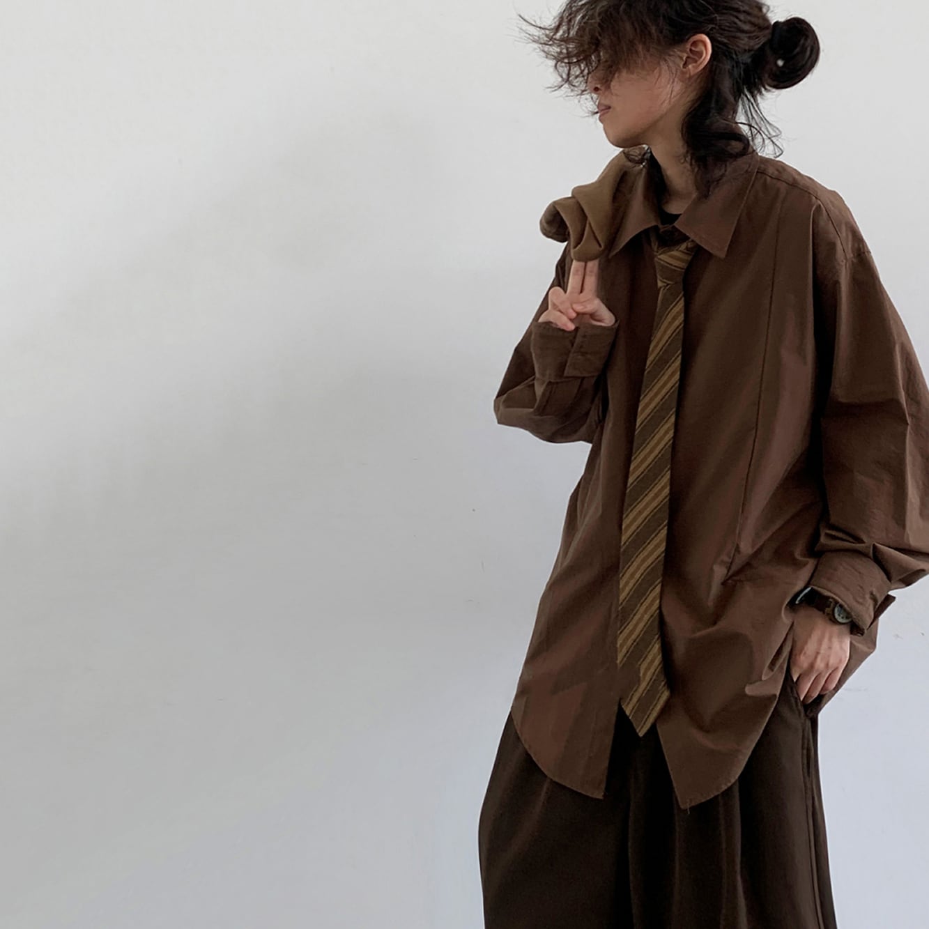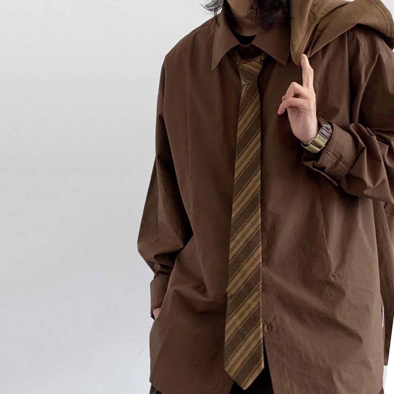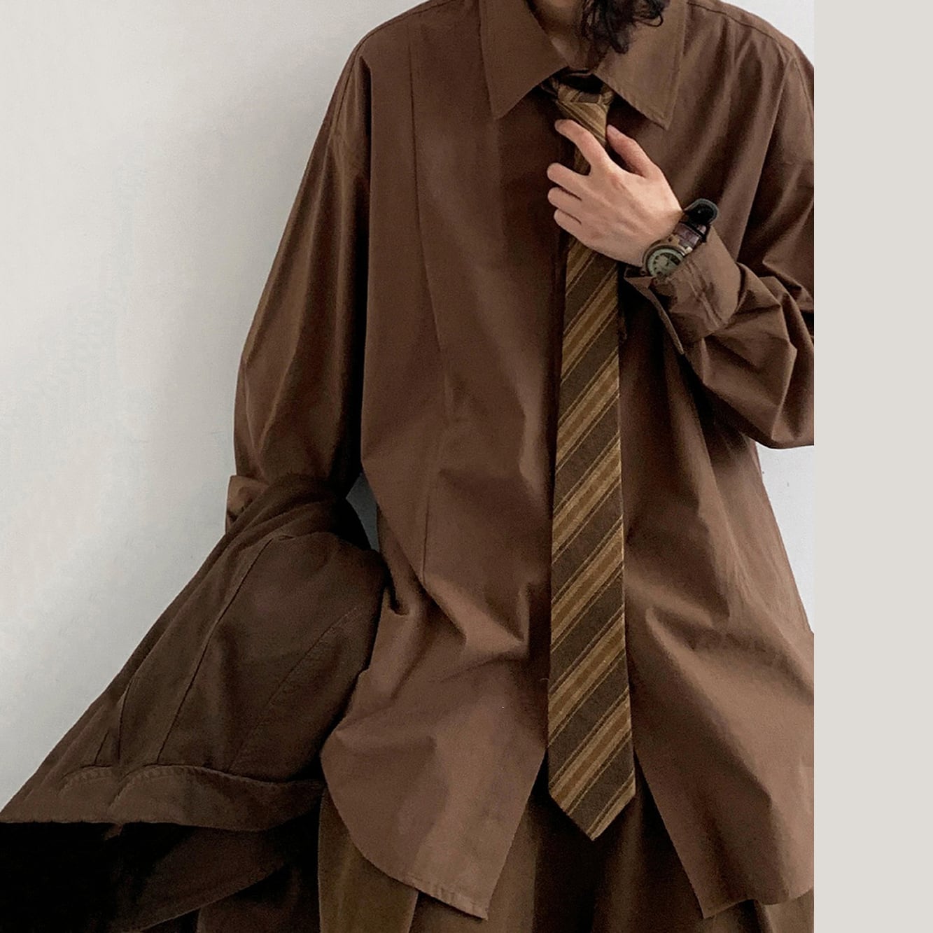 jiwuus茶色の斜めストライプ柄ネクタイ