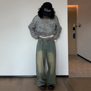 UPDAYWANGヴィンテージライクワイドデニムパンツ