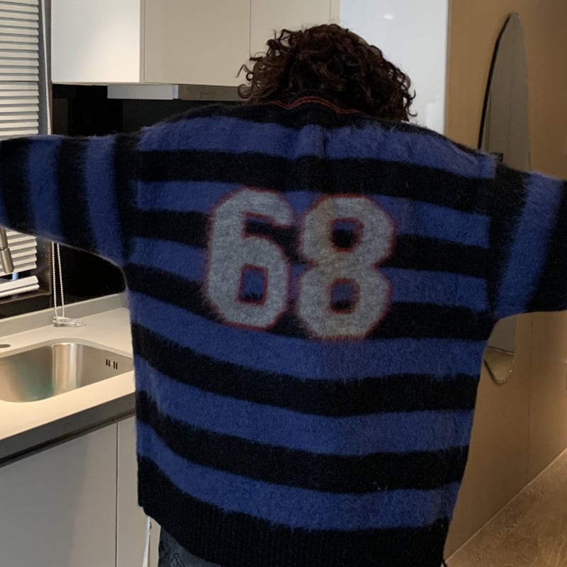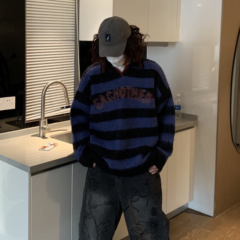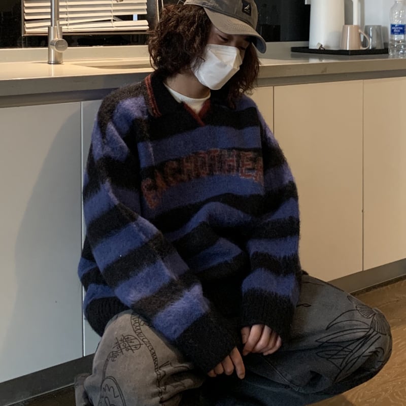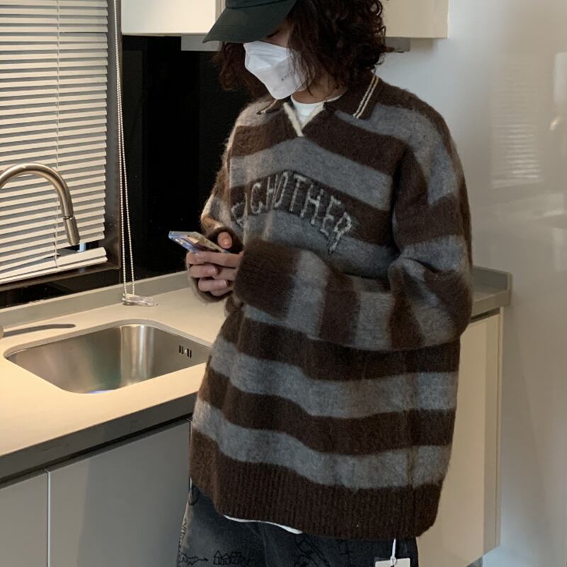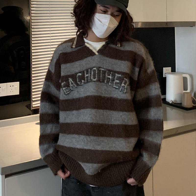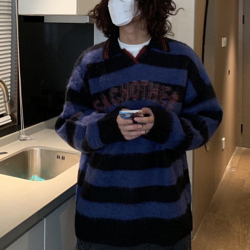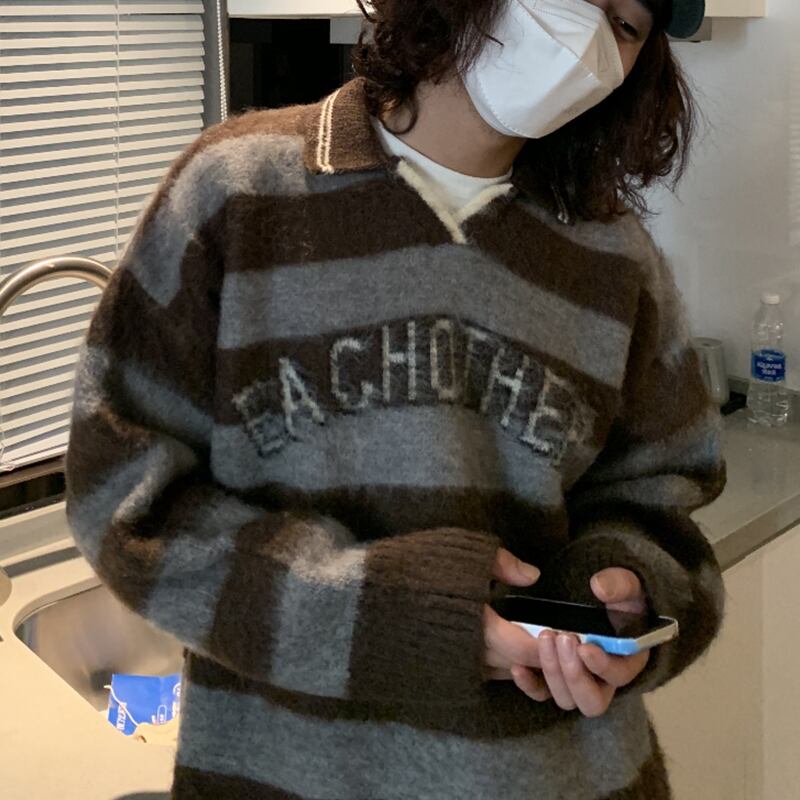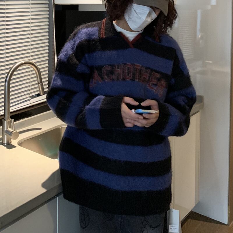 UPDAYWANG学院風ボーダー柄ニットセーター