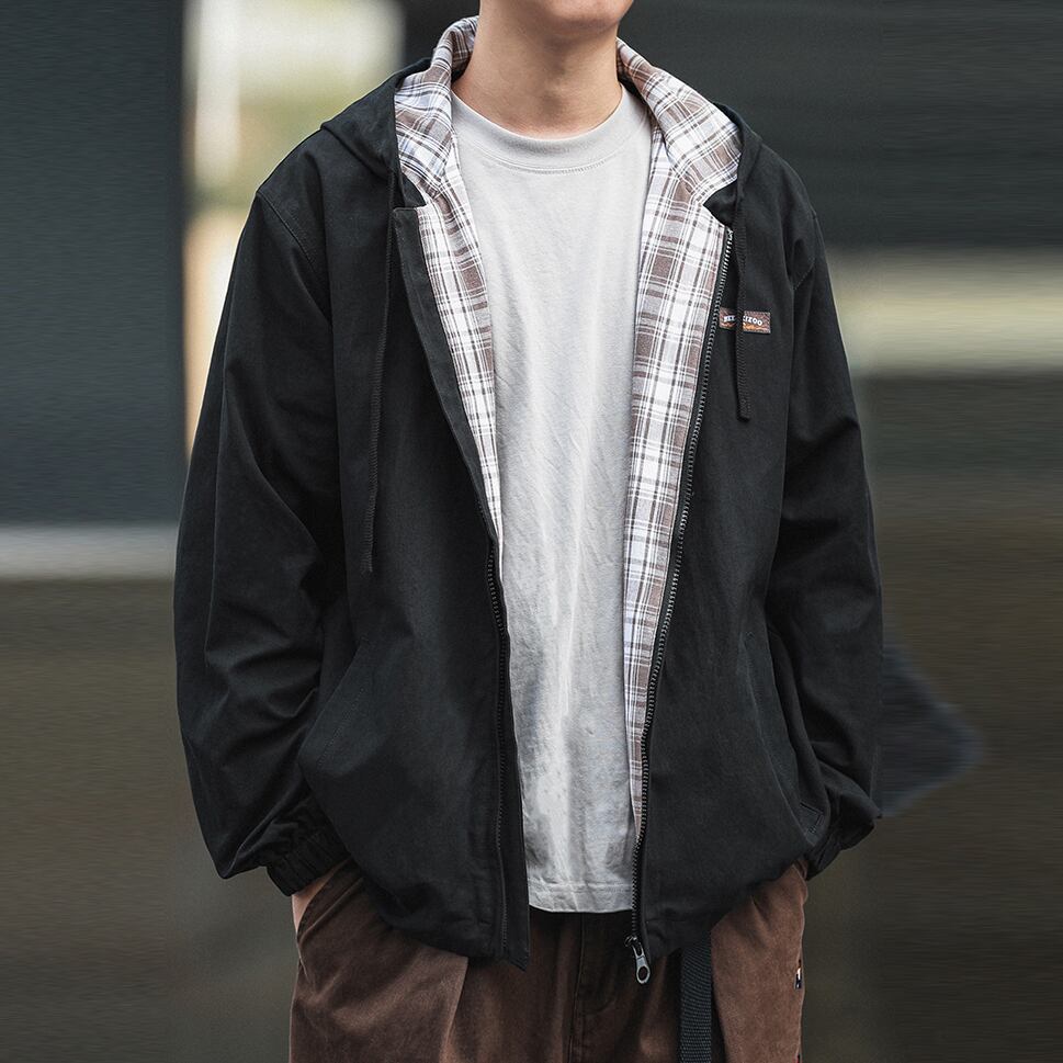 HEEMKIZOOチェック柄切替フード付ジャケット