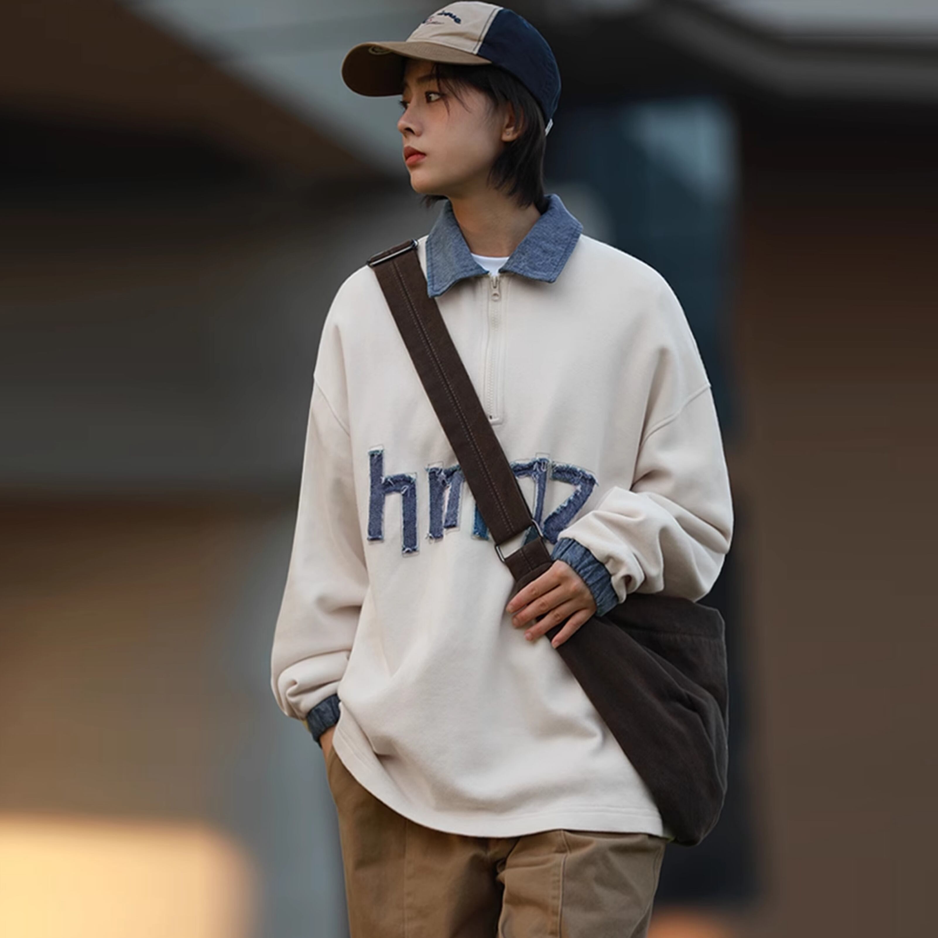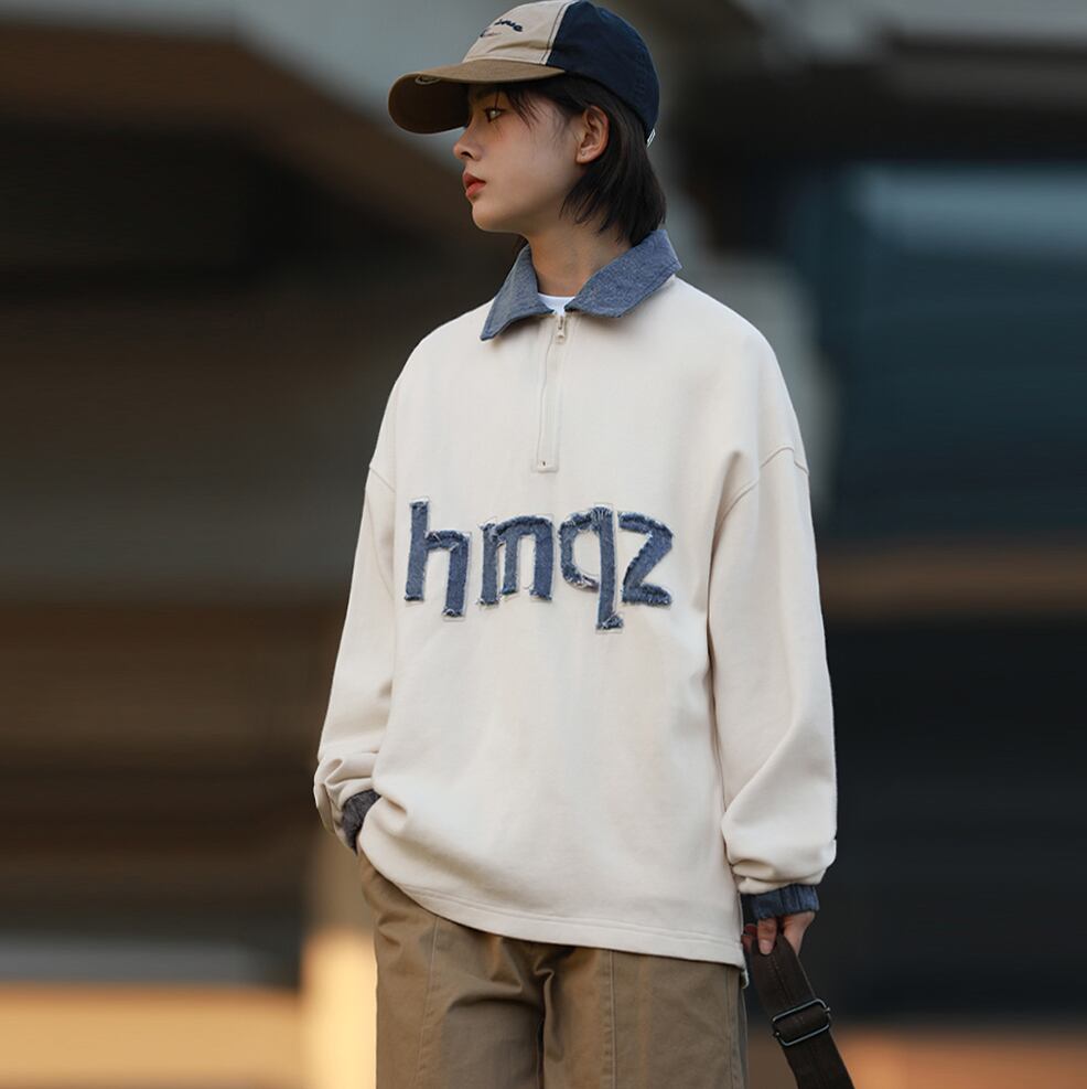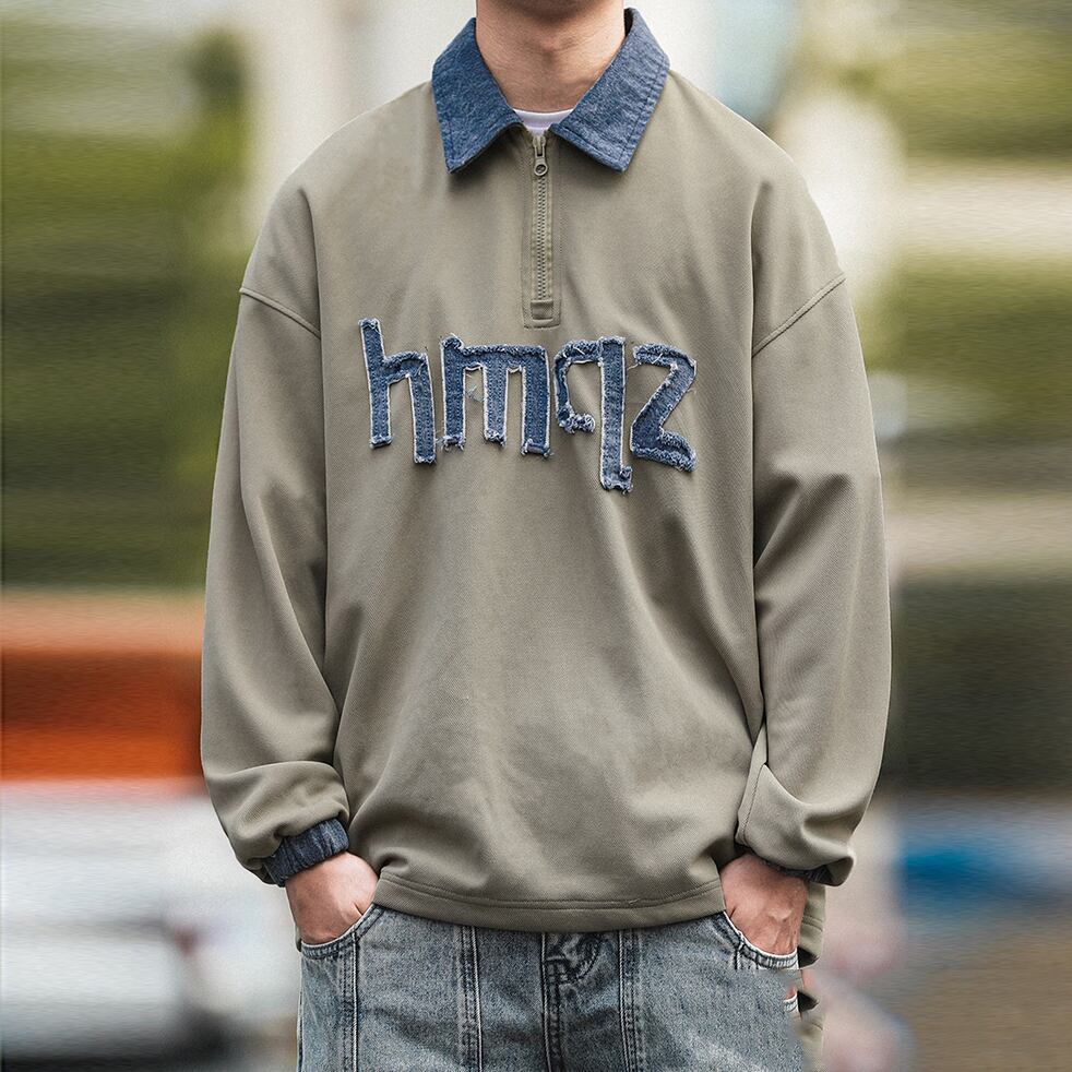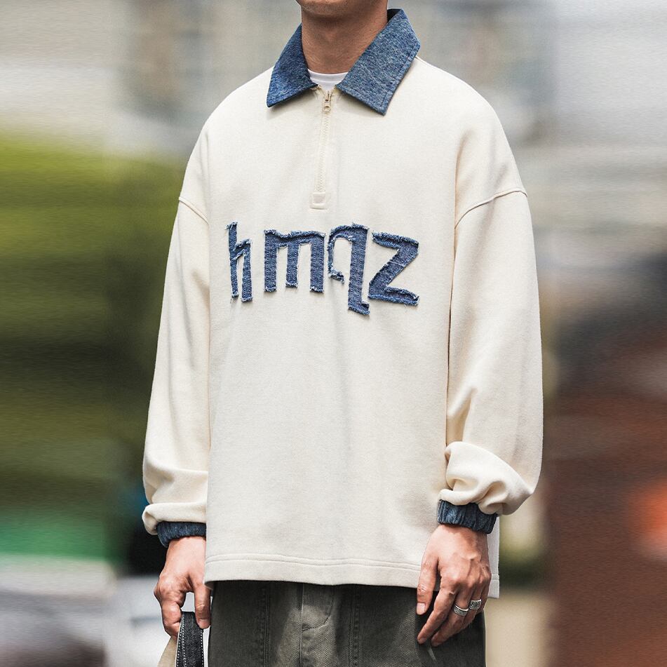 HEEMKIZOOデニム切替ハーフジップスウェット