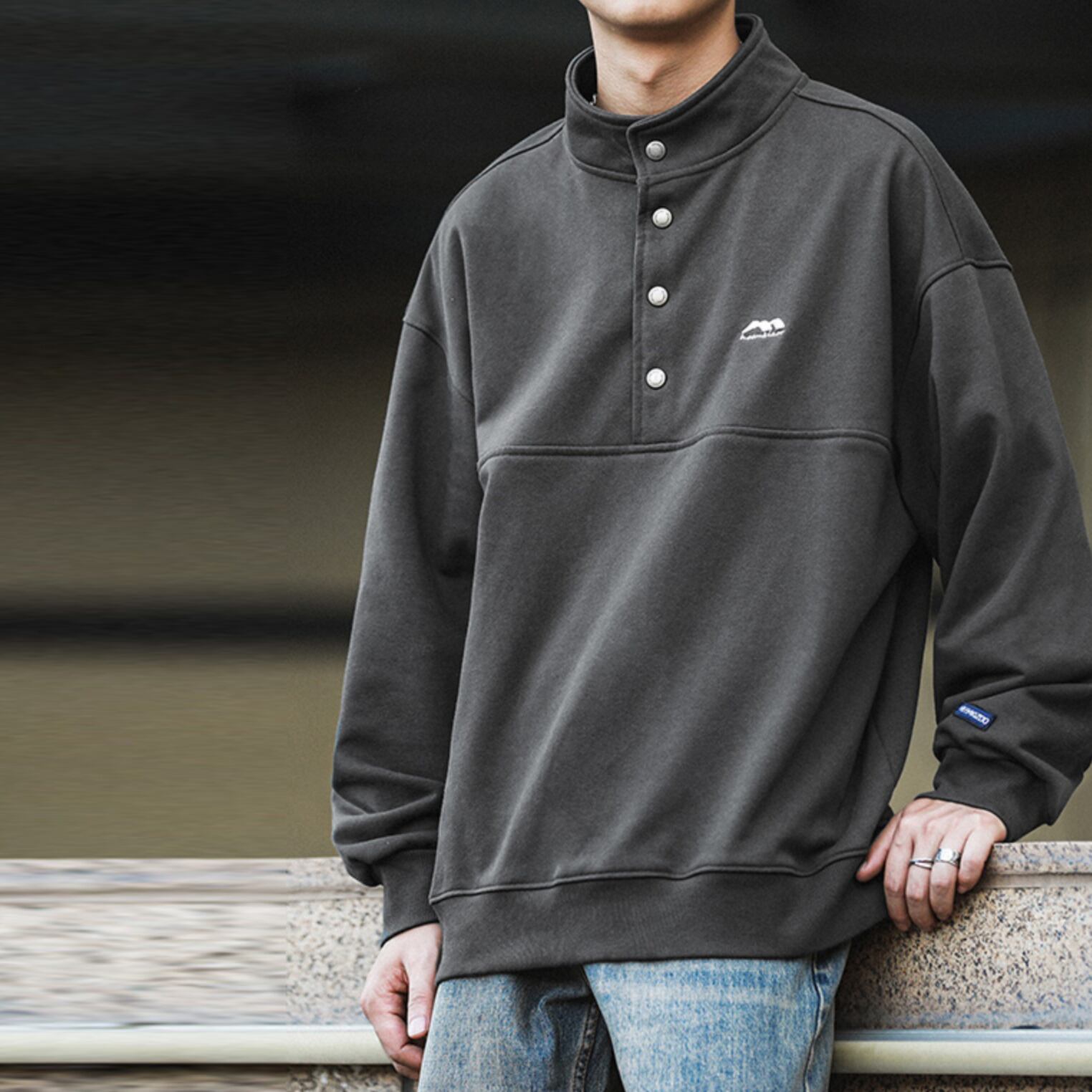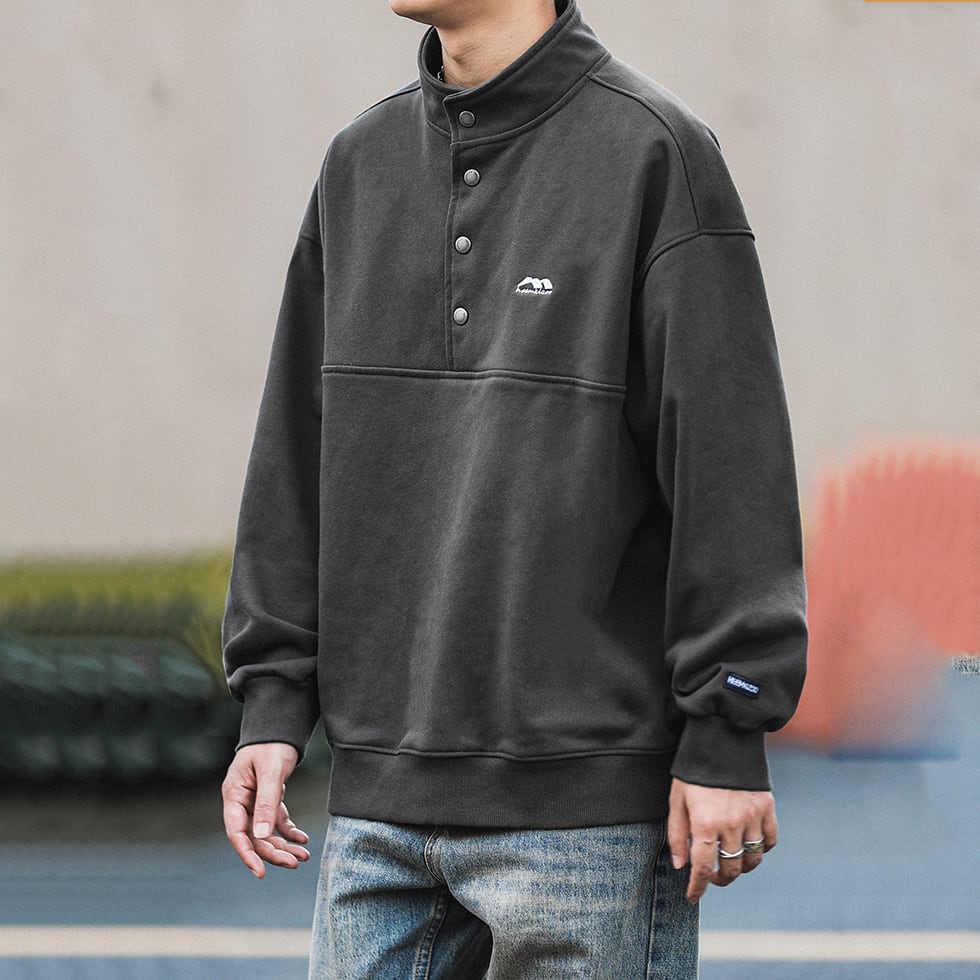 HEEMKIZOO刺しゅう入りハーフボタンスウェット