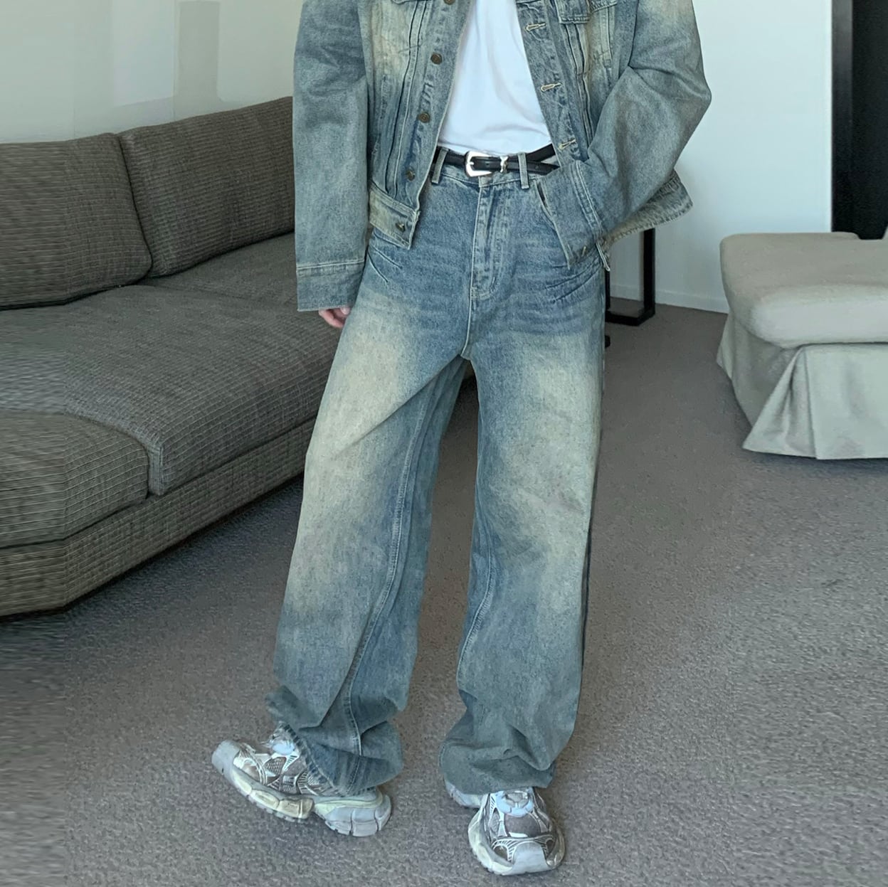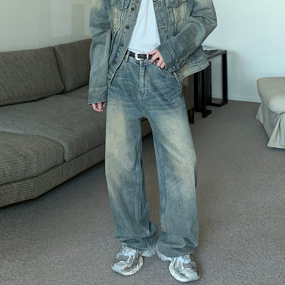 cuibujuバック裾ダメージ加工入りデニムパンツ