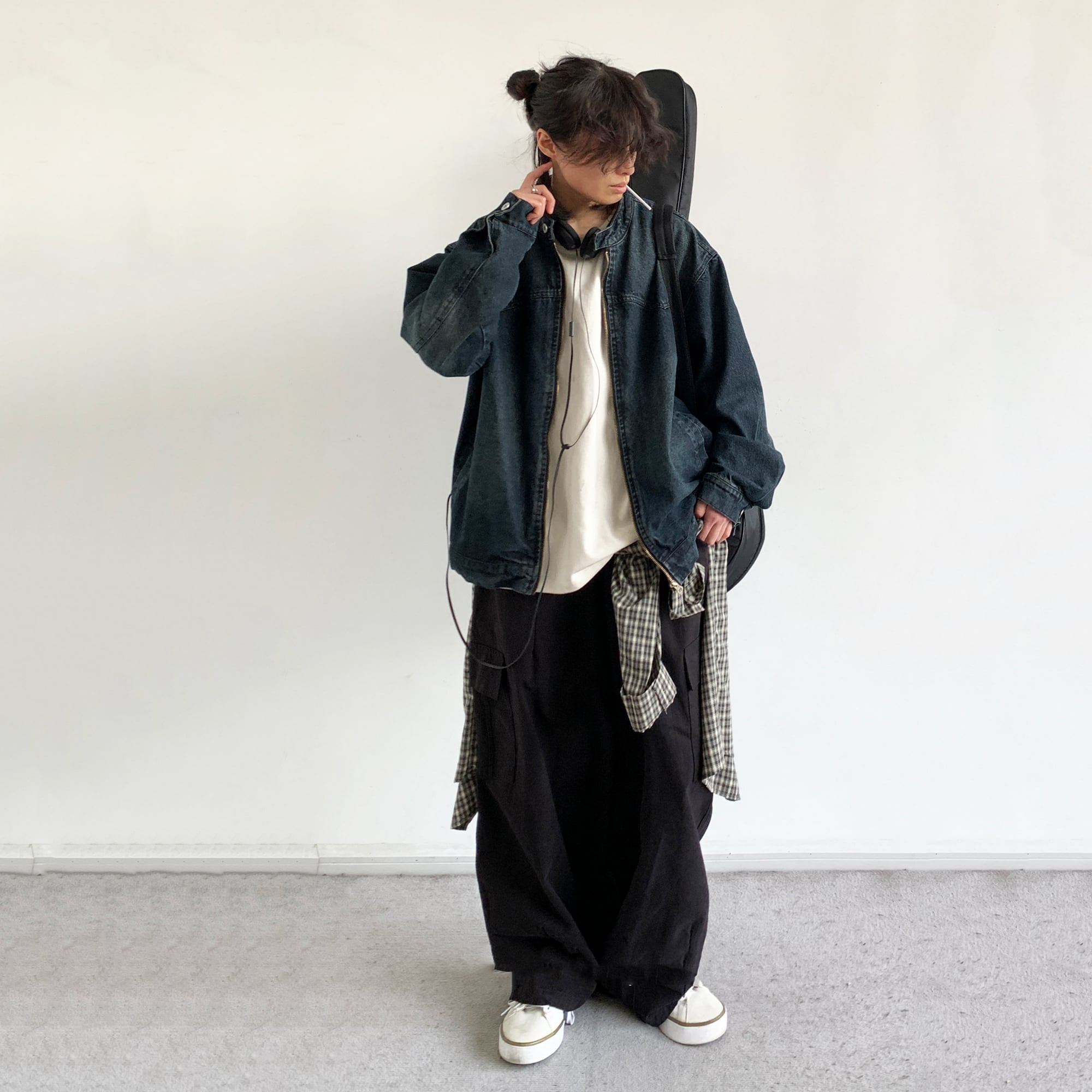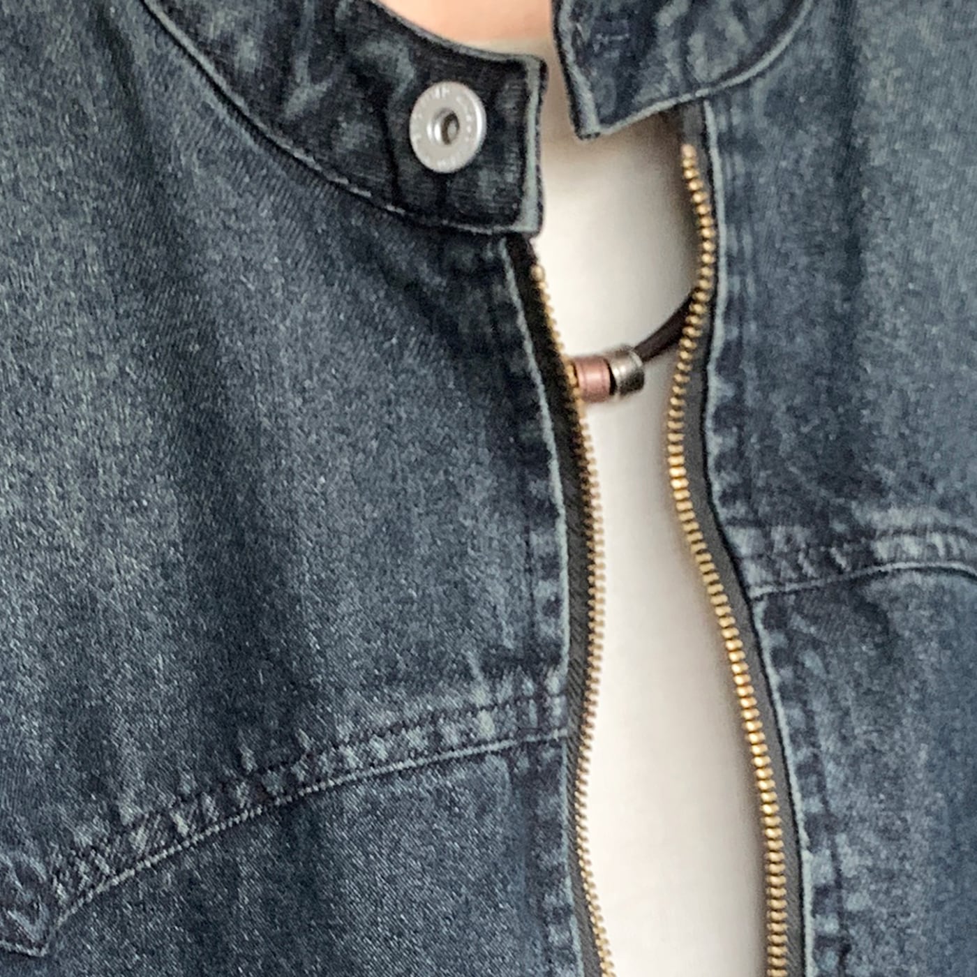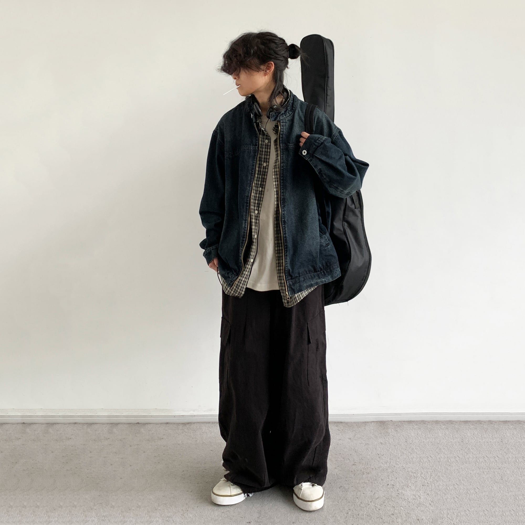 jiwuus紺青色ジップアップデニムジャケット