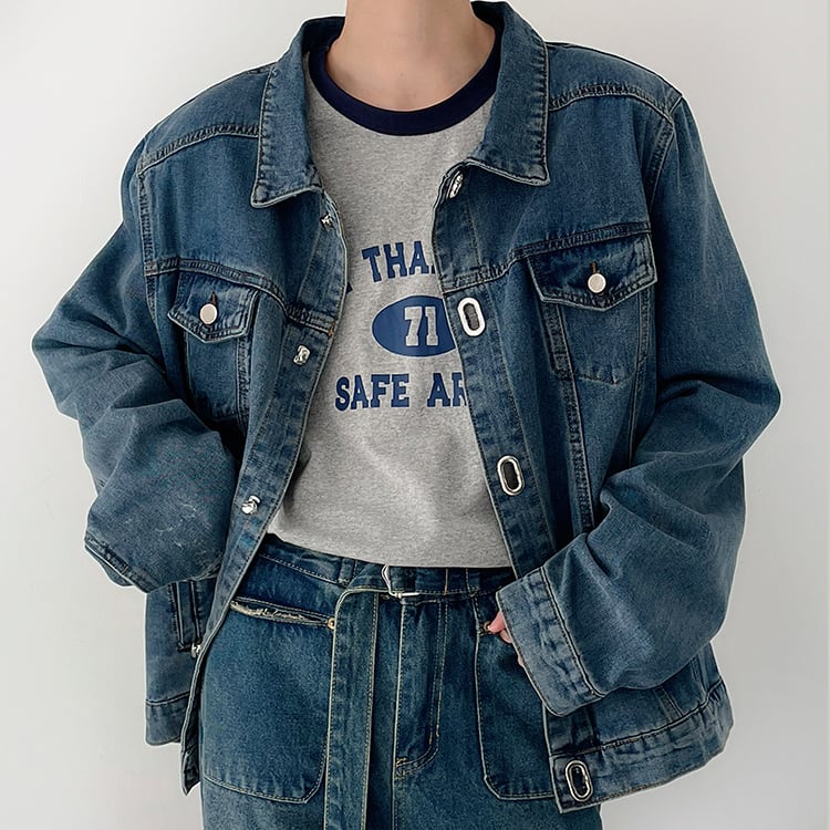 SQUARE FACEおしゃれな肩パット入りデニムジャケット