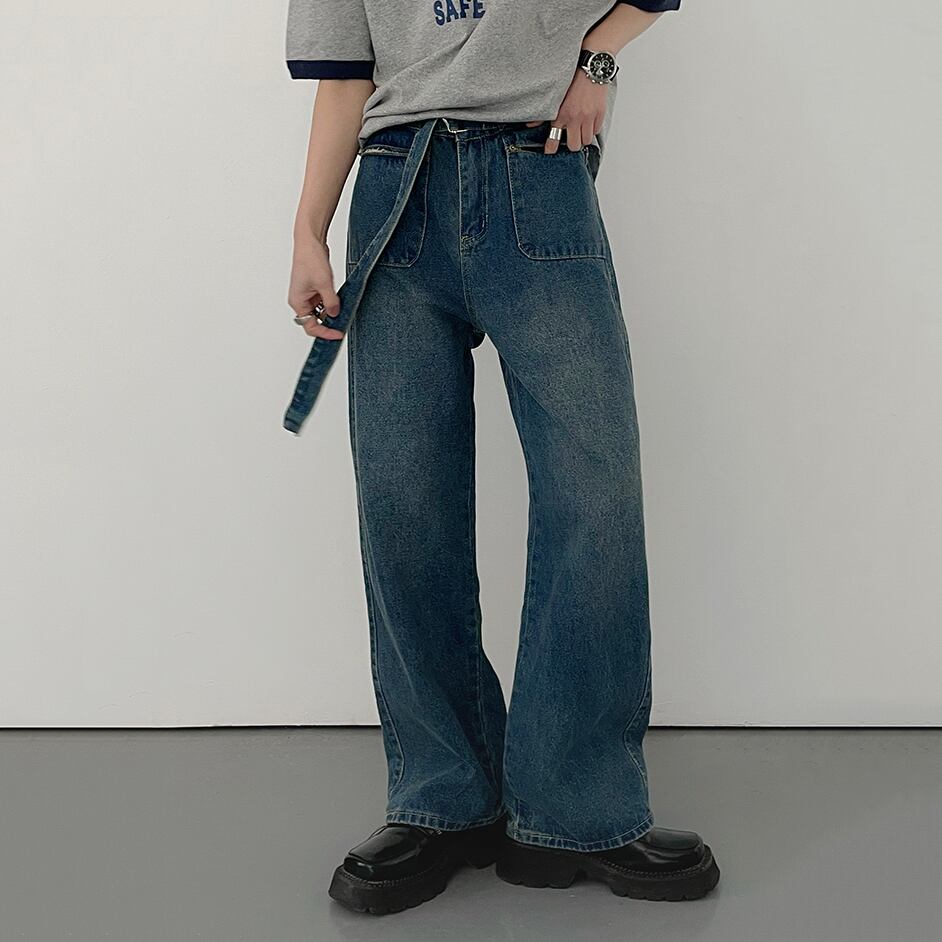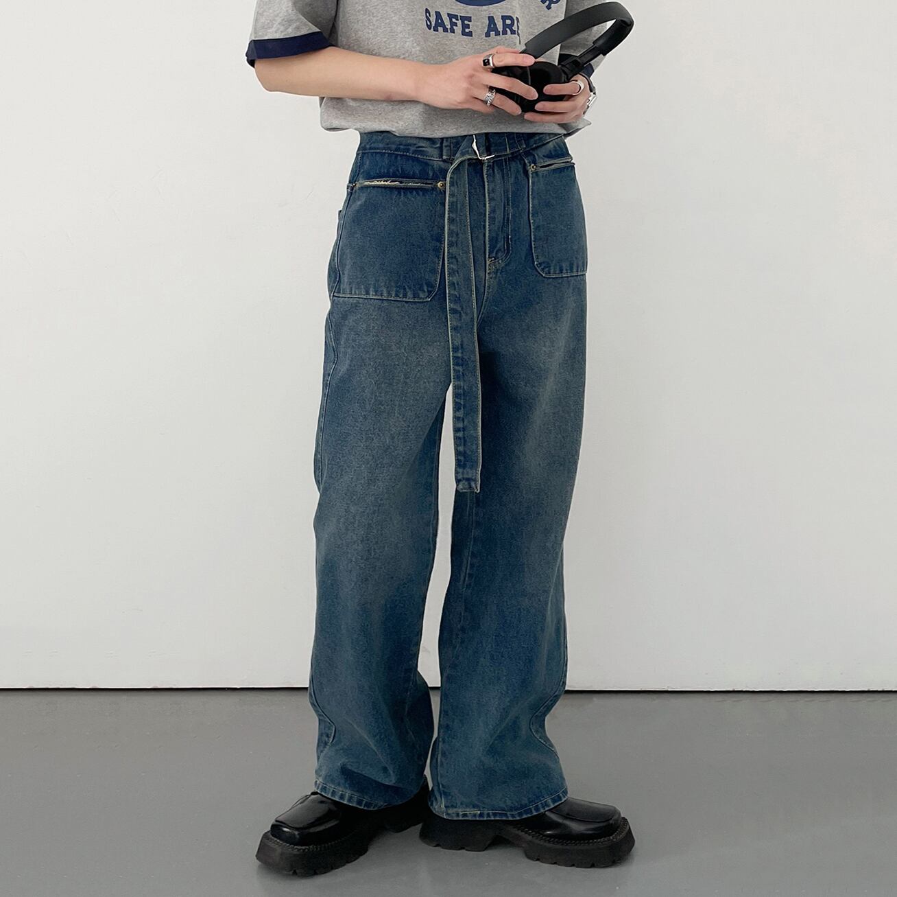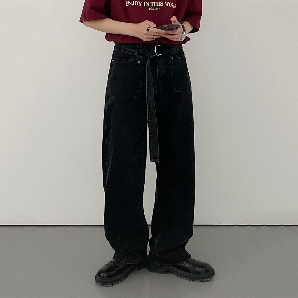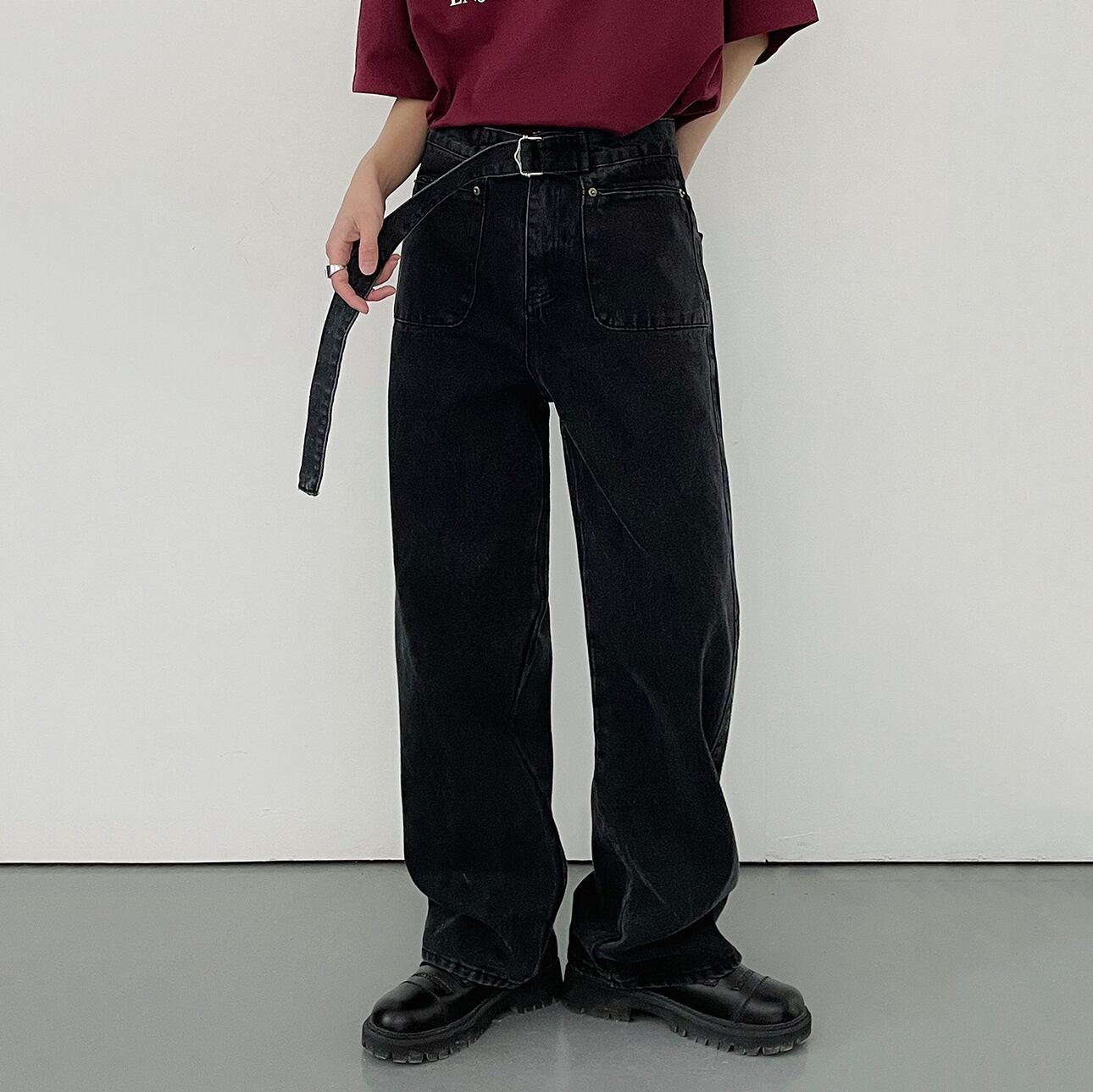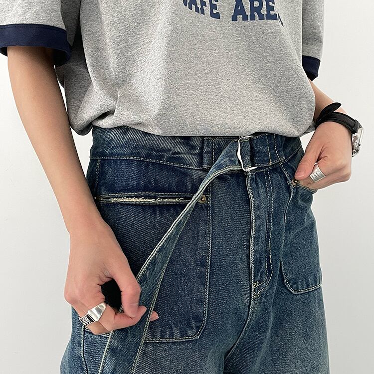 SQUARE FACEベルトデザイン入りデニムパンツ