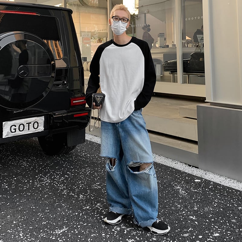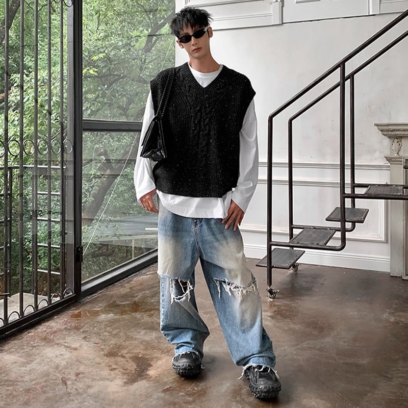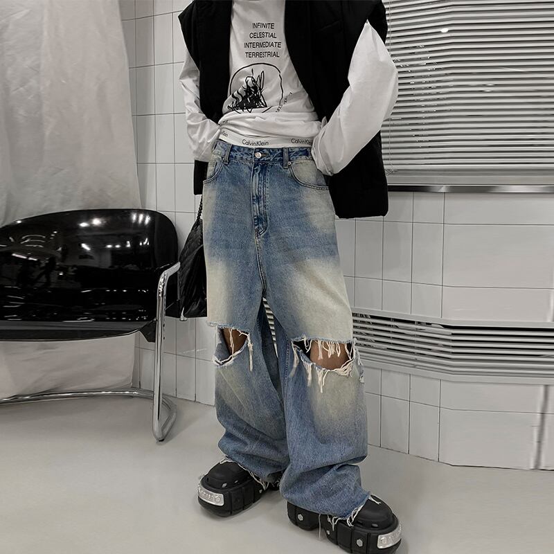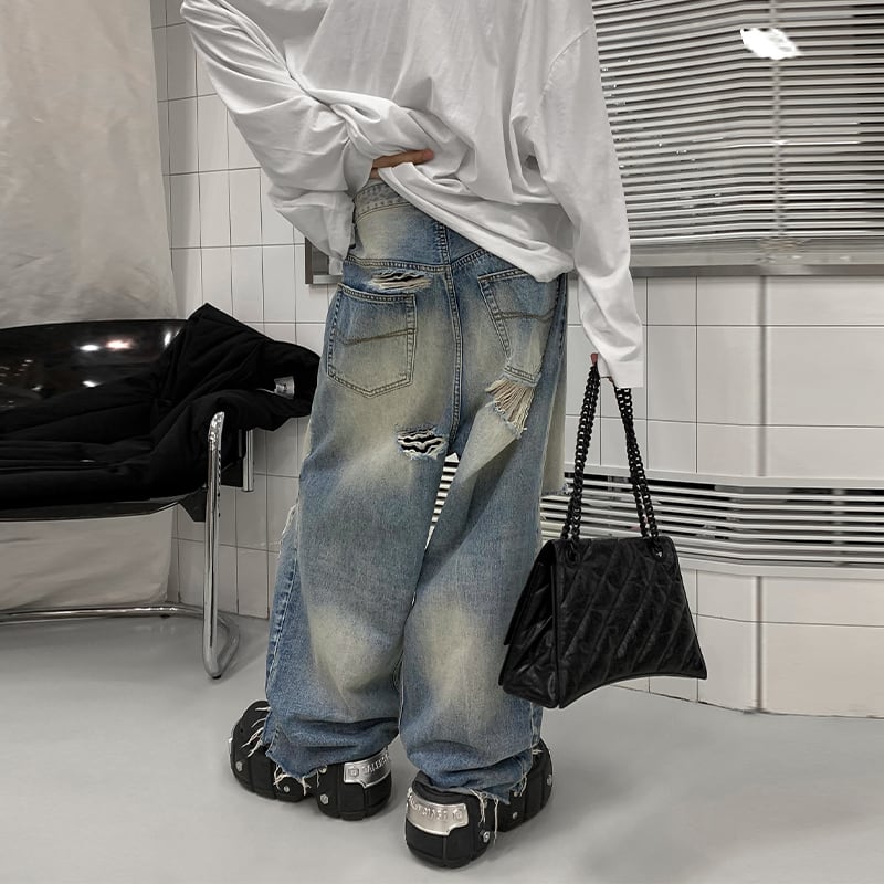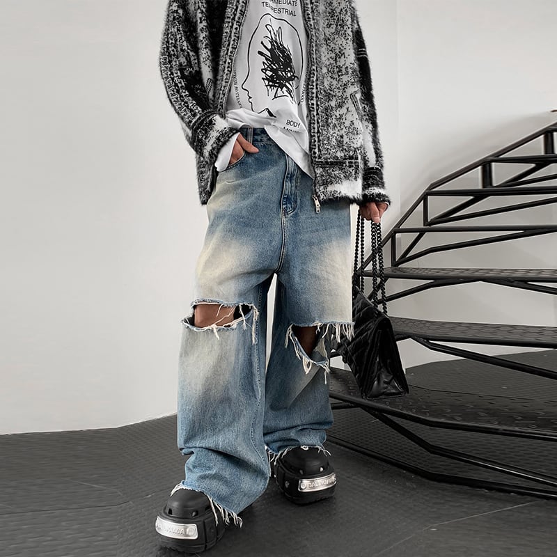 HOZIハードクラッシュデニムワイドパンツ