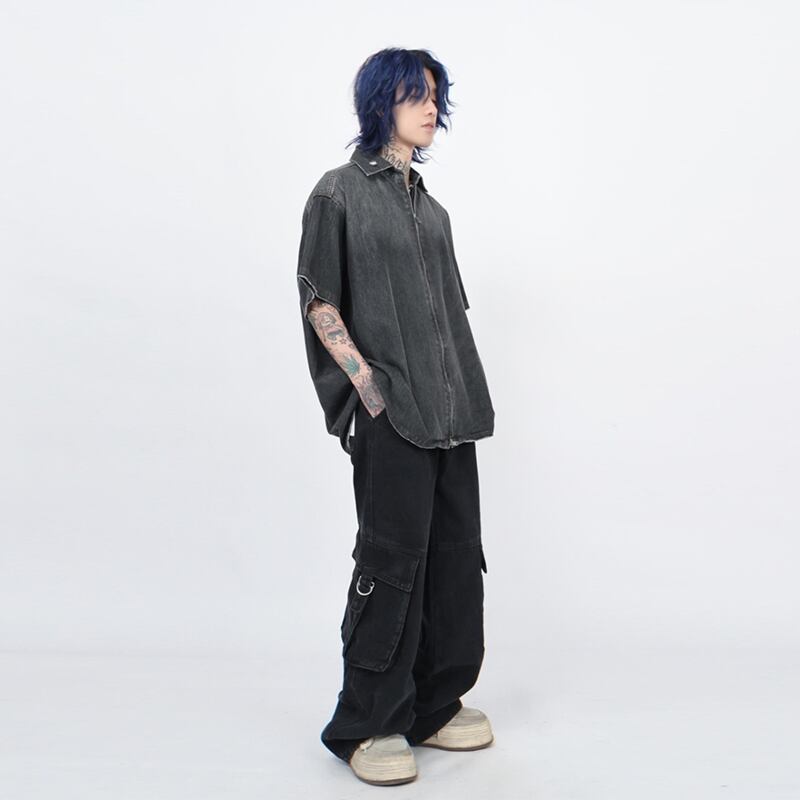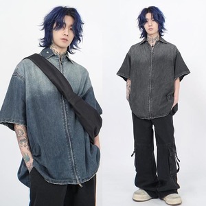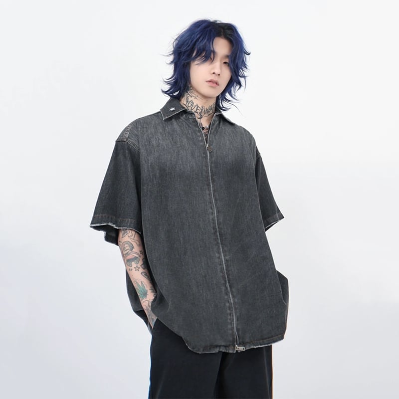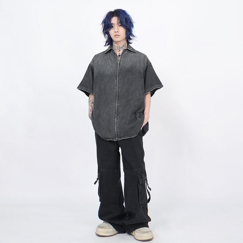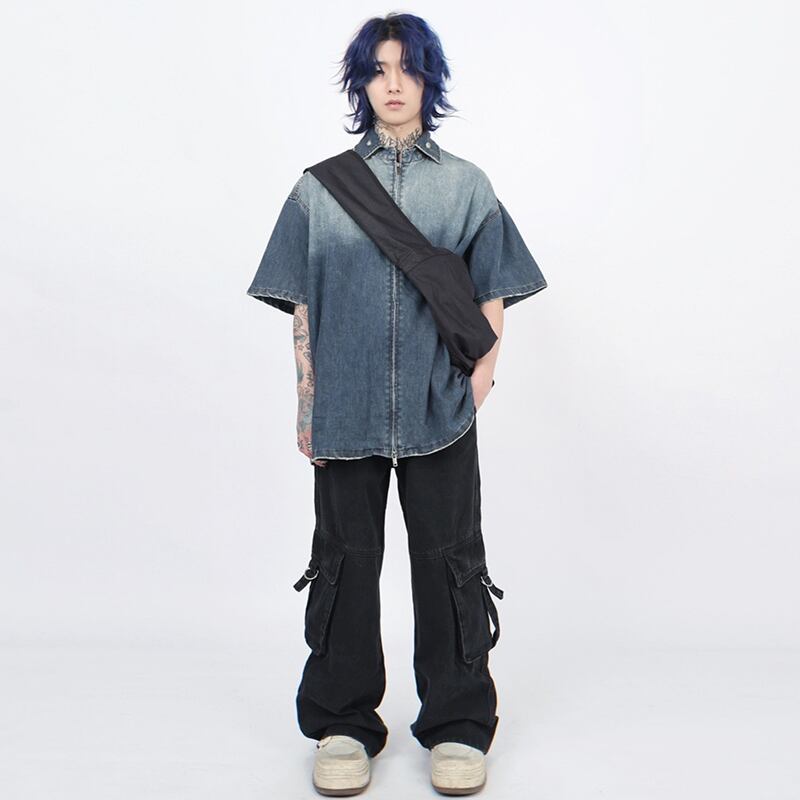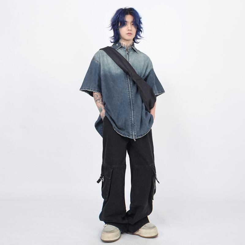MZ STUDIOグラデーションダブルジップデニムシャツ