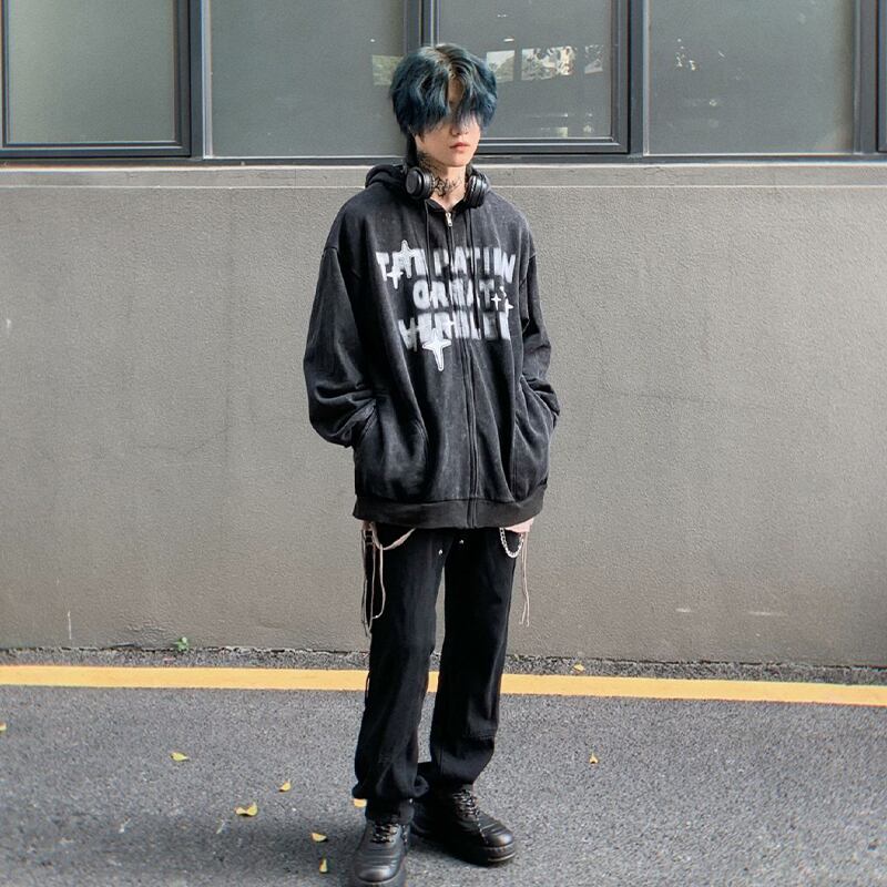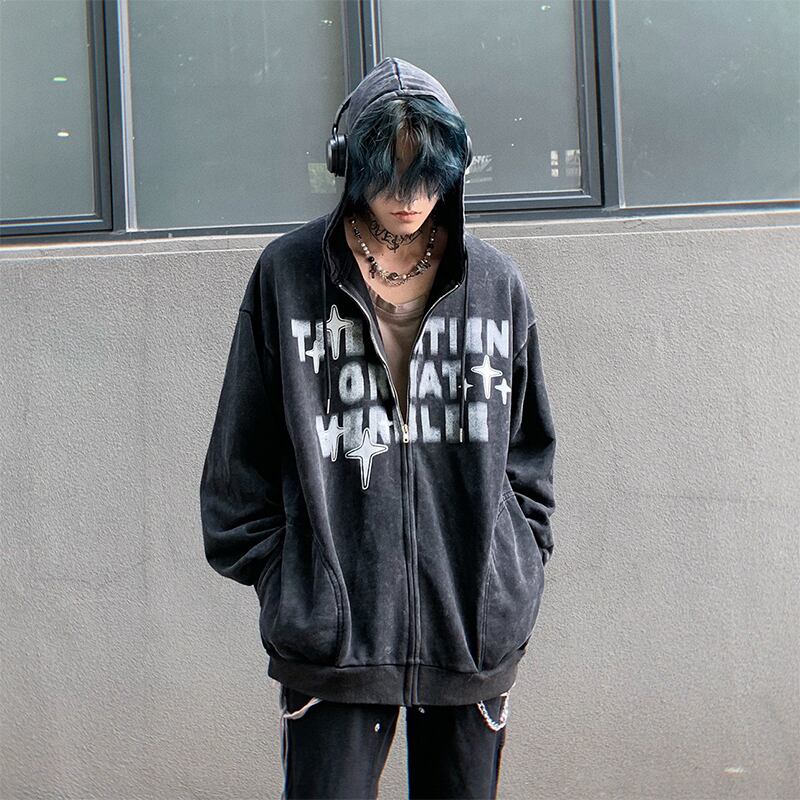 MZ STUDIO全3色英字ロゴレトロジップパーカー