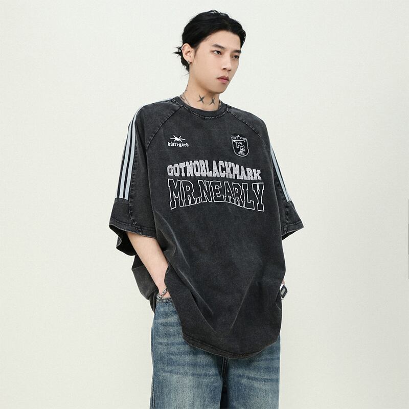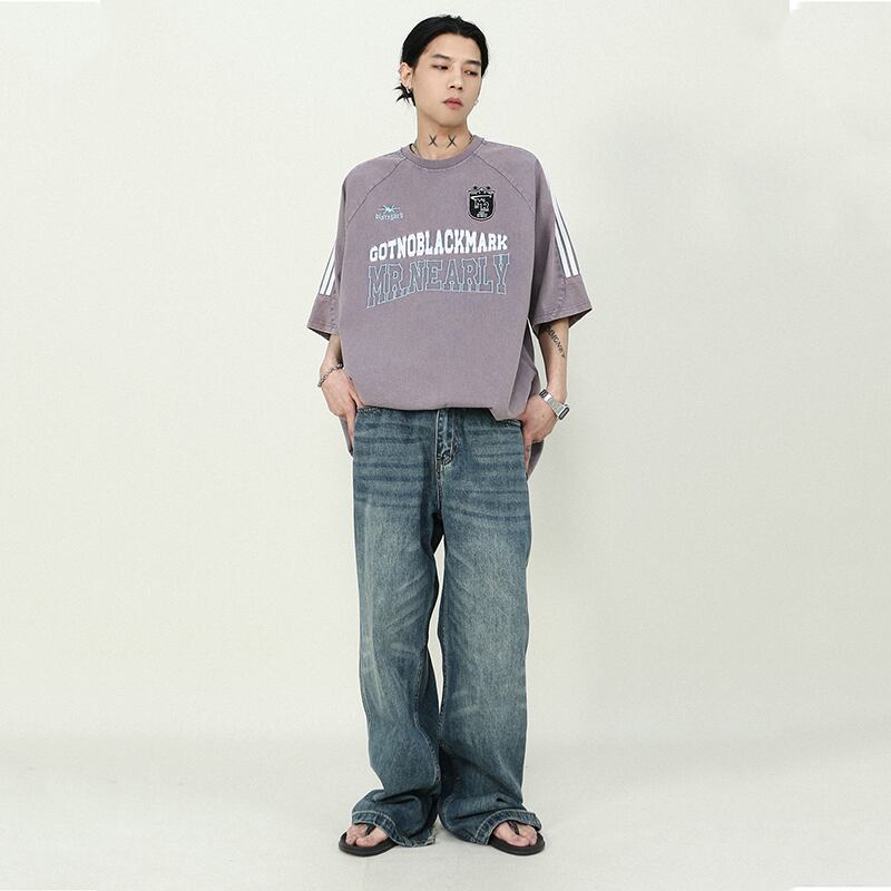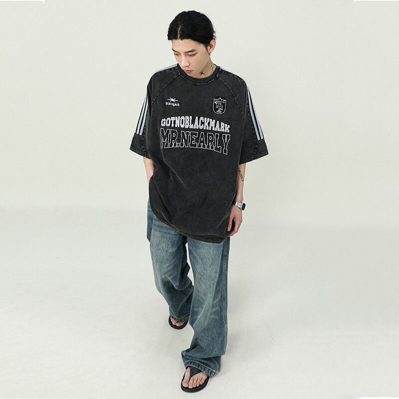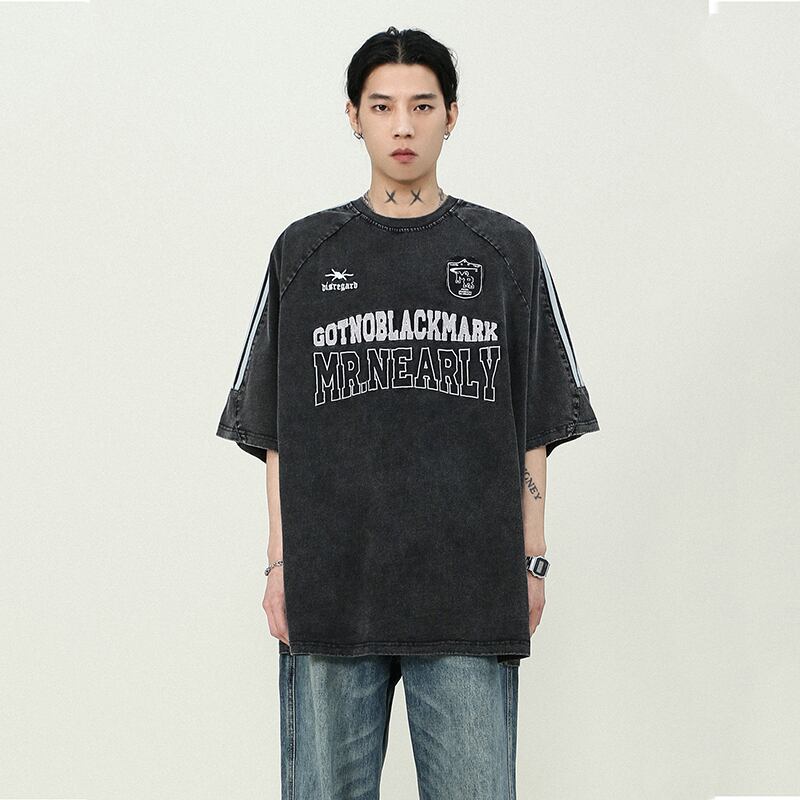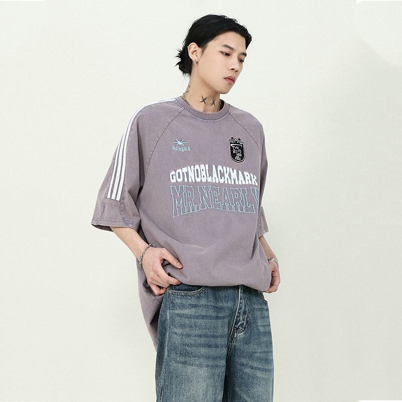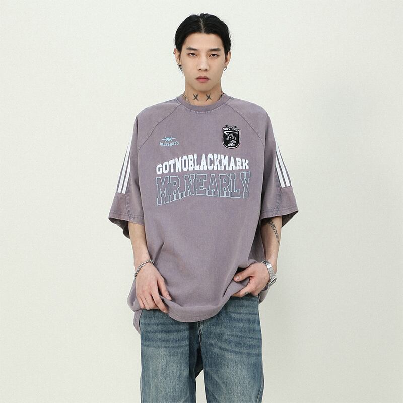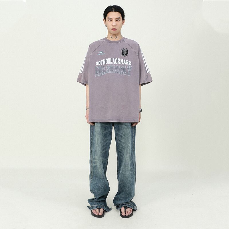 MRNEARLY全4色アメリカ風半袖ラグランTシャツ
