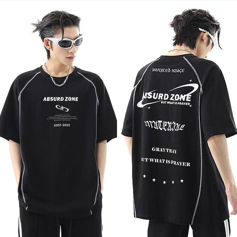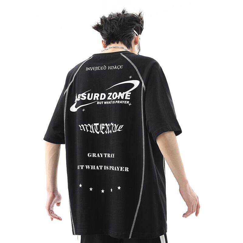 ストリート系英字ロゴ半袖Tシャツ