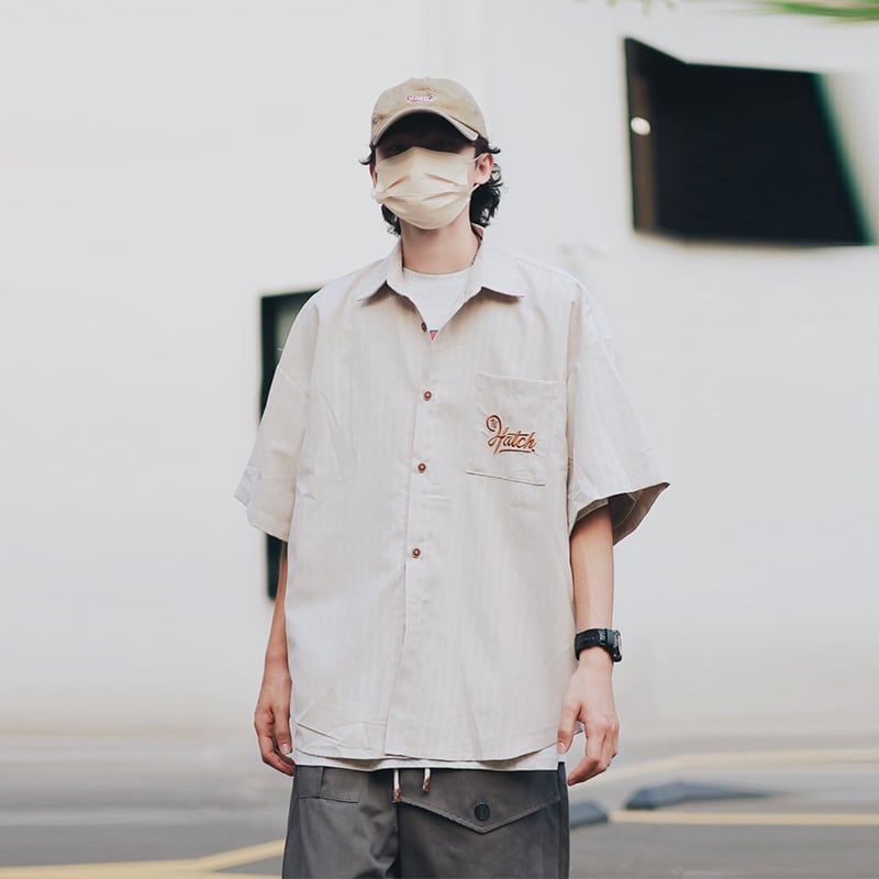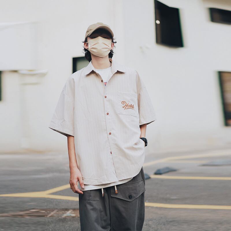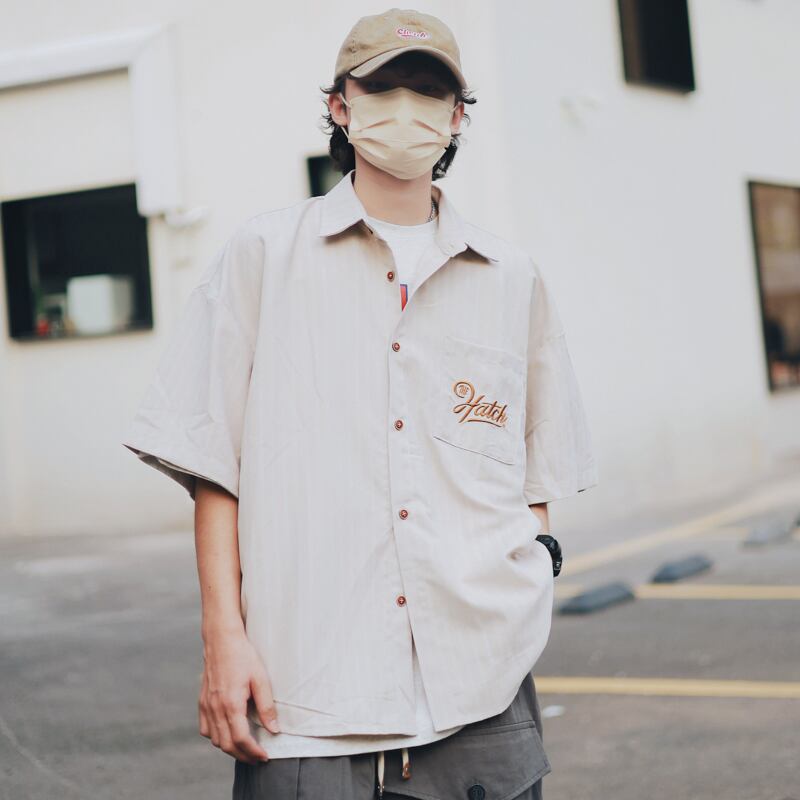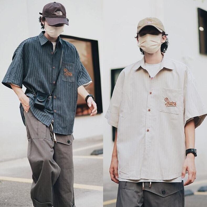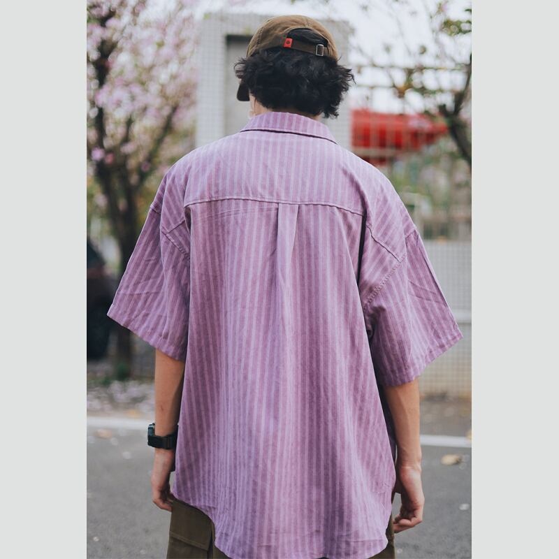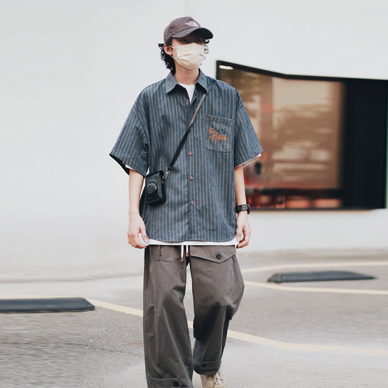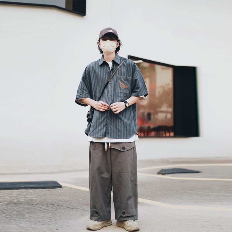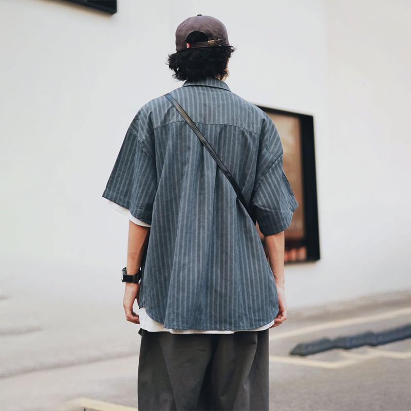SZYIKU全3色原宿系ストライプ柄半袖シャツ