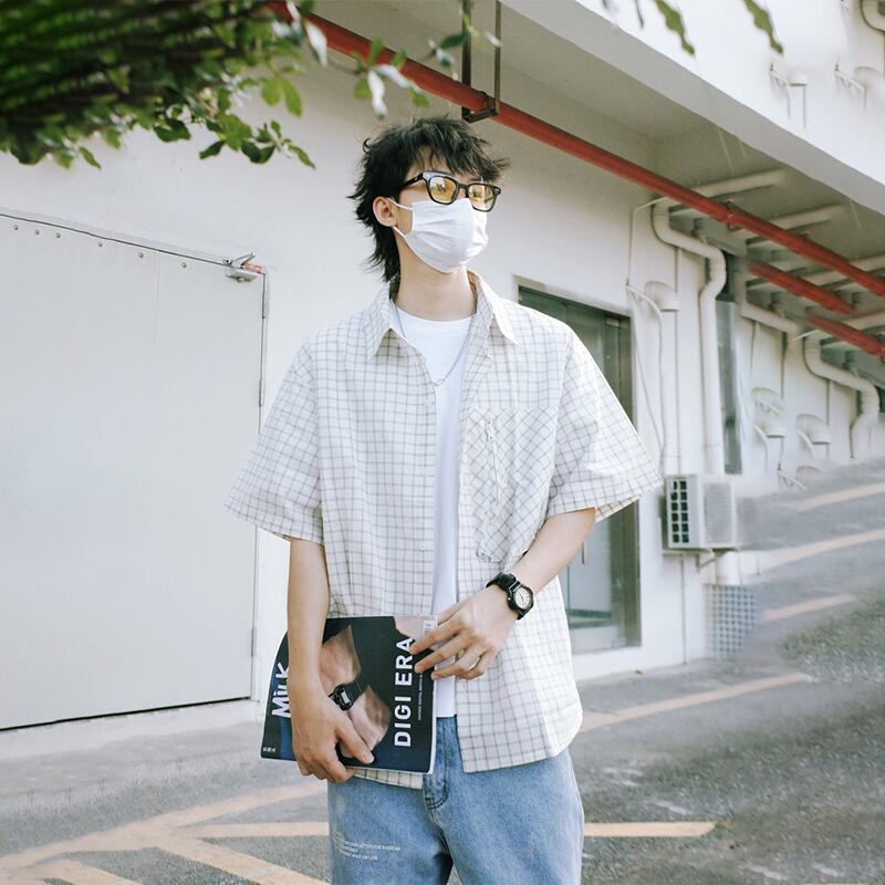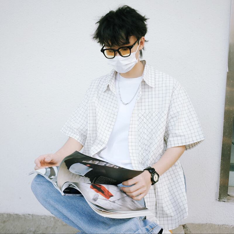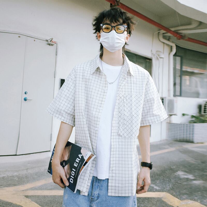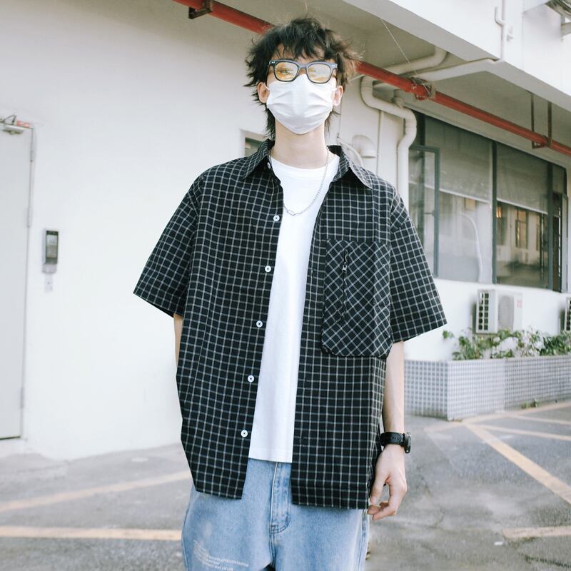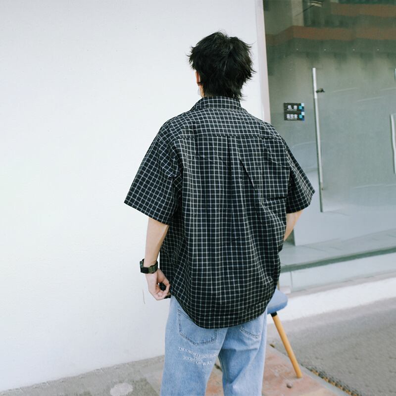 SZYIKU格子柄の半袖シャツ