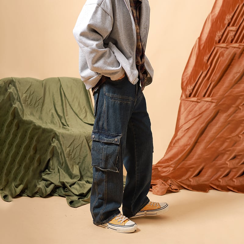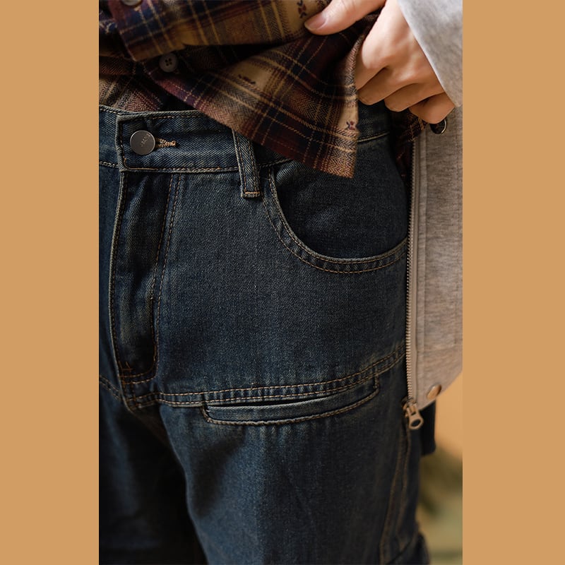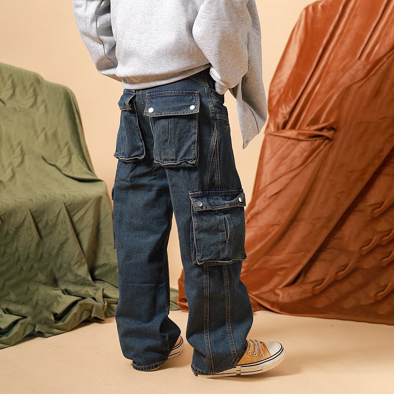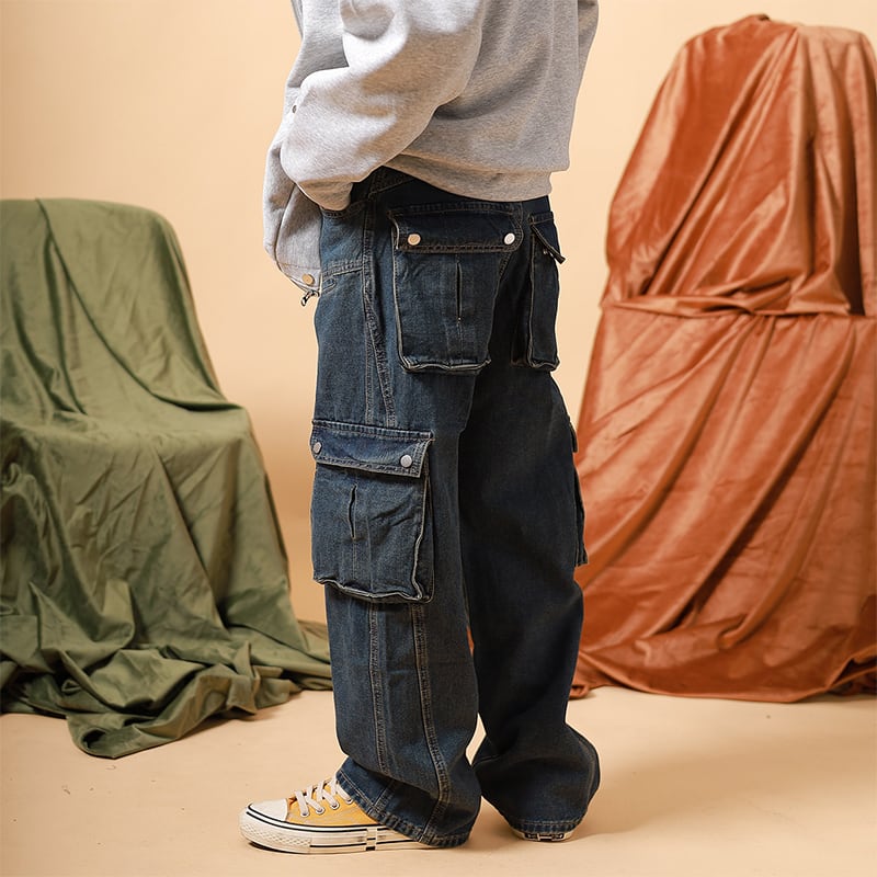 SZYIKU多ポケット付デニムミリタリーパンツ
