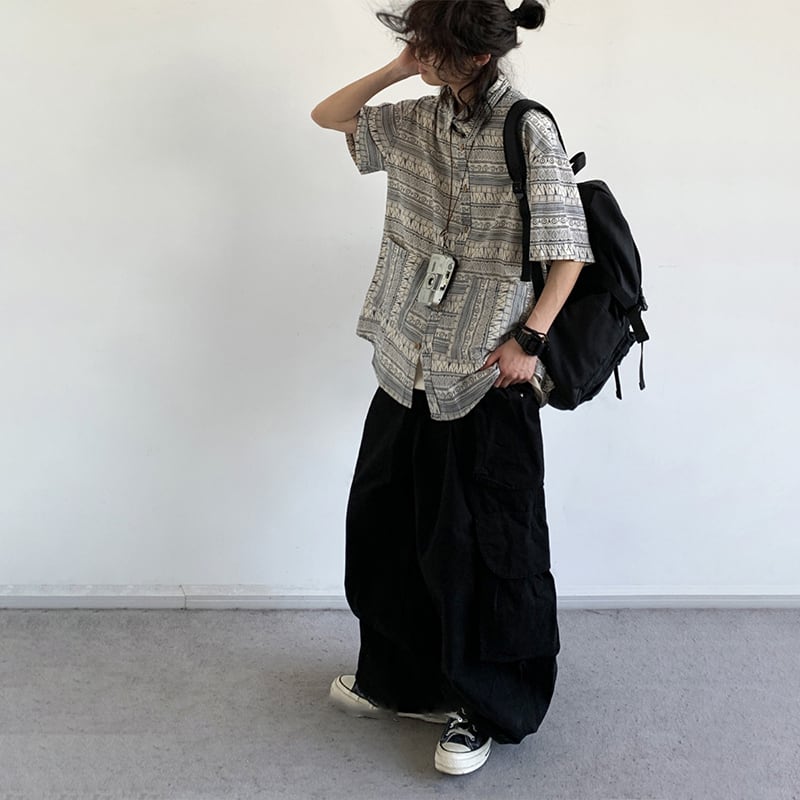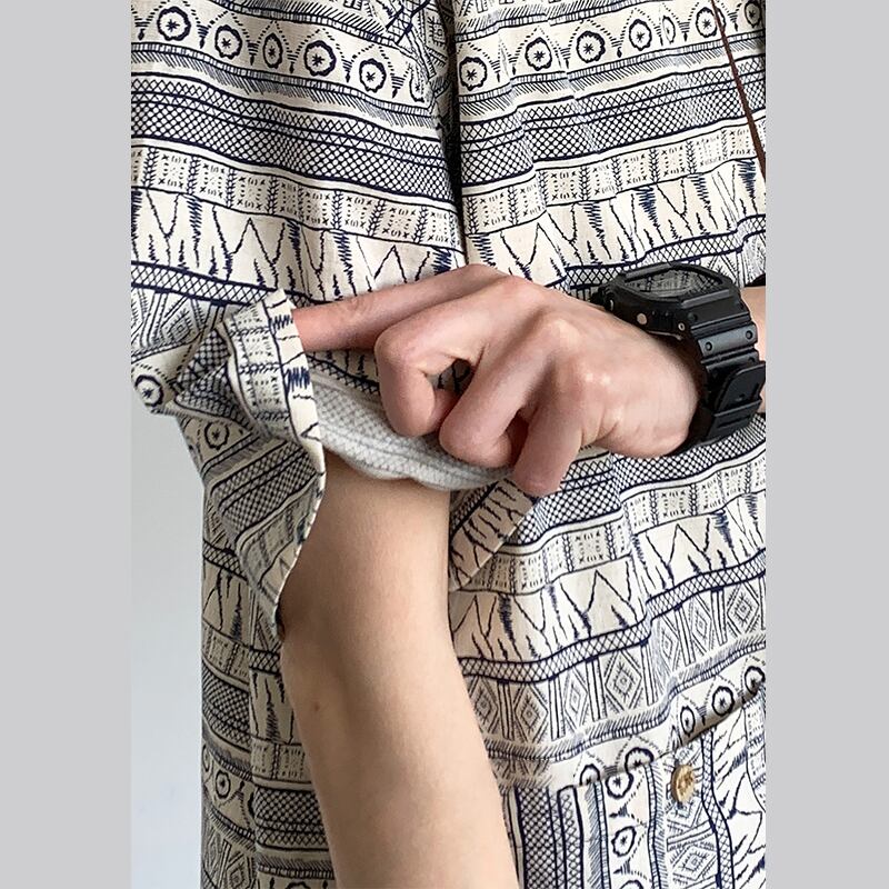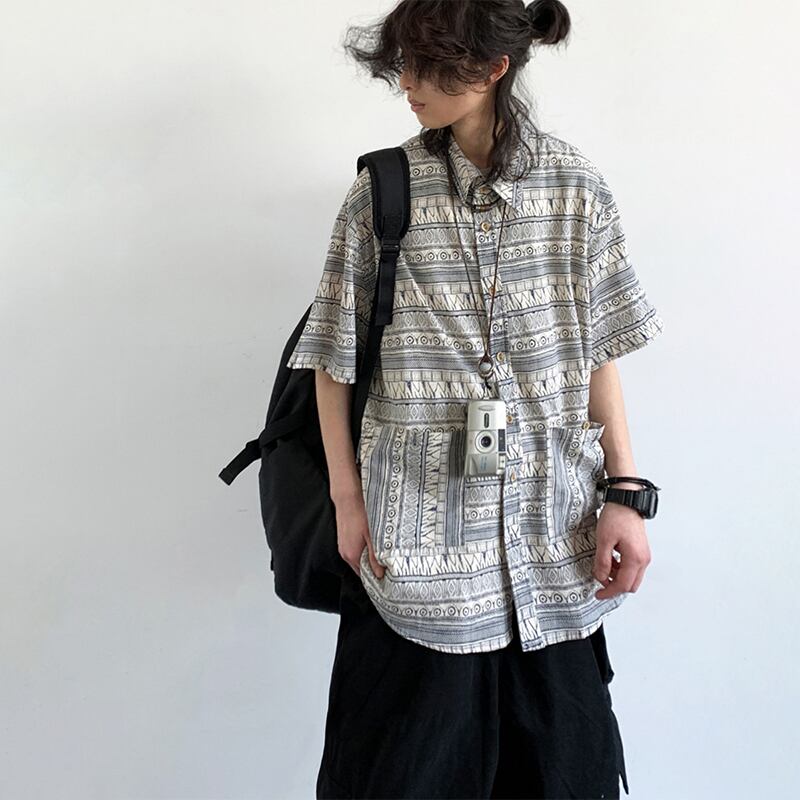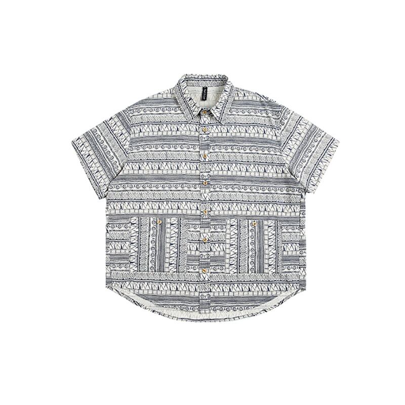 jiwuus民族調プリント半袖シャツ