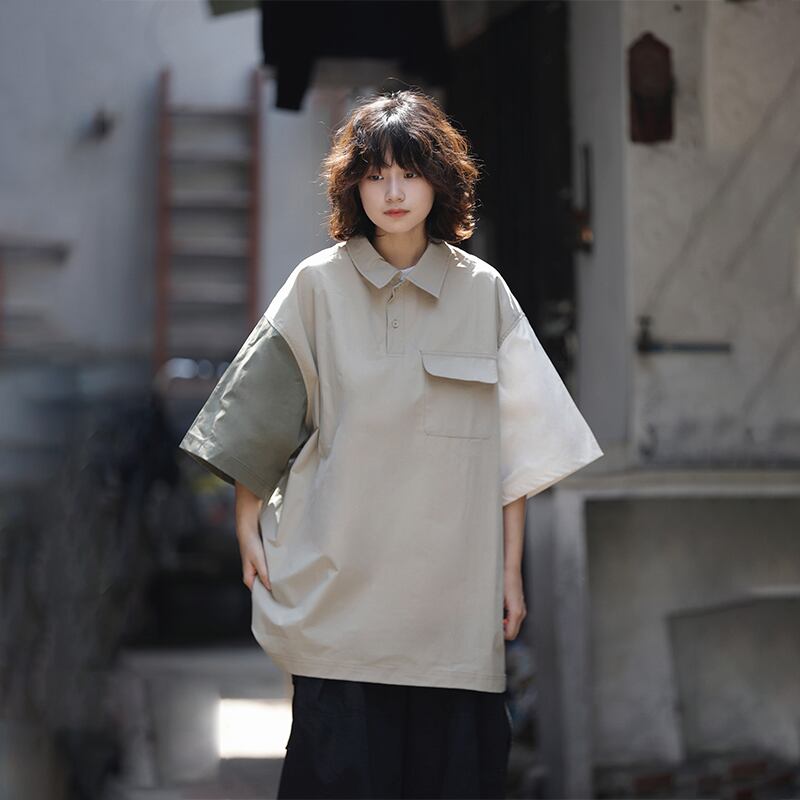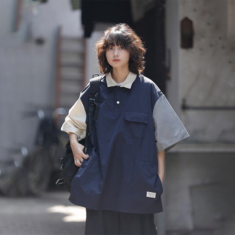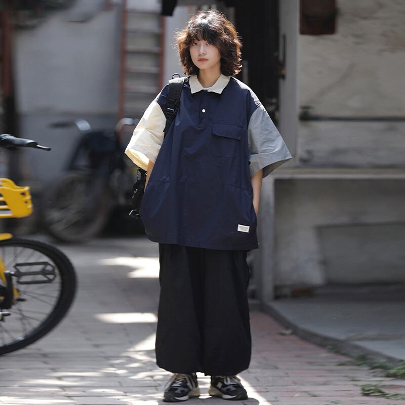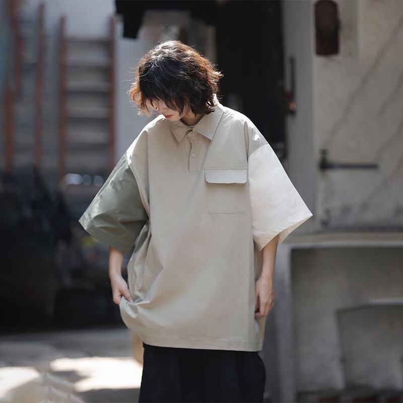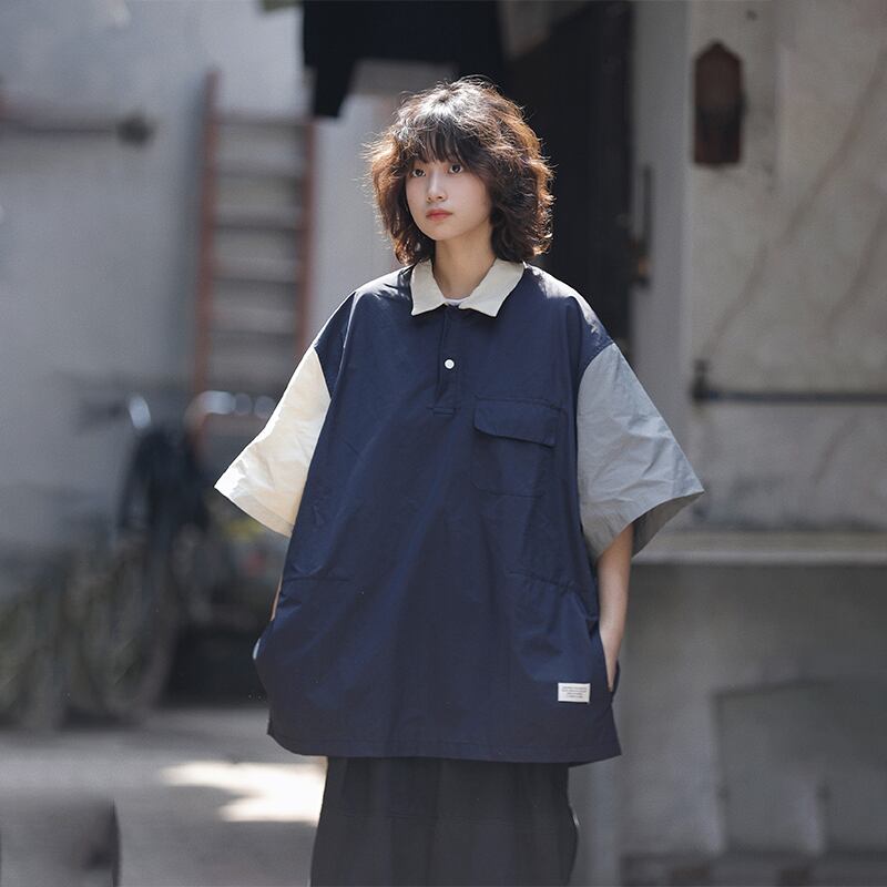 AFISHSTAY配色オーバーサイズ半袖ポロTシャツ