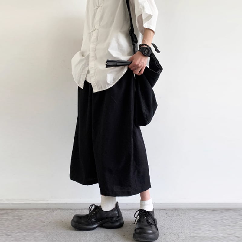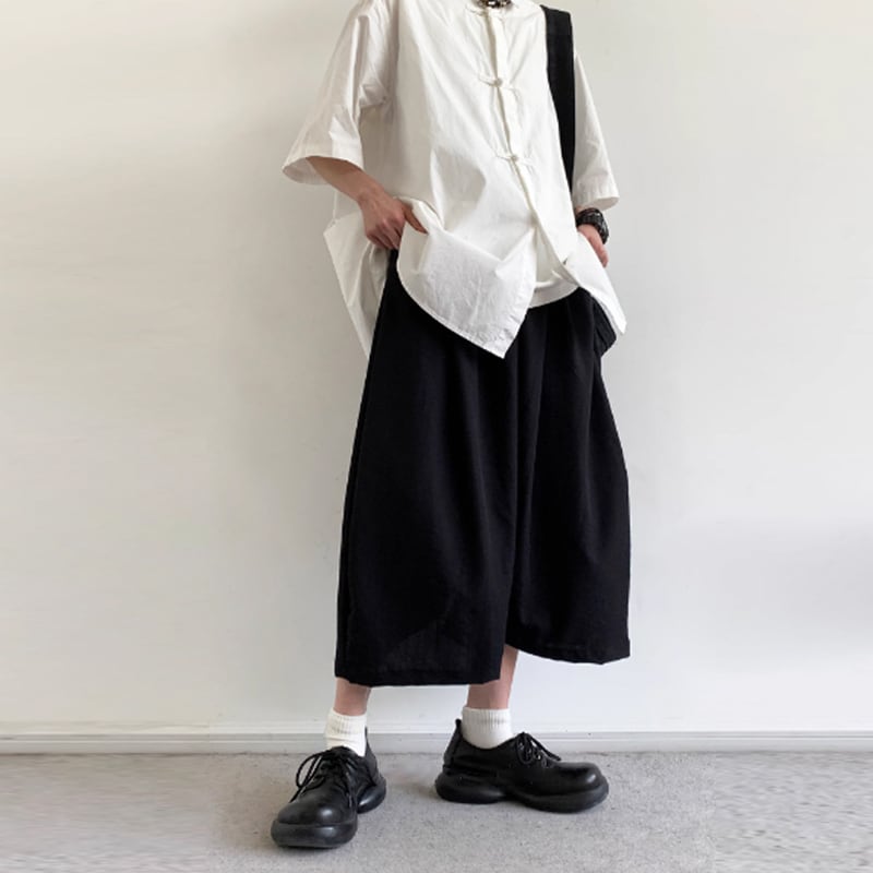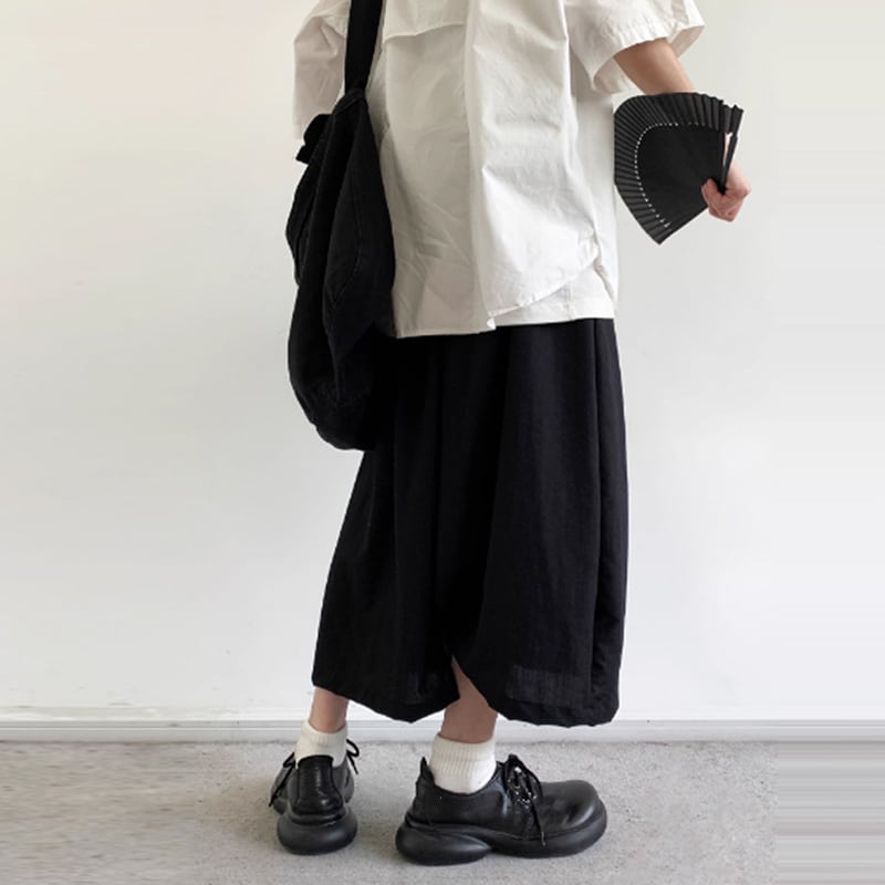 jiwuus不規則なクロップドワイドパンツ