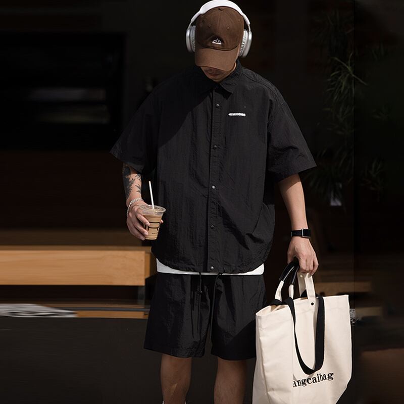 WPP英字プリント半袖シャツ&ハーフパンツセット