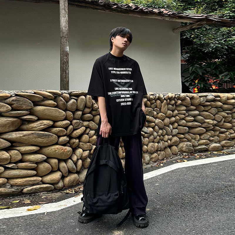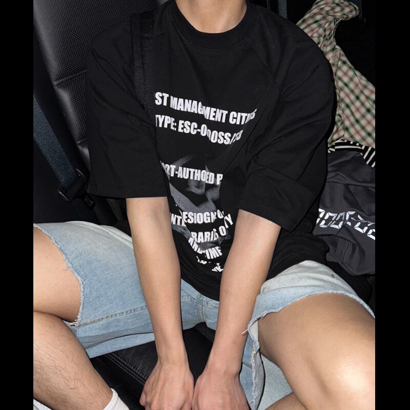 ONENINE34PM英字プリントブラックTシャツ