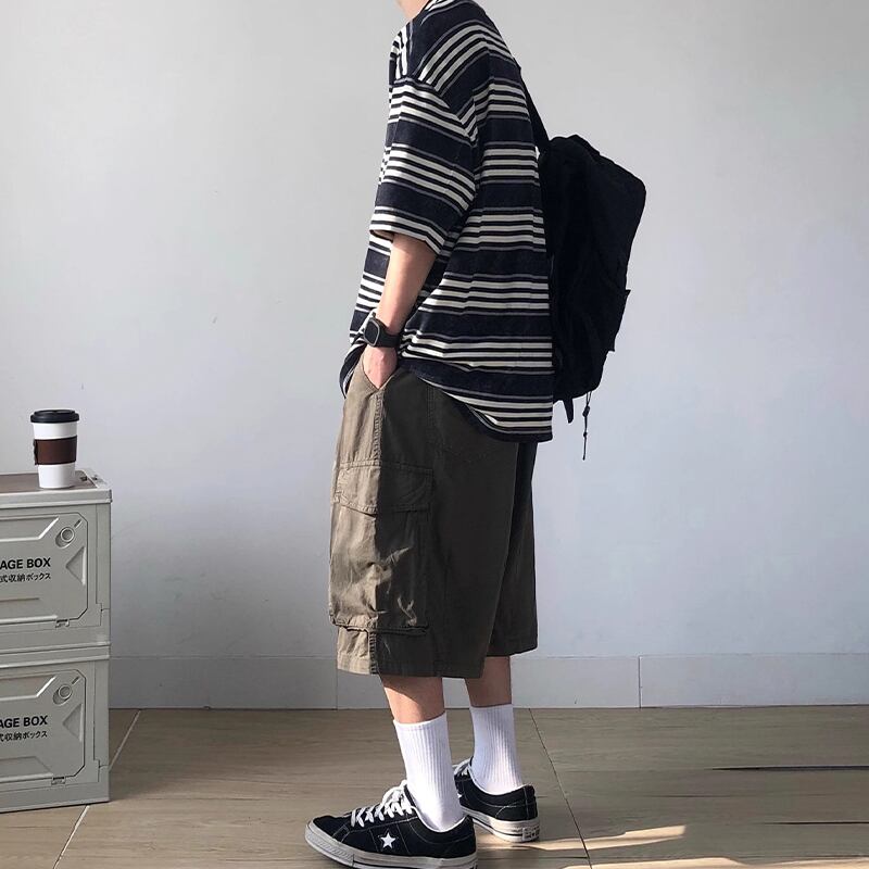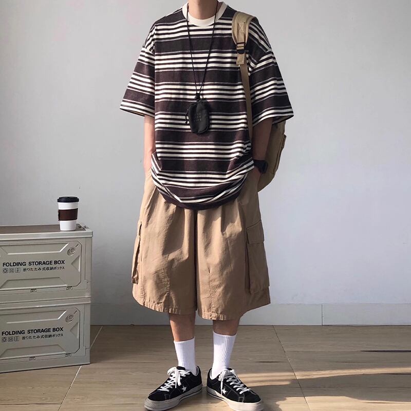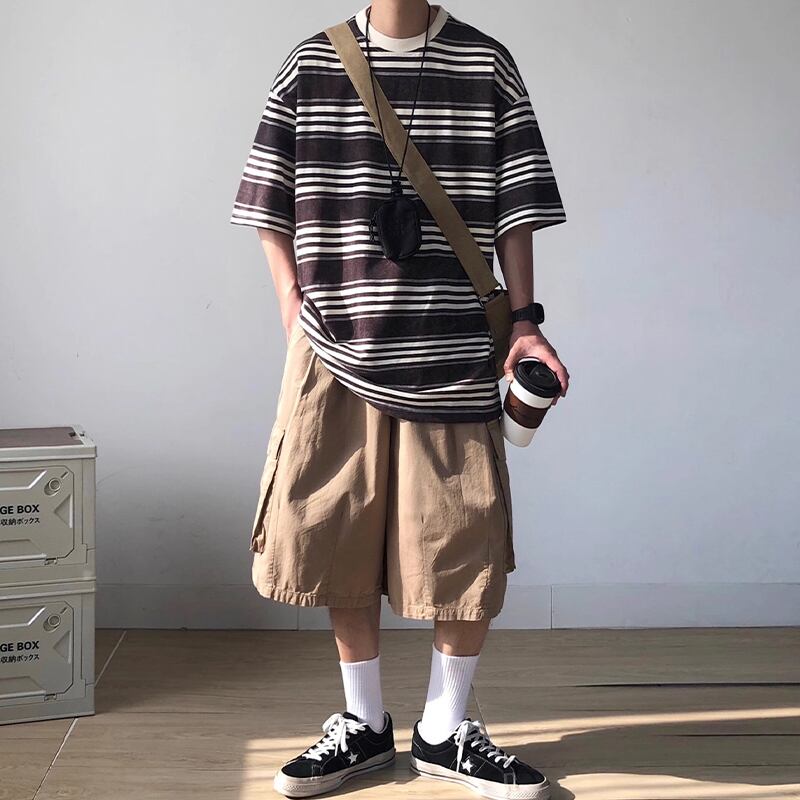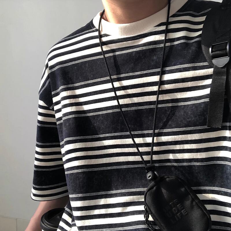 RICHMANレトロ縞模様ハーフスリーブTシャツ