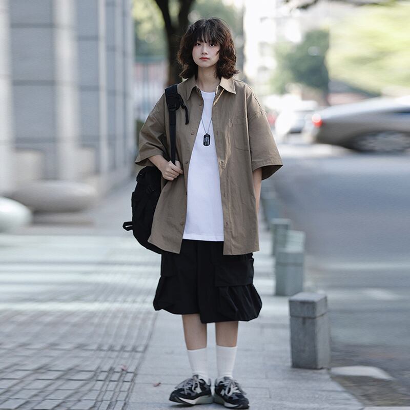 AFISHSTAYオーバーサイズハーフスリーブシャツ