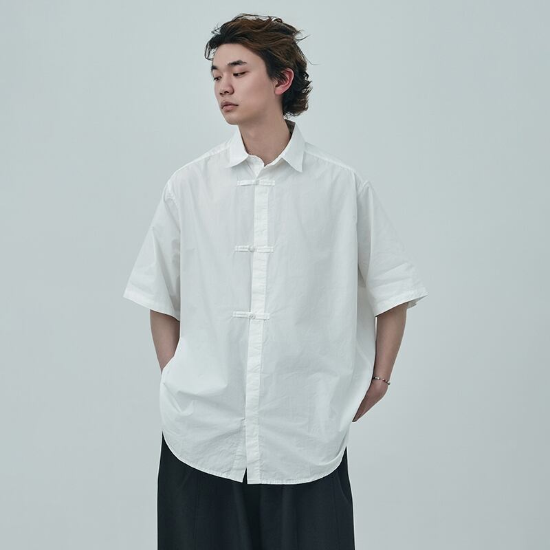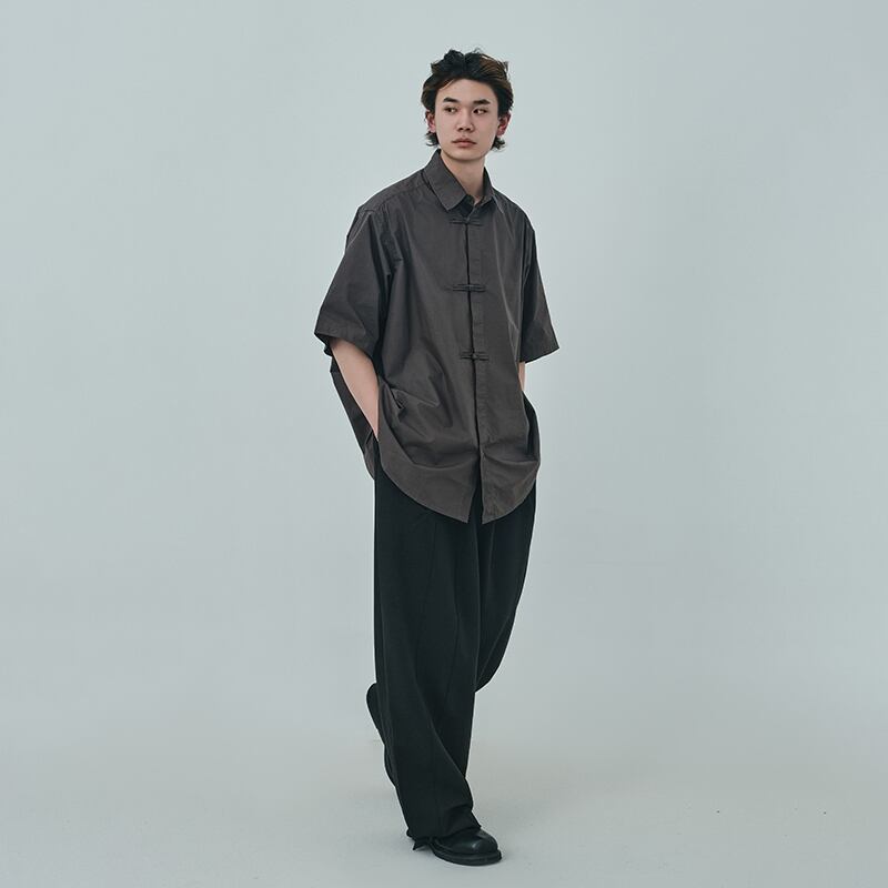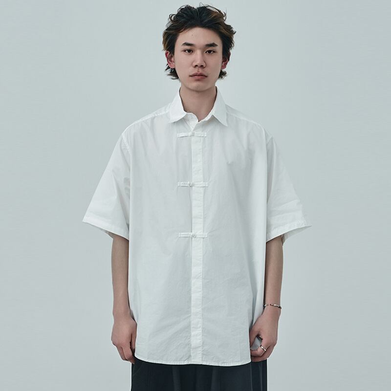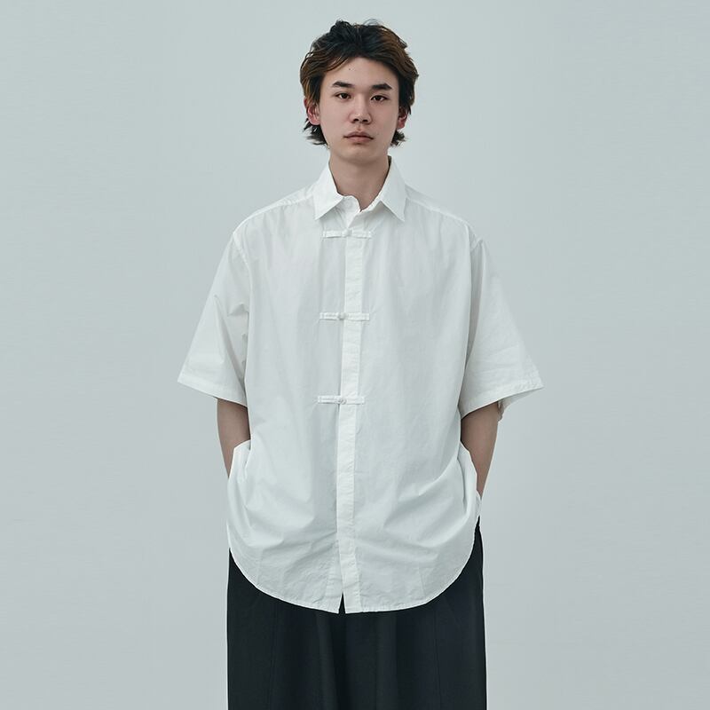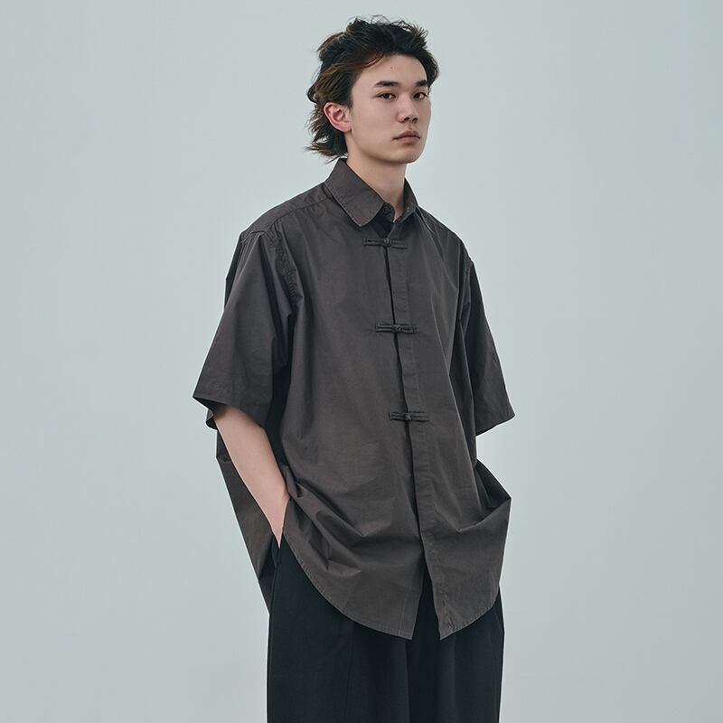 RIHE STOREチャイナ風無地ハーフスリーブシャツ