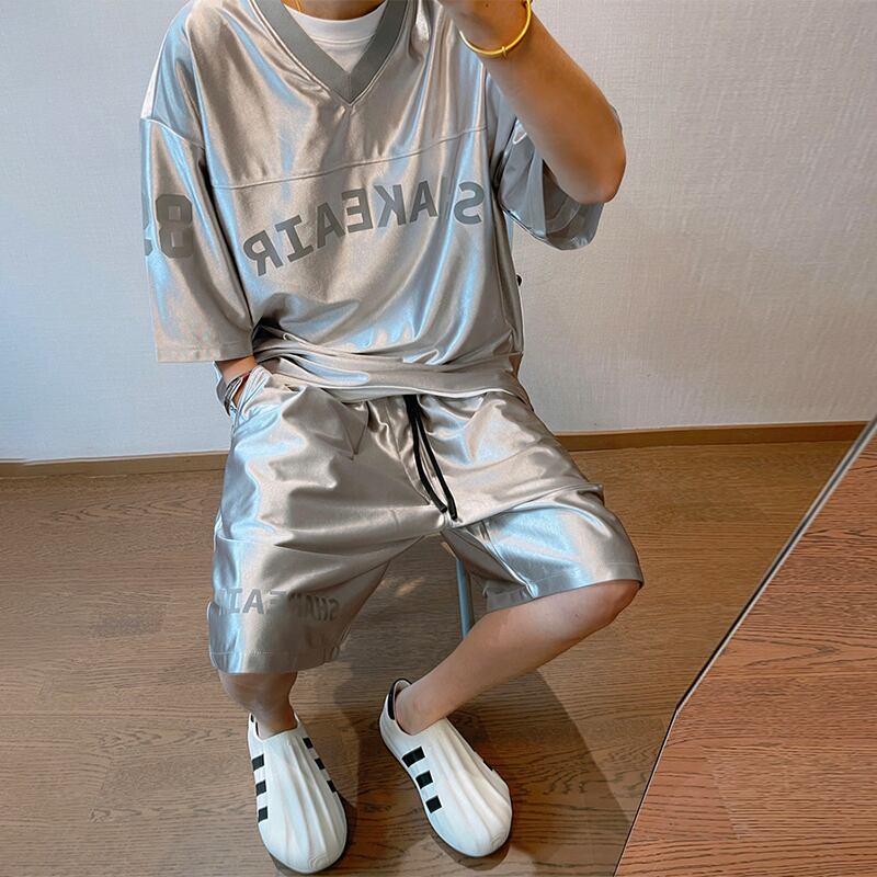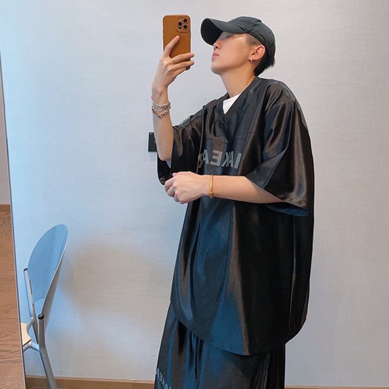 dannyandzeeカジュアルVネックユニフォームTシャツ