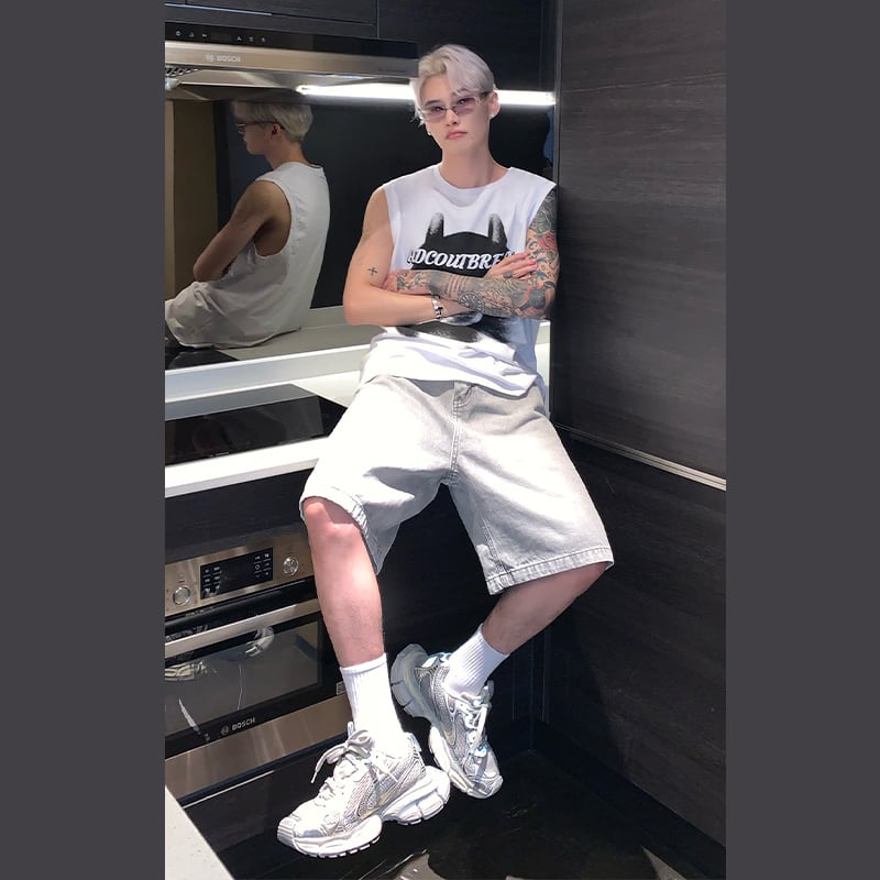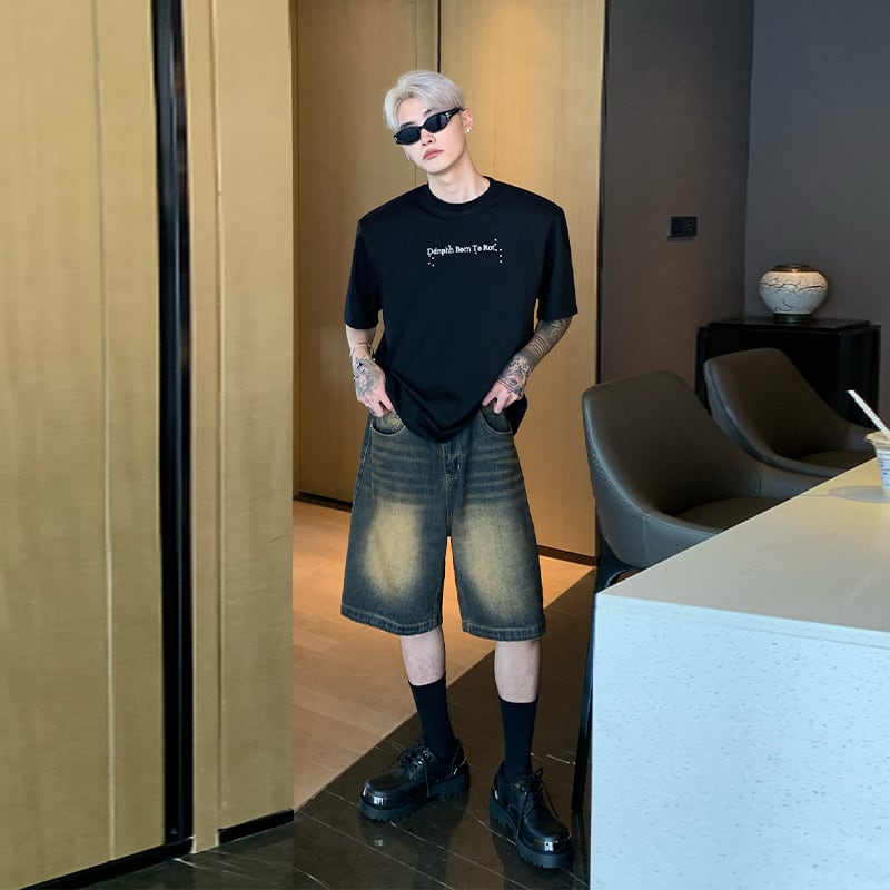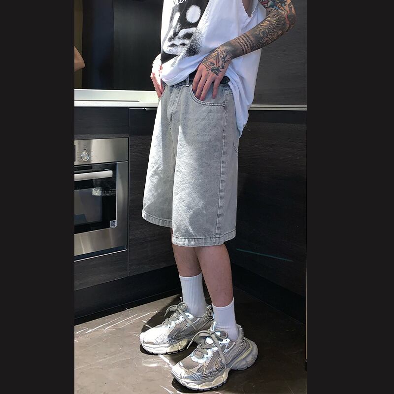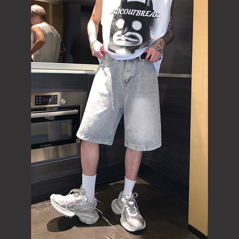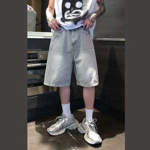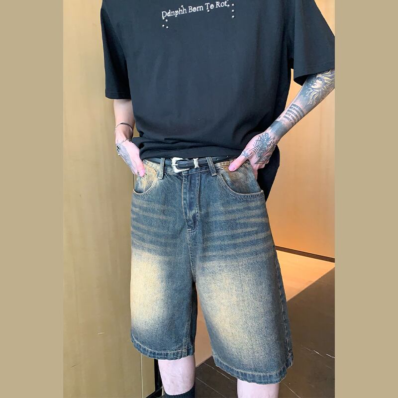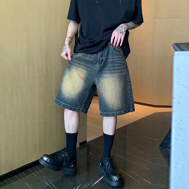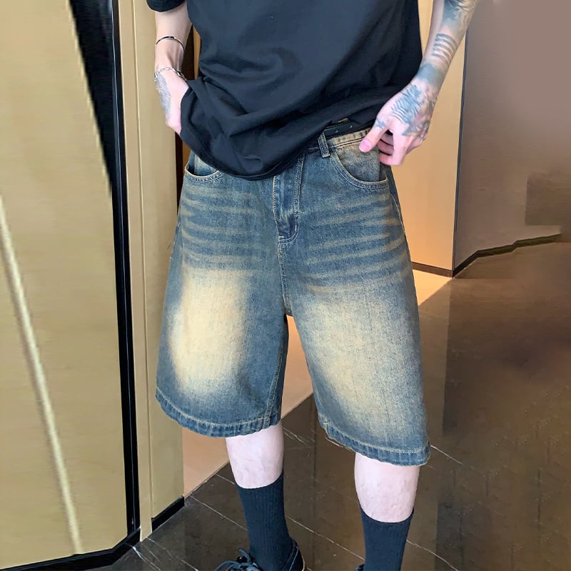cuibujuレトロウォッシュドデニムハーフパンツ