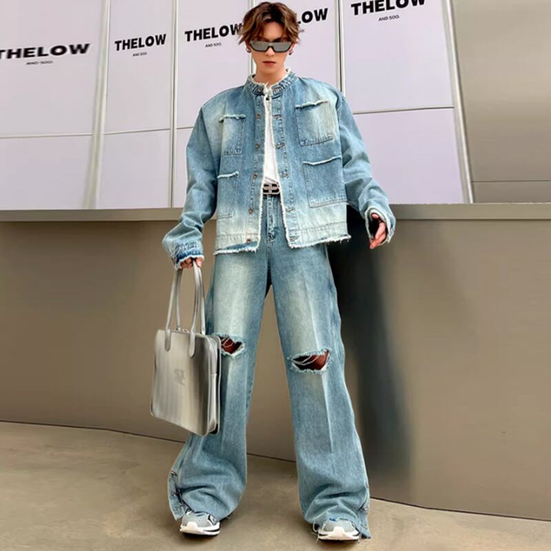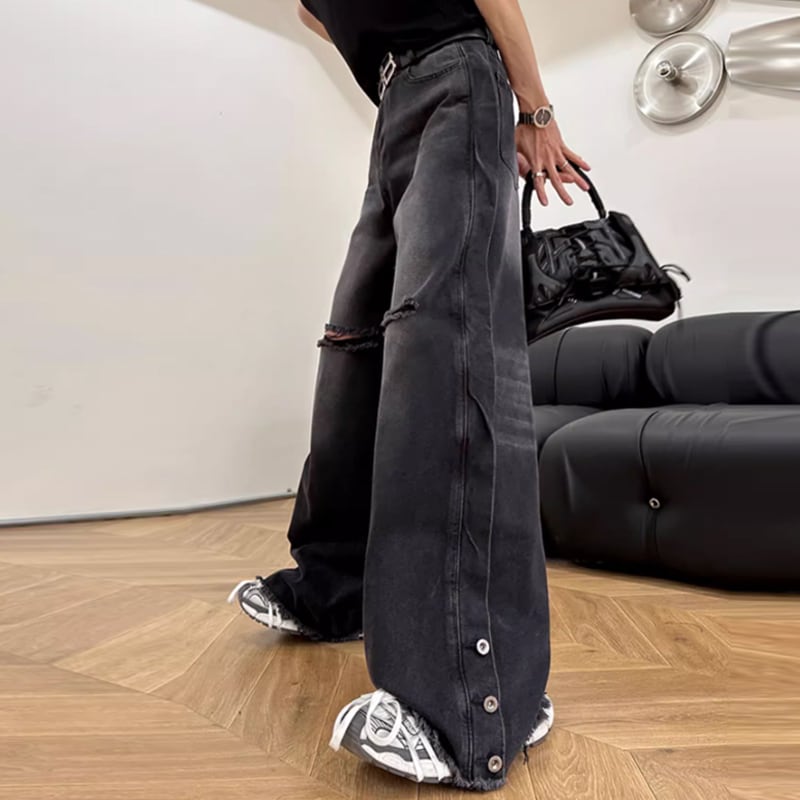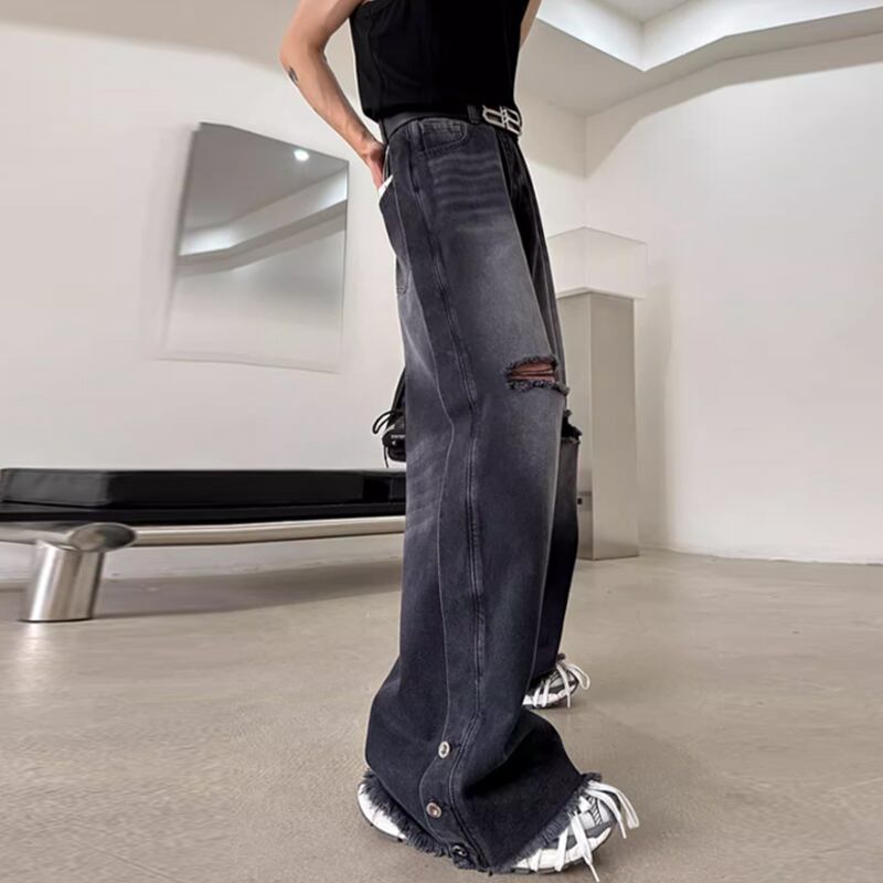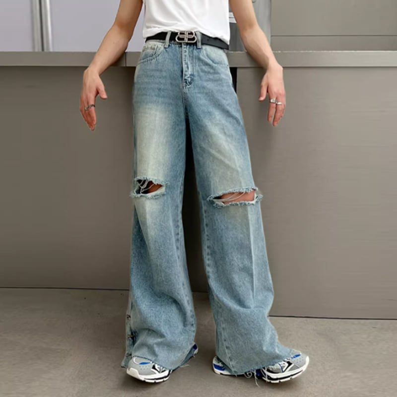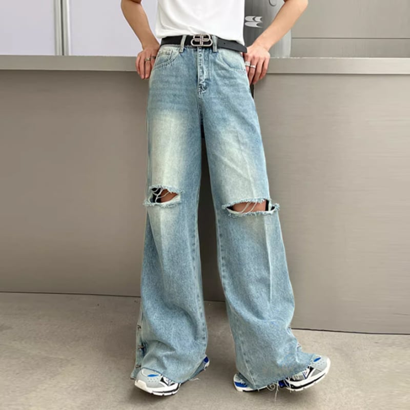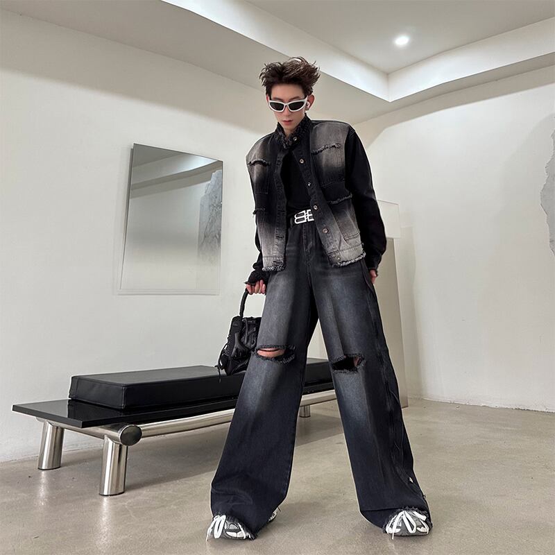 STARTEXCEEDENDダメージ加工デニムワイドパンツ