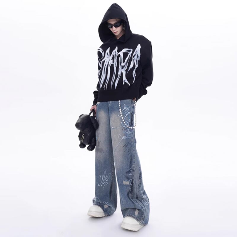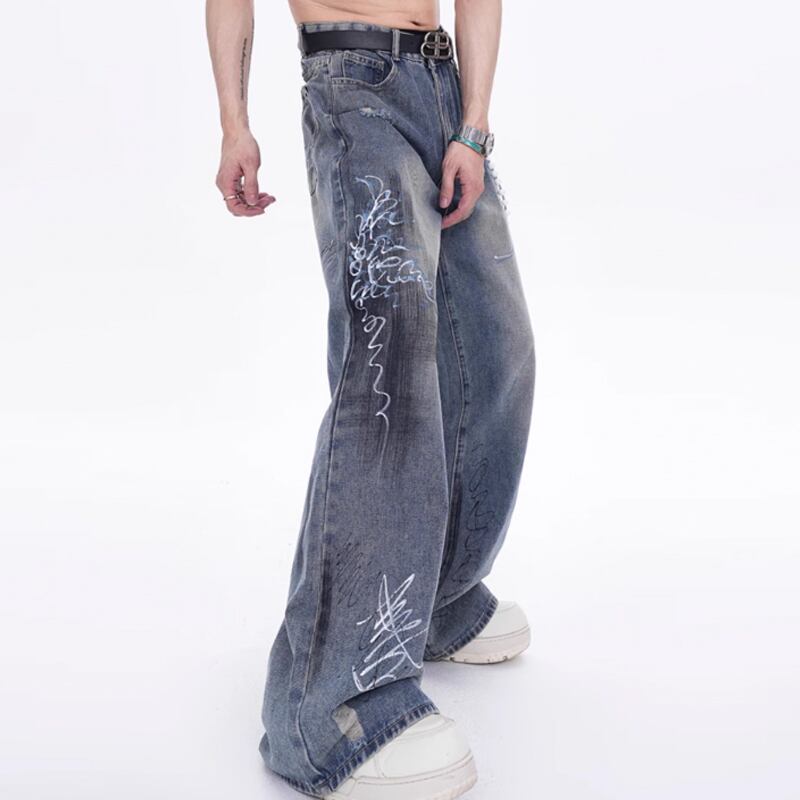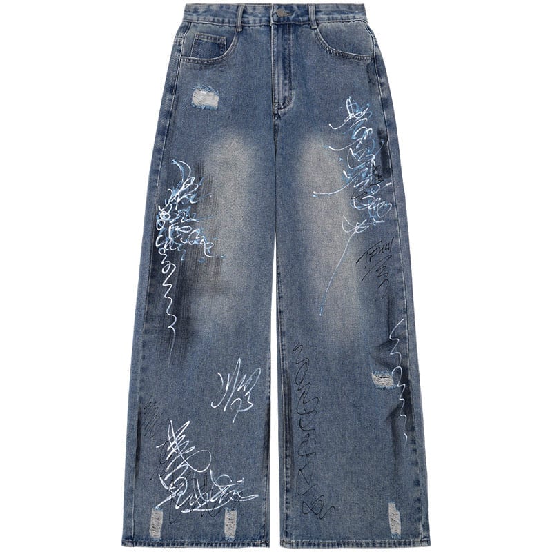STARTEXCEEDEND落書き風デニムストレートパンツ