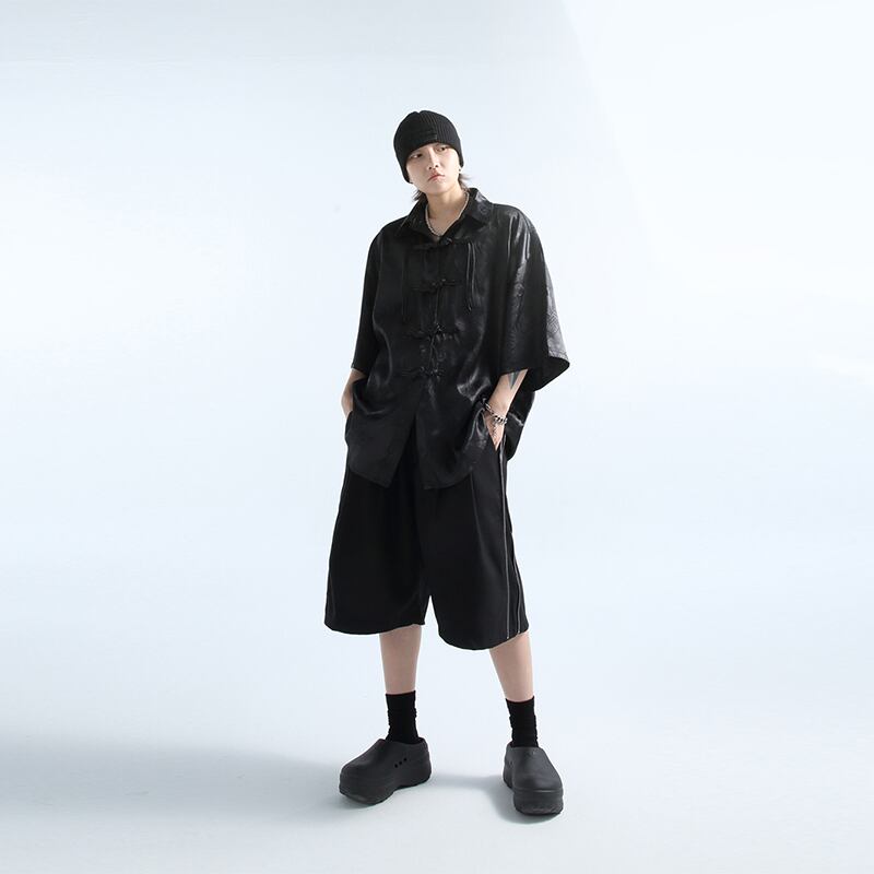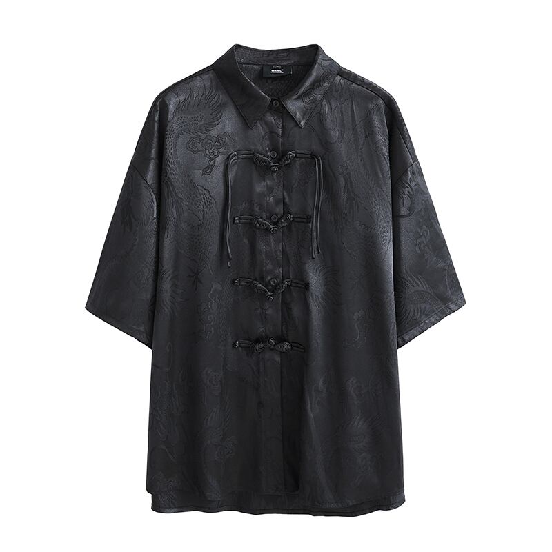 GRNL漆黒色のドラゴン柄半袖シャツ