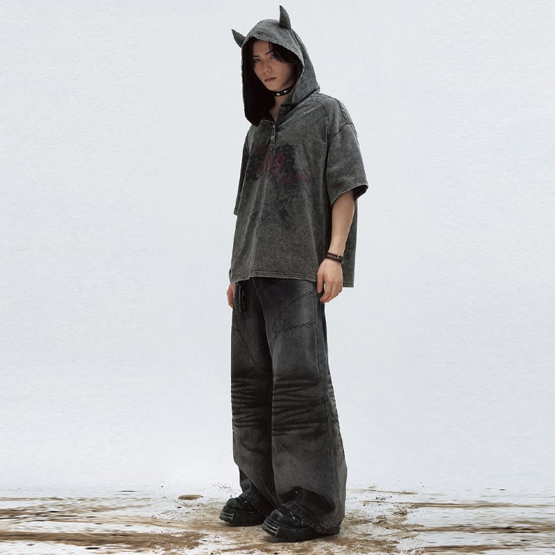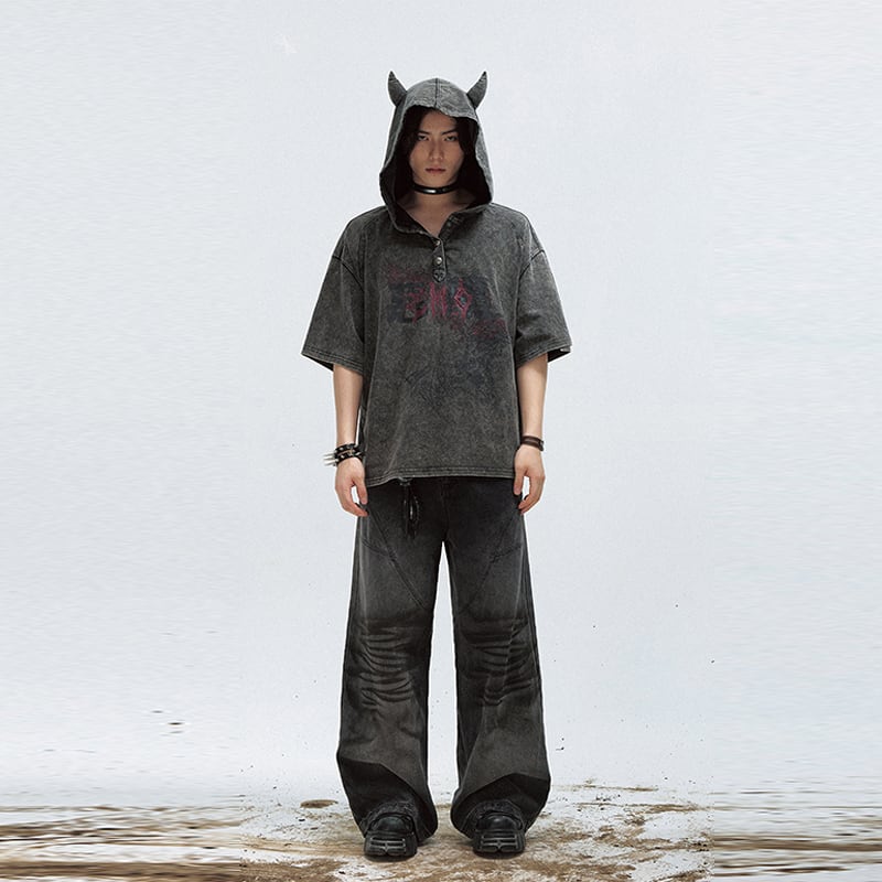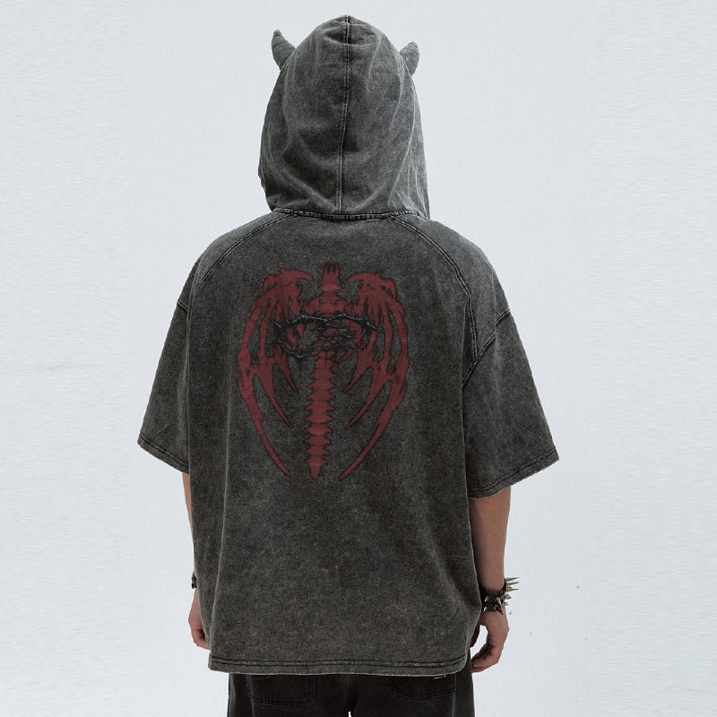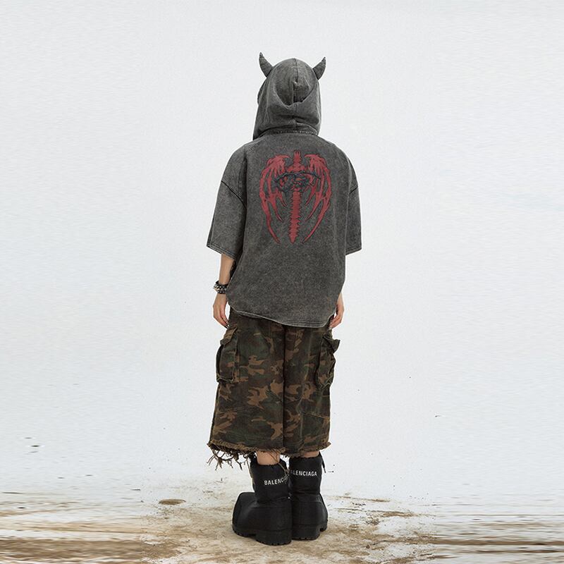 PEOPLESTYLE小悪魔のフード付きウォッシュTシャツ