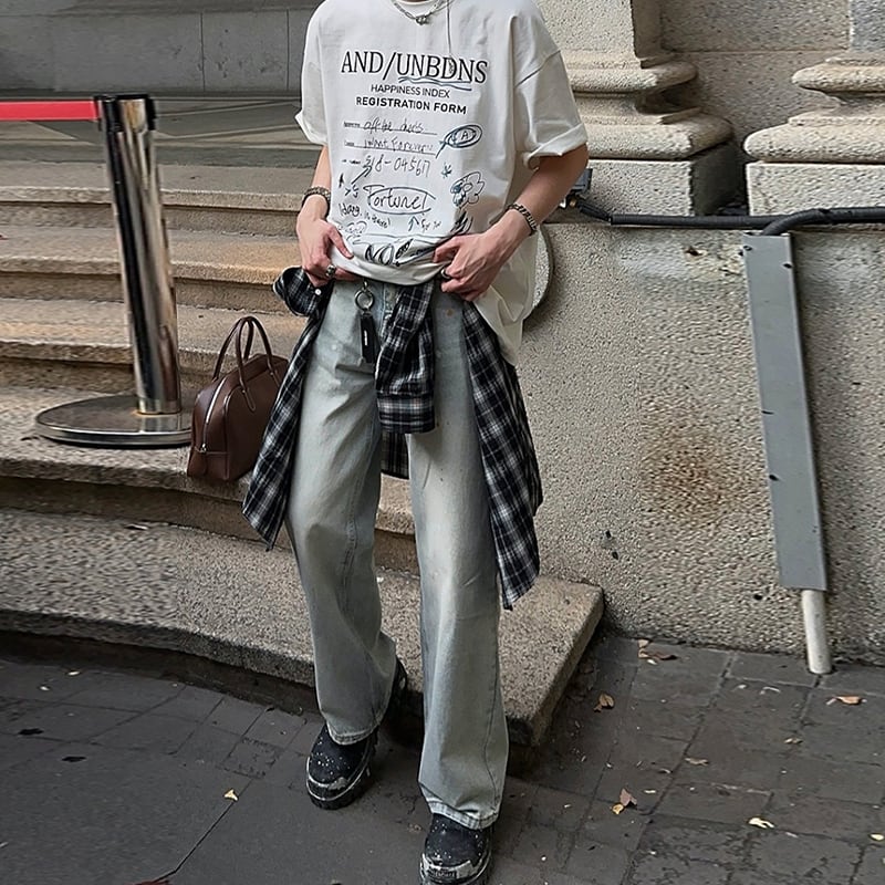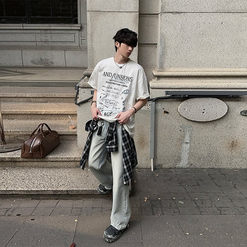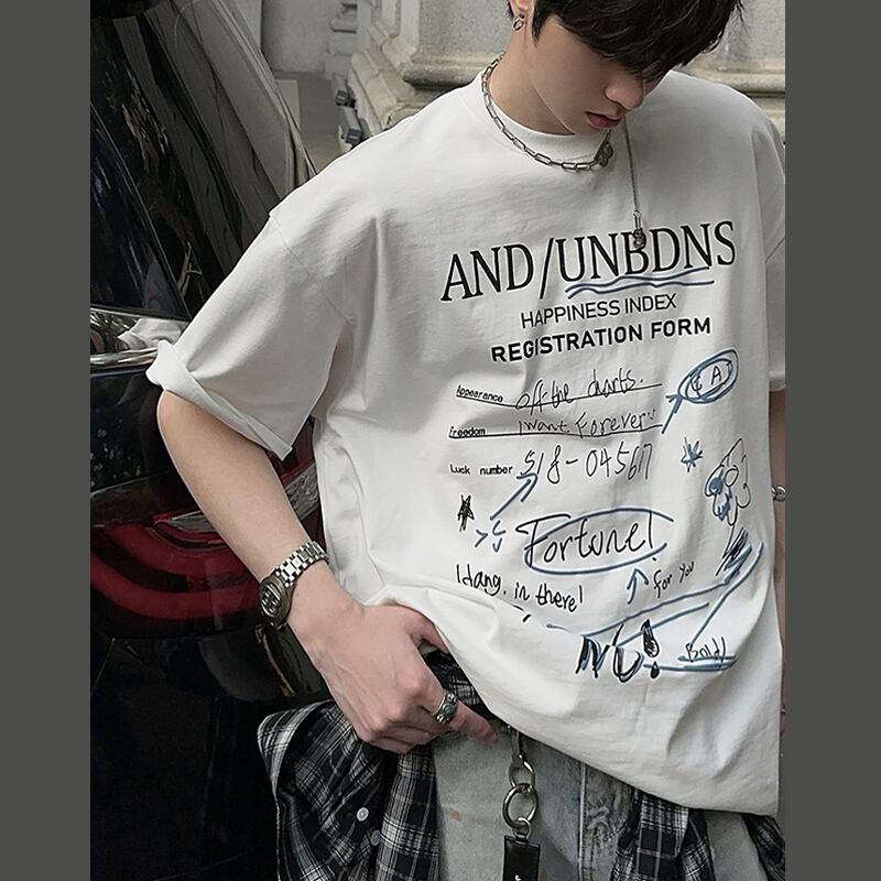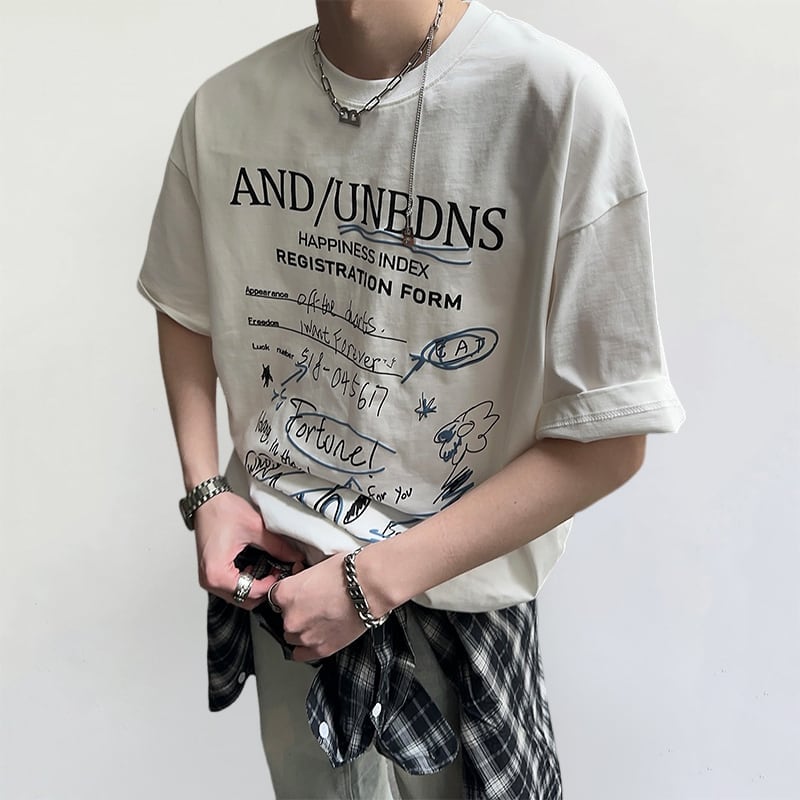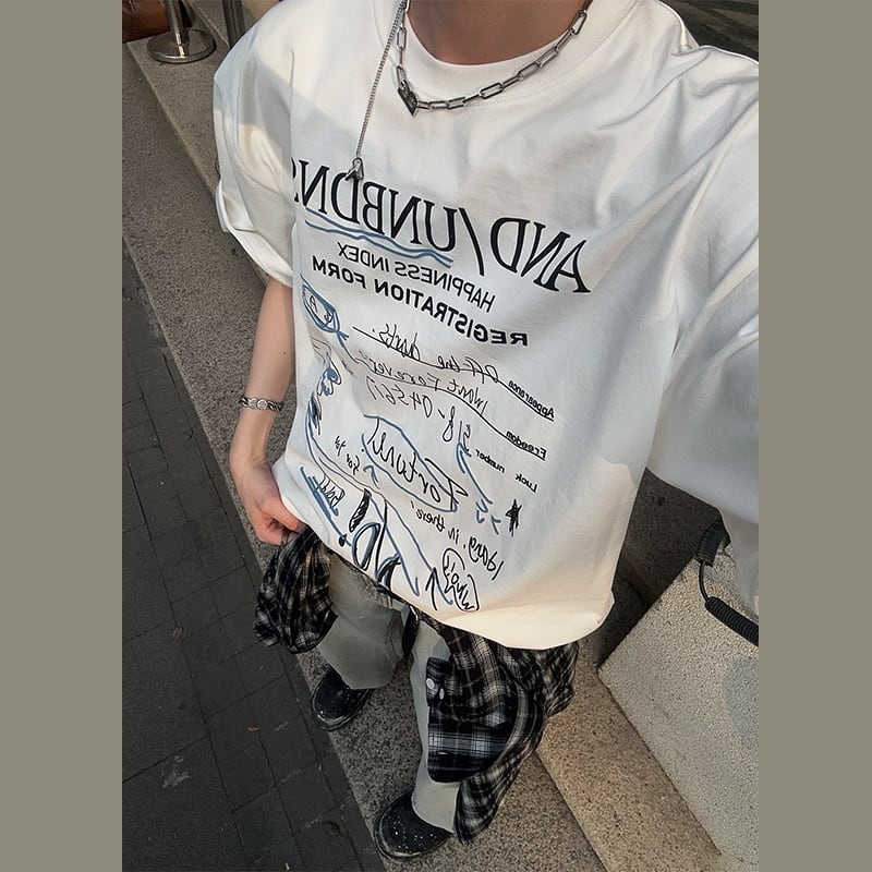 JUNMANNER落書き英字プリント半袖Tシャツ