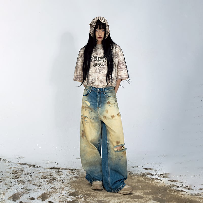 PEOPLESTYLEダメージ加工レトロデニムパンツ