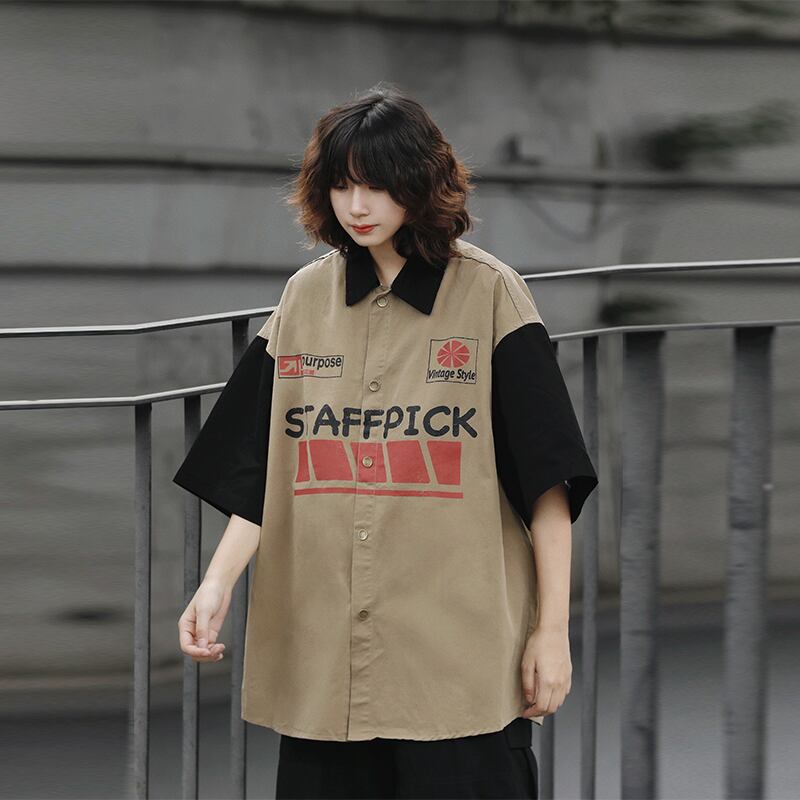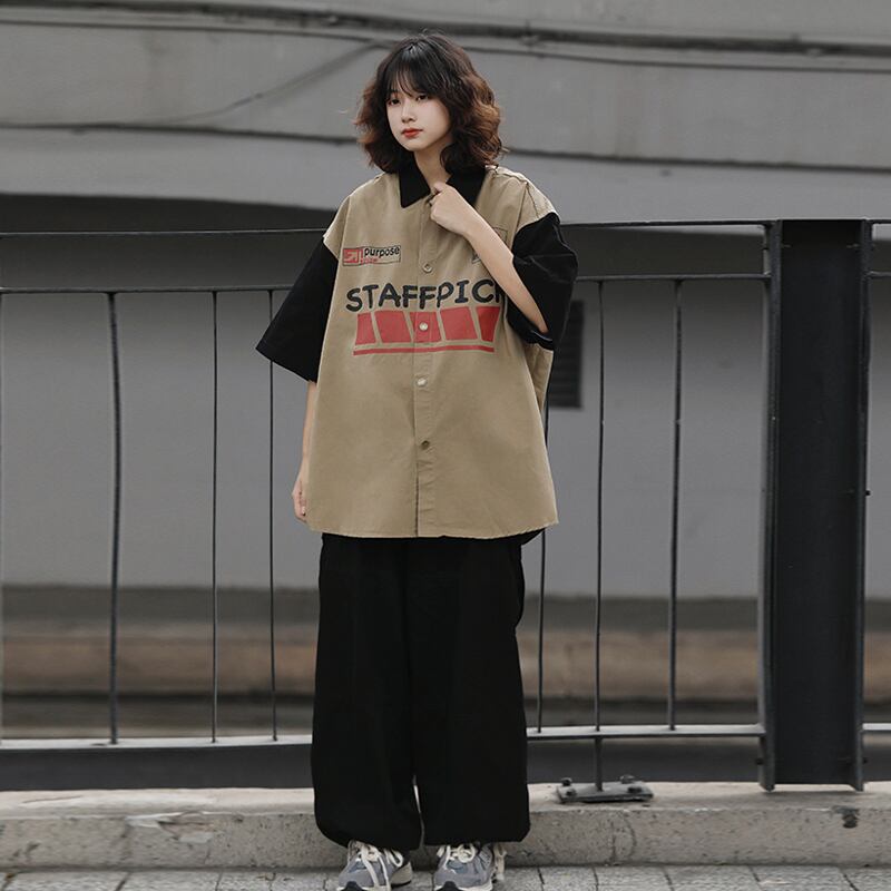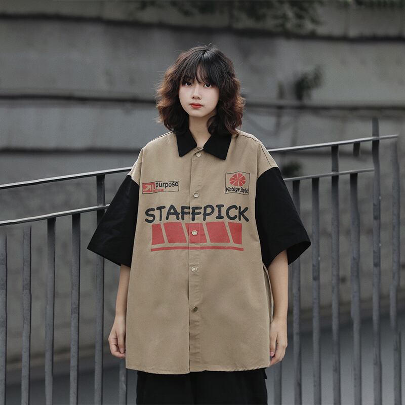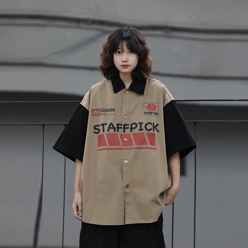 AFISHSTAYオーバーサイズ配色半袖シャツ