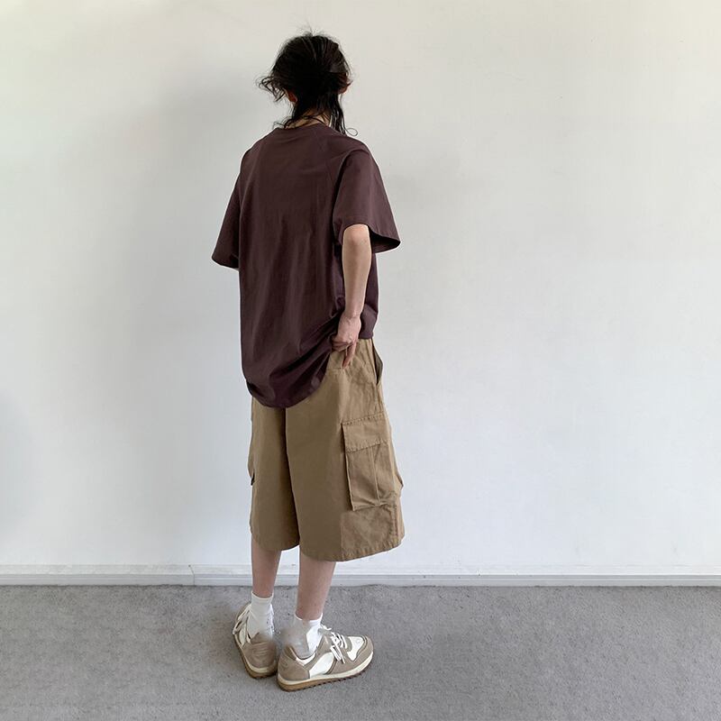 jiwuus全3色シンプルな無地半袖Tシャツ